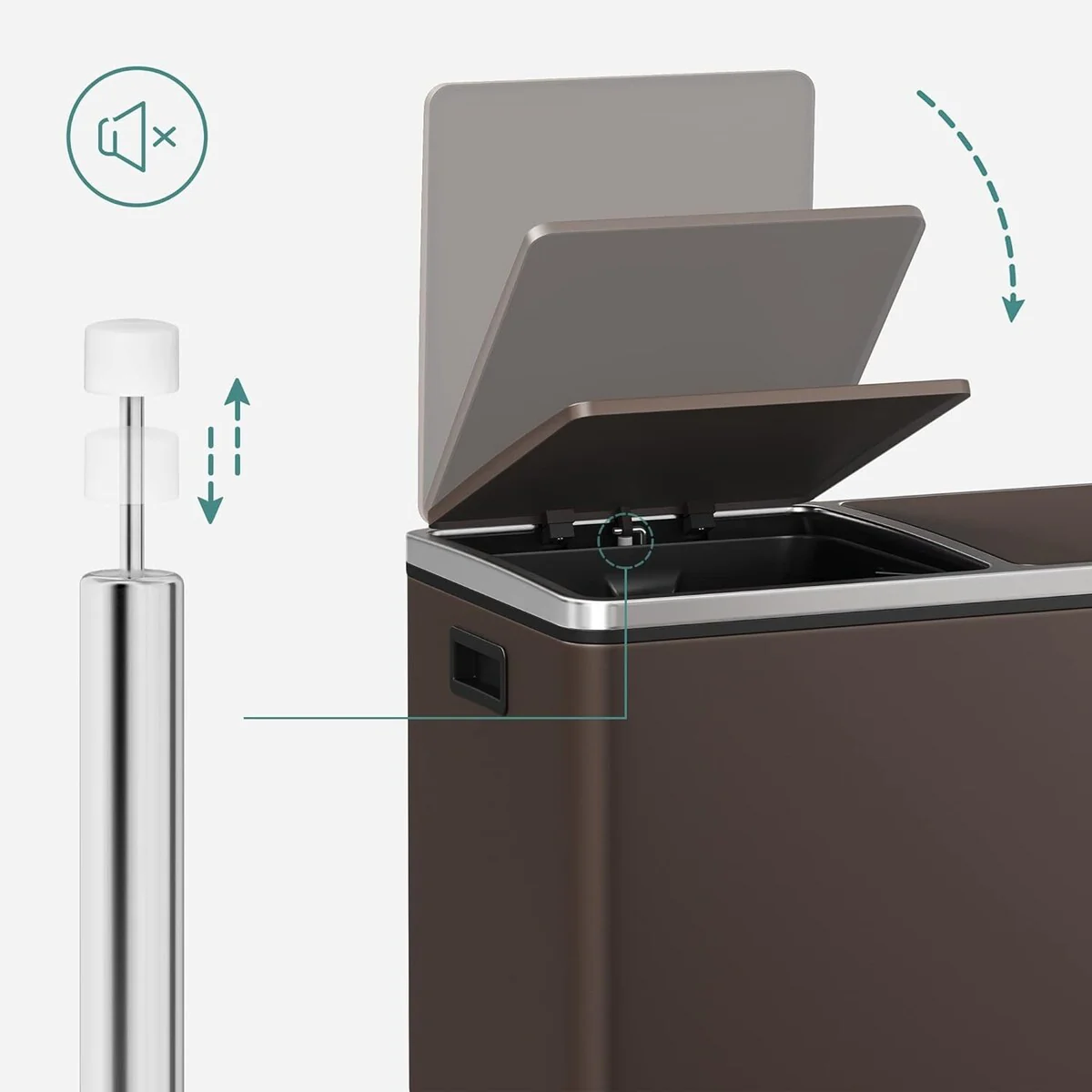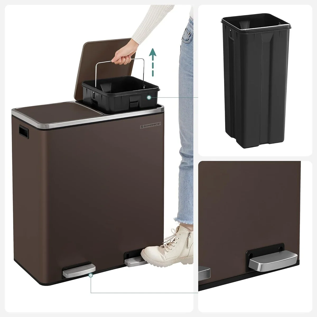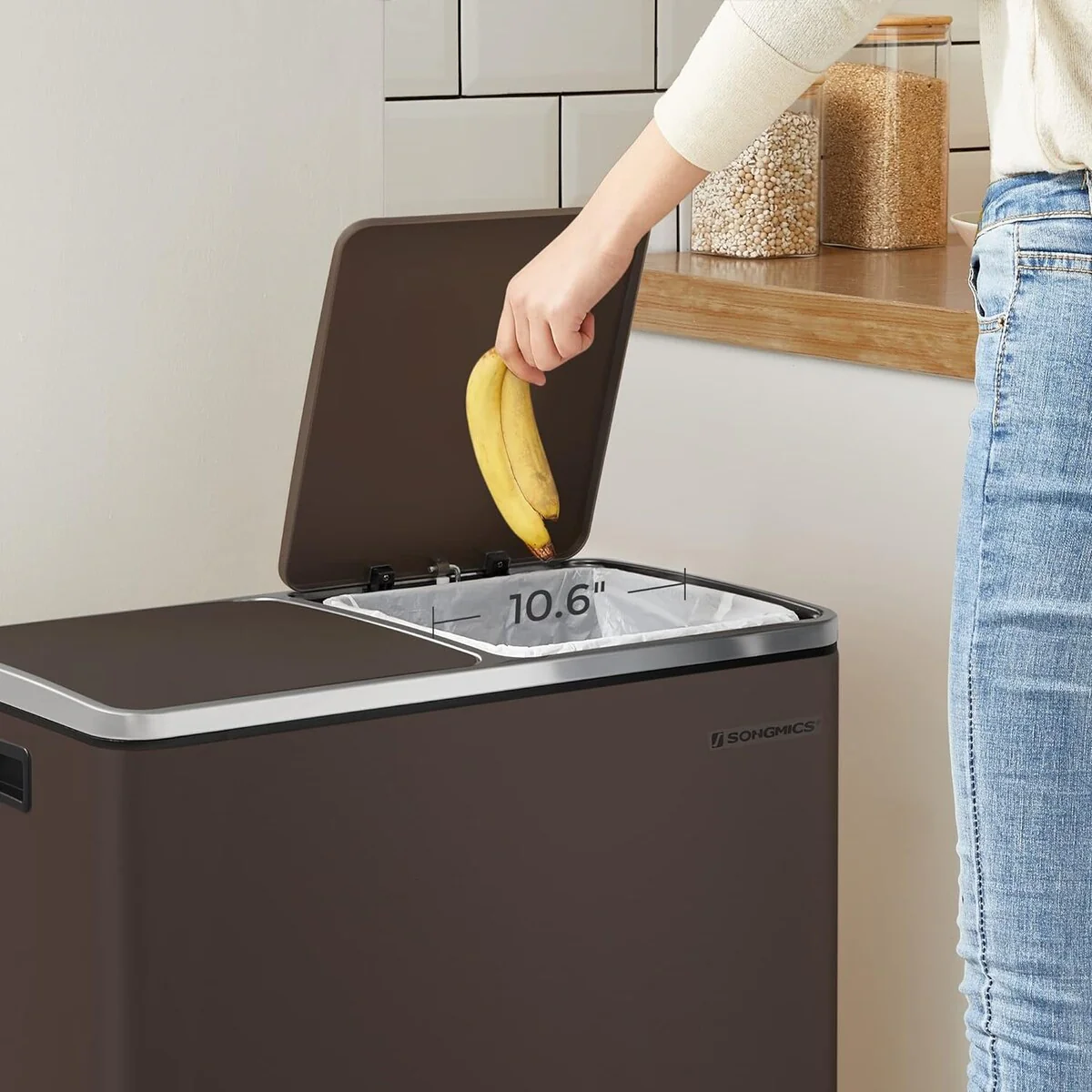 SONGMICS Trash Can, 2x 8 Gallon Stainless Steel Garbage Can, Brown