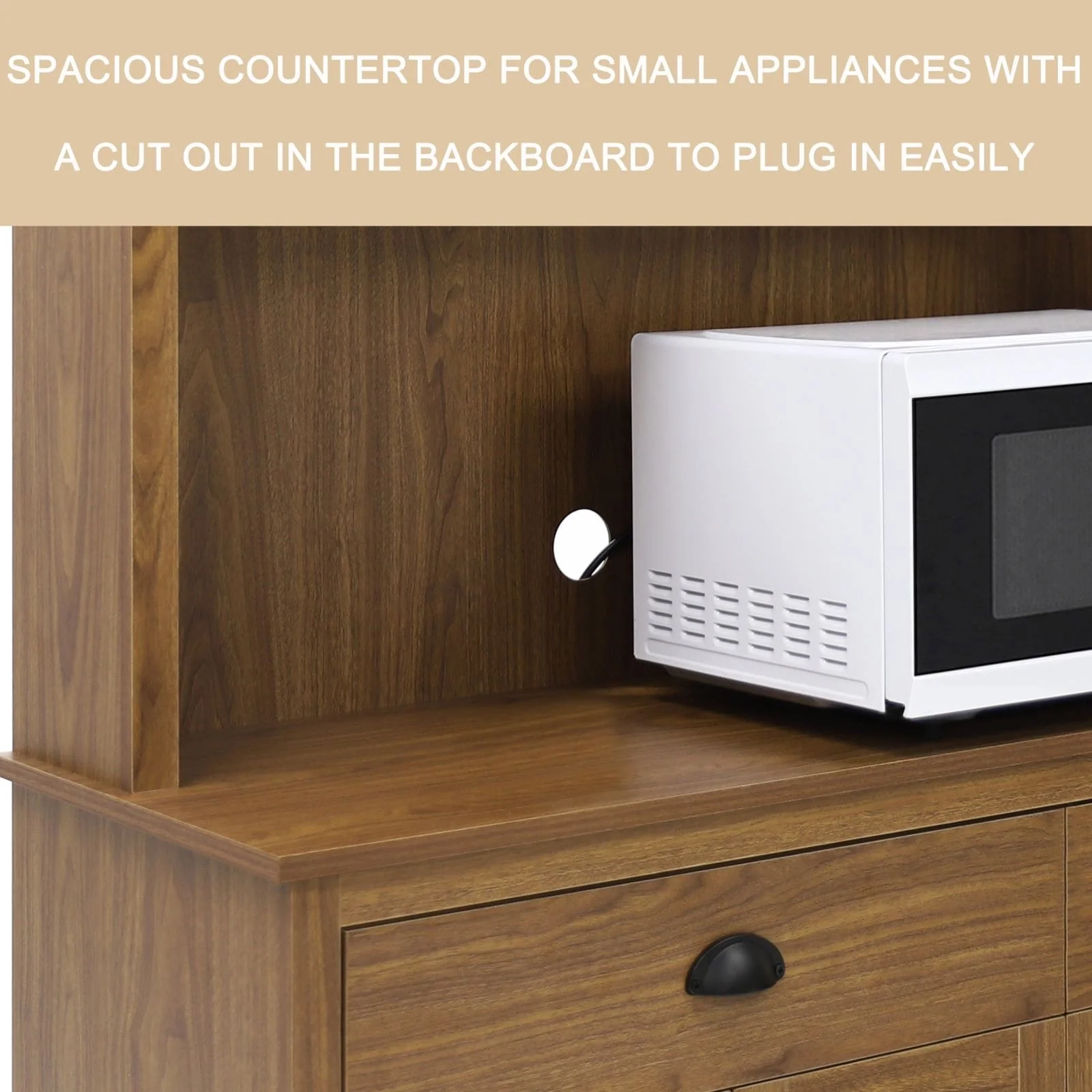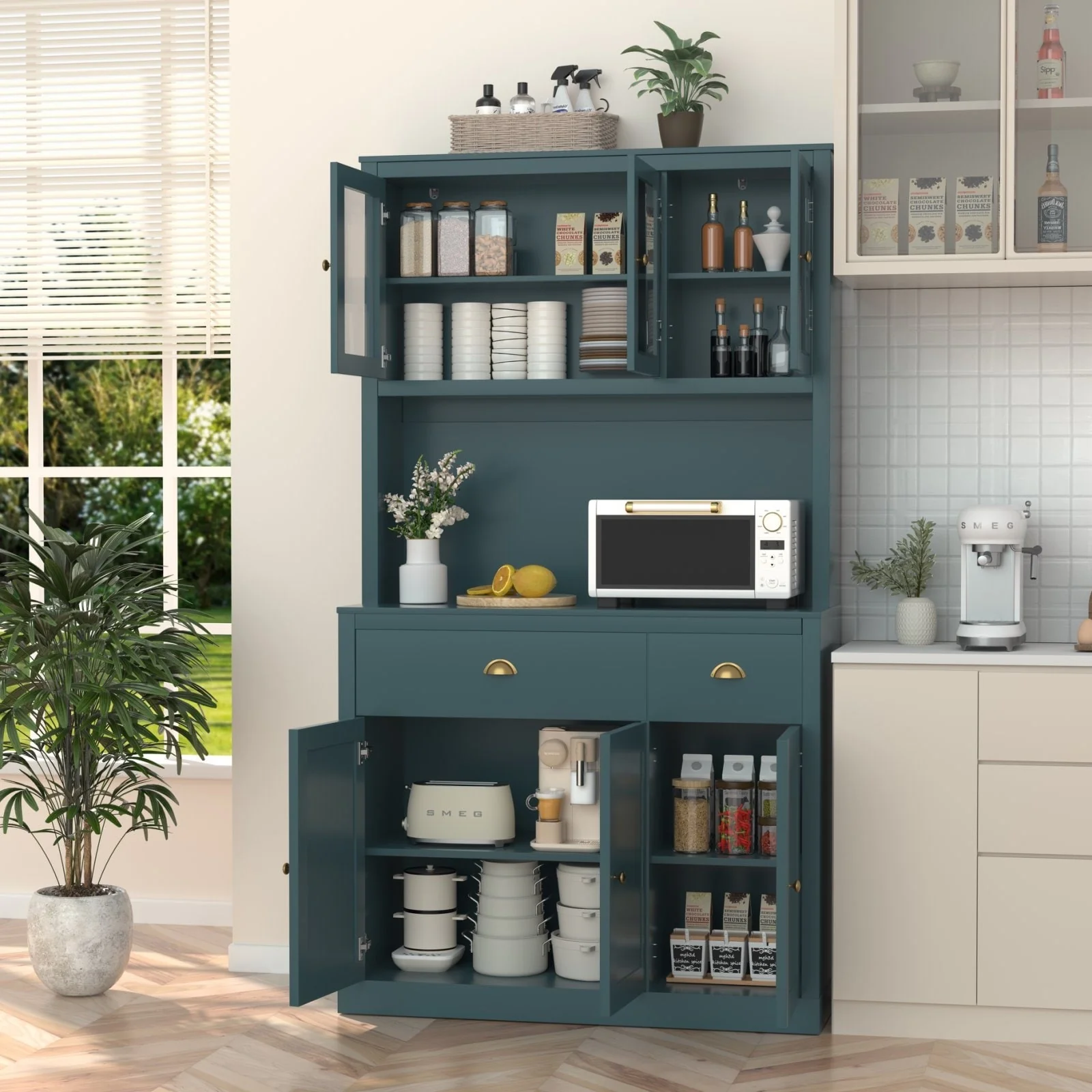 HOMCOM 71" Freestanding Pantry, Kitchen Buffet with Hutch, Modern Storage Cabinet, Microwave Cabinet with Drawers, Glass Doors