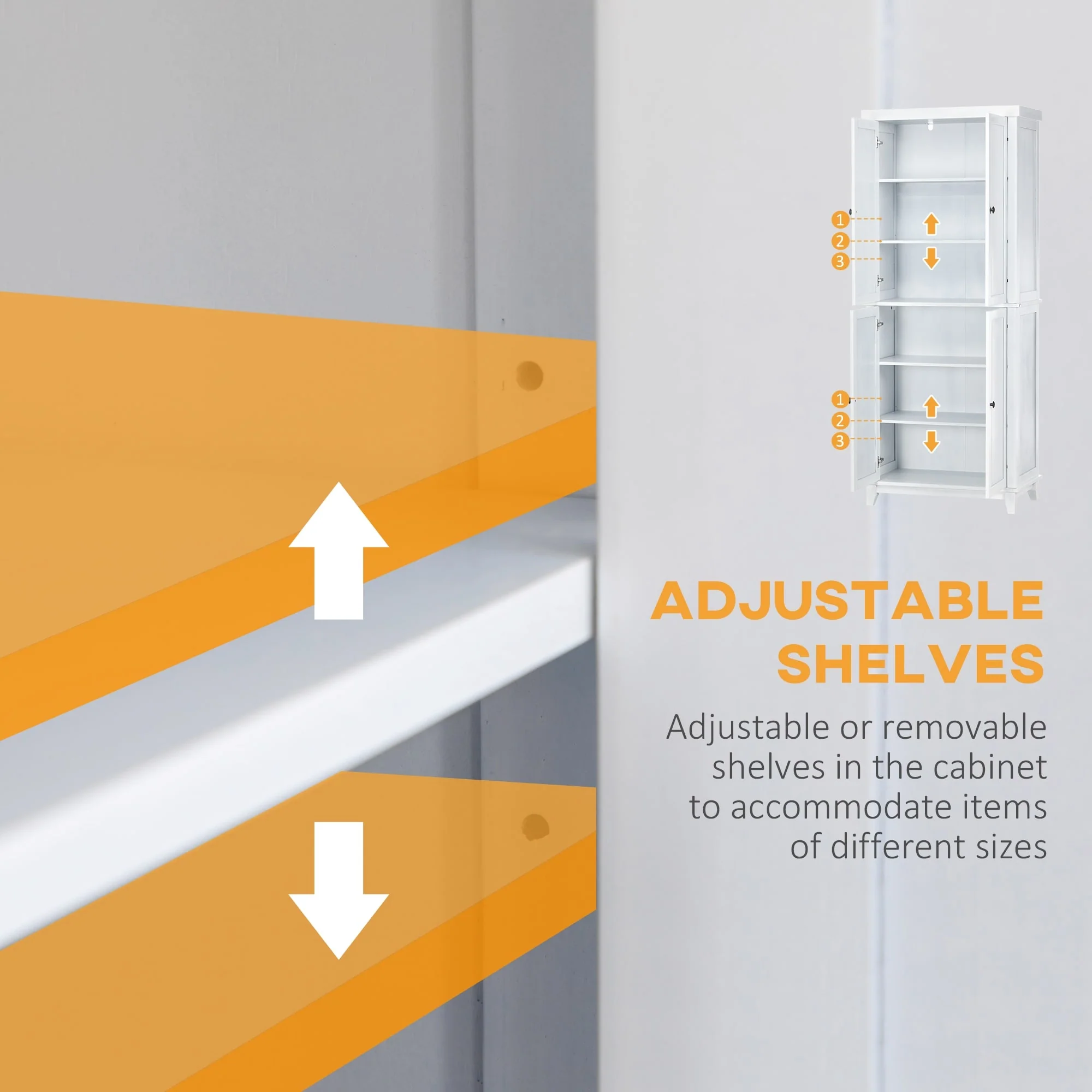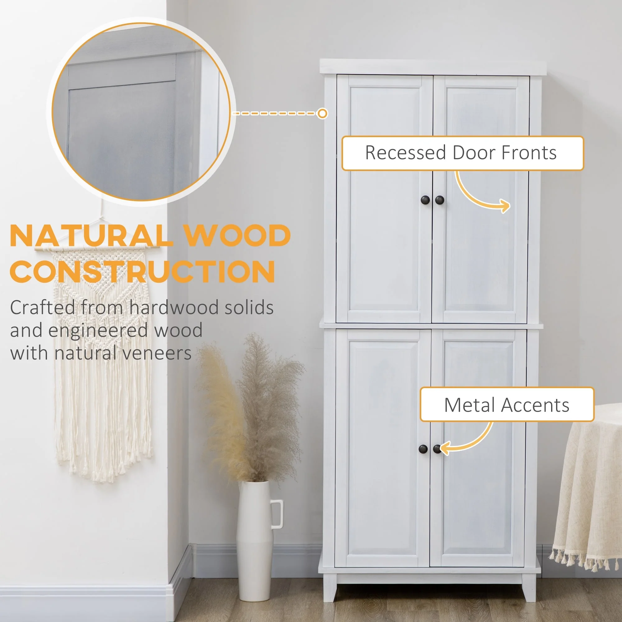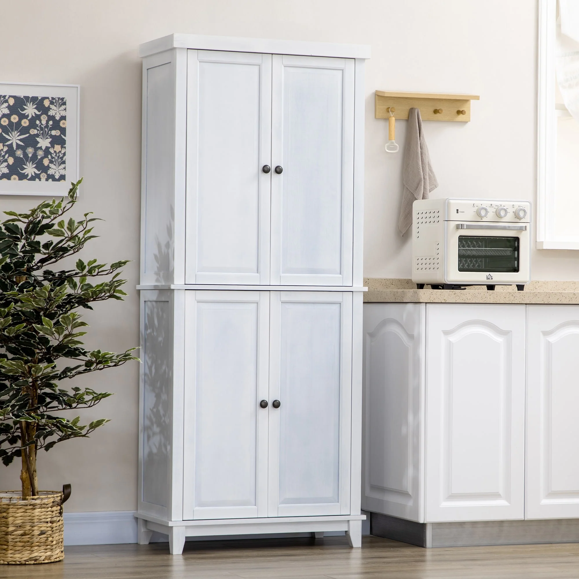 HOMCOM 72" Freestanding 4-Door Kitchen Pantry, Storage Cabinet Organizer with 4-Tiers, and Adjustable Shelves, White
