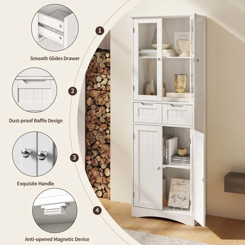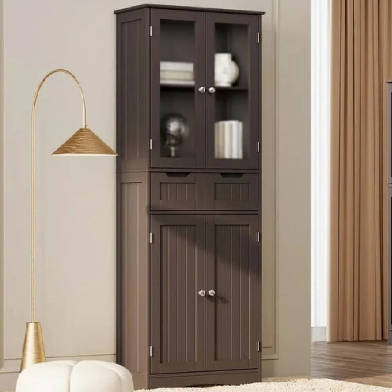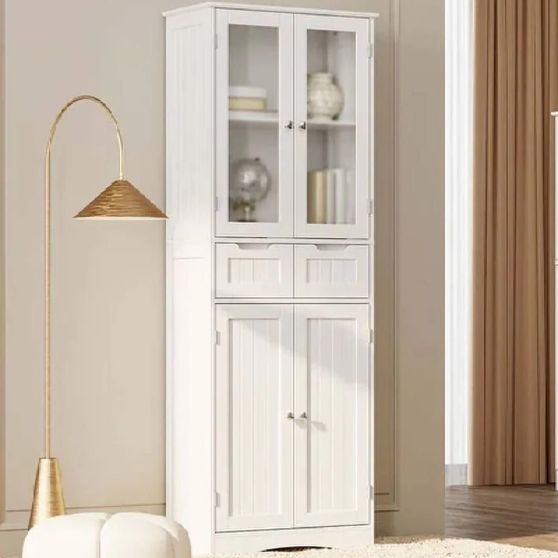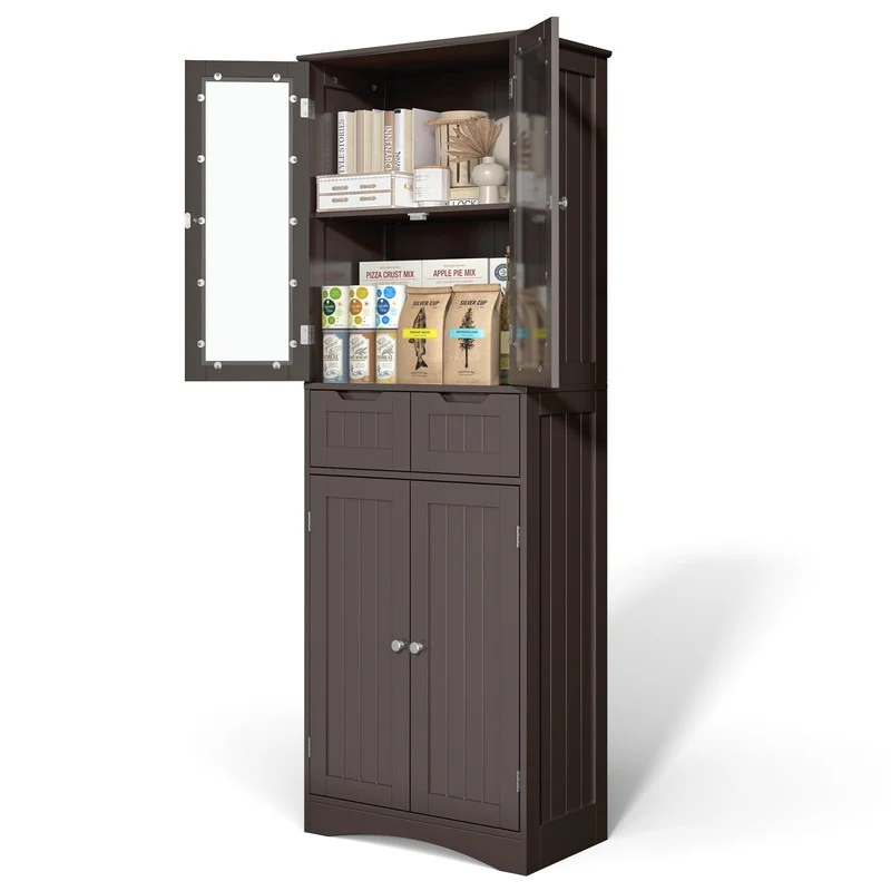 VEIKOUS Kitchen Pantry Storage Cabinet Cupboard with Framed Glass Door and Drawer