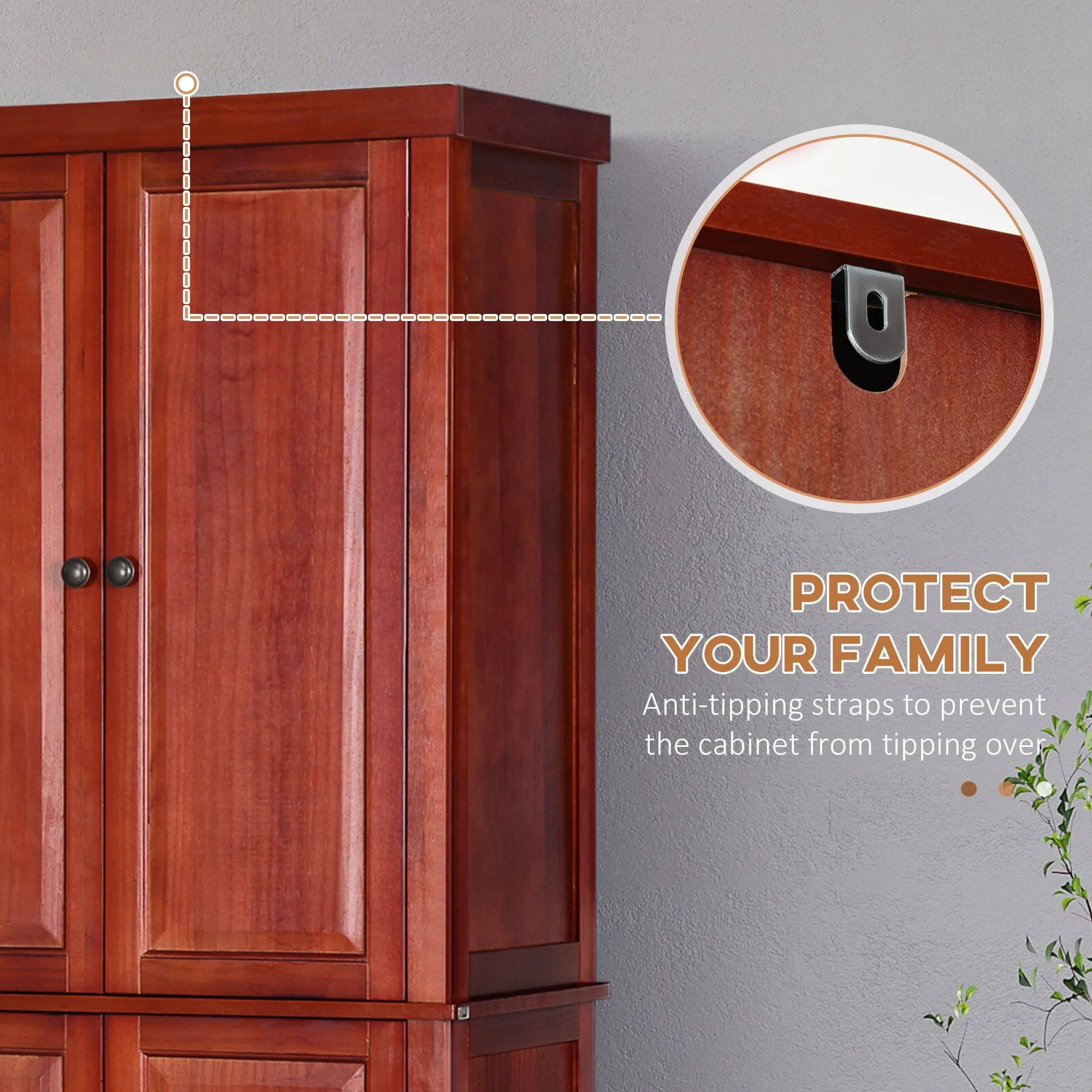 HOMCOM 72.5" Pinewood Large Kitchen Pantry Storage Cabinet, Freestanding Cabinets with Shelf Adjustability, Soft-Close Mechanism