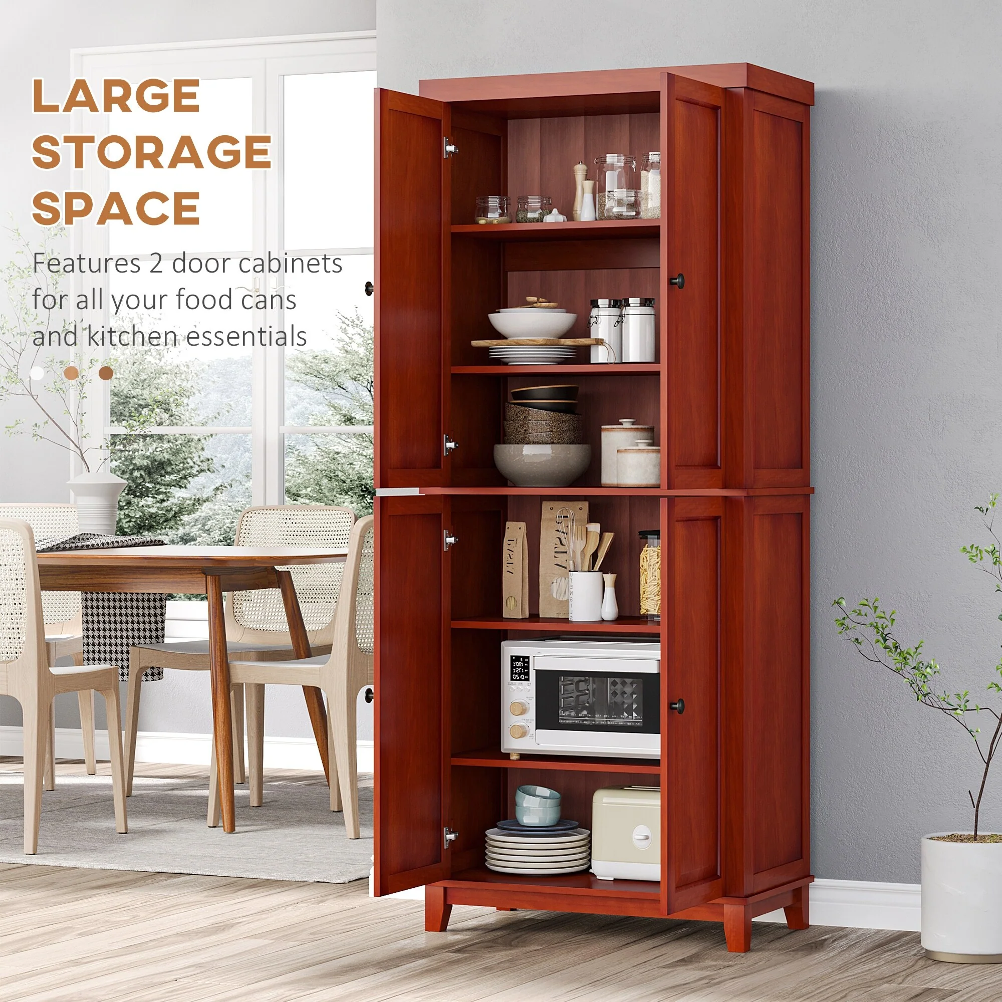 HOMCOM 72.5" Freestanding Kitchen Pantry Cabinet, Tall Storage Cabinet with 4 Doors and 2 Adjustable Shelves for Dining Room