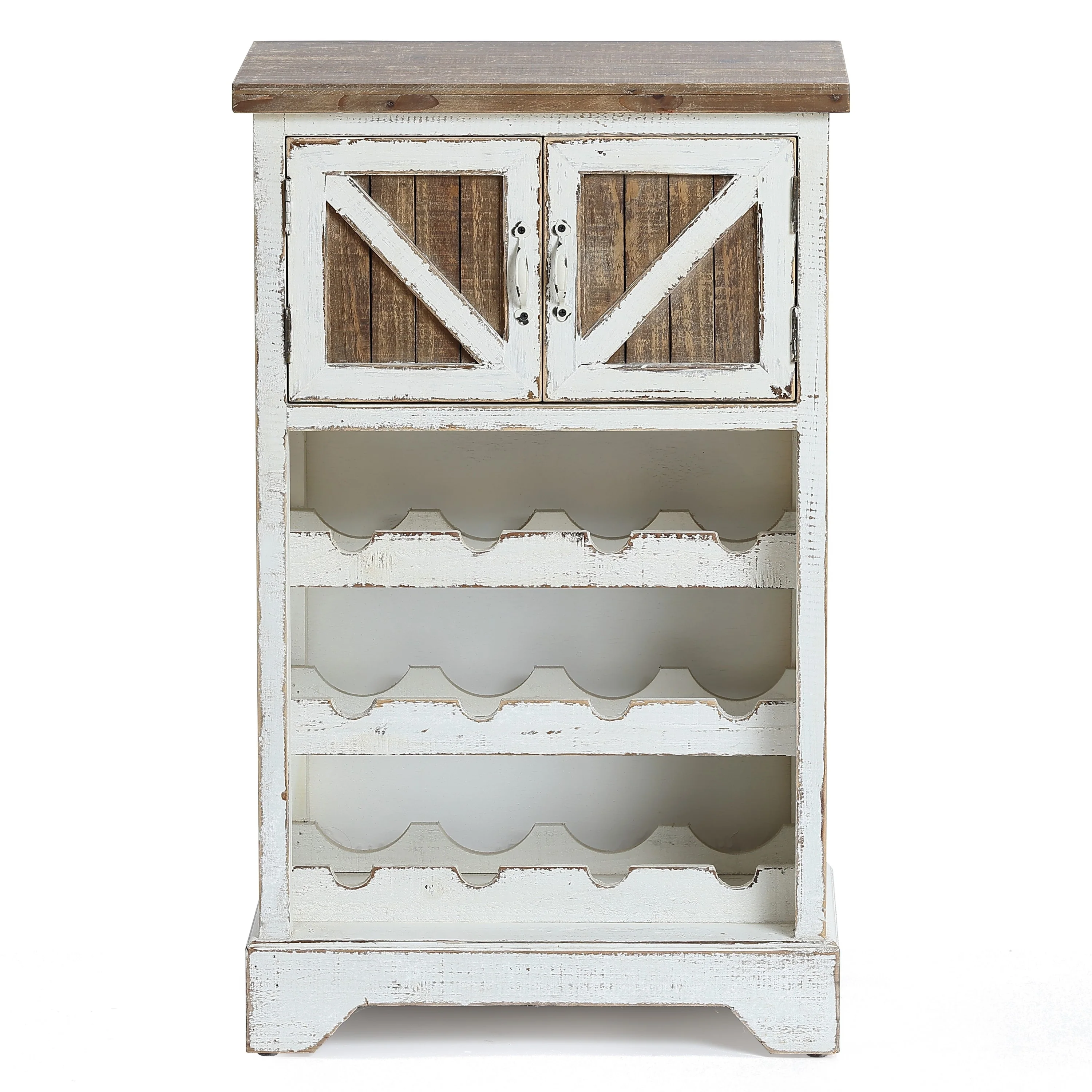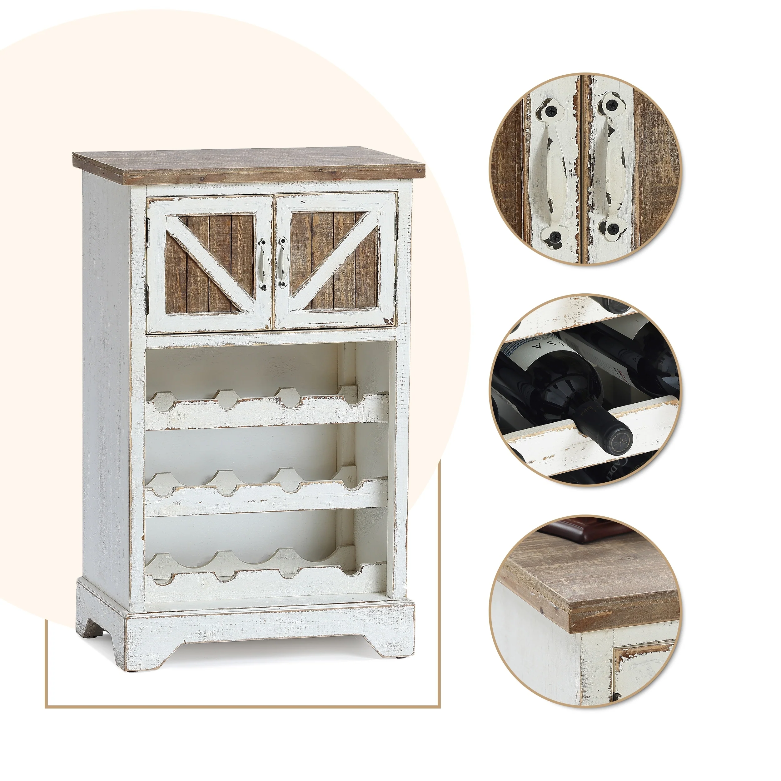 White and Natural Wood 2-Door Wine Cabinet - 30.9" H x 18.9" W x 13" D