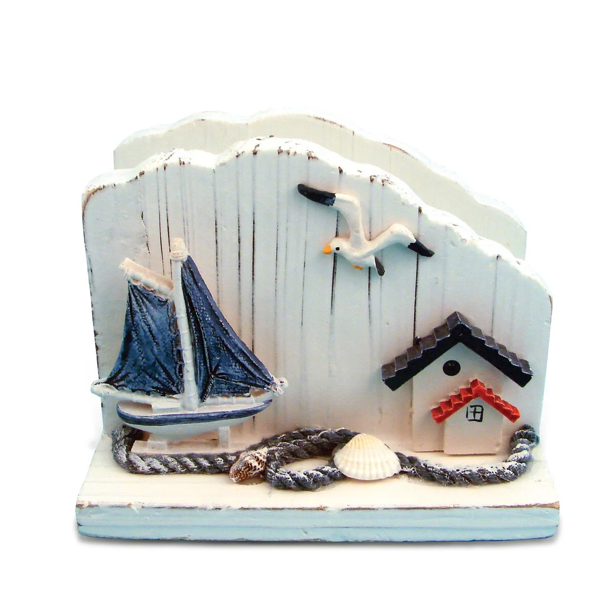 Puzzled White Wooden Sailboat Napkin Holder Nautical Beach Themed