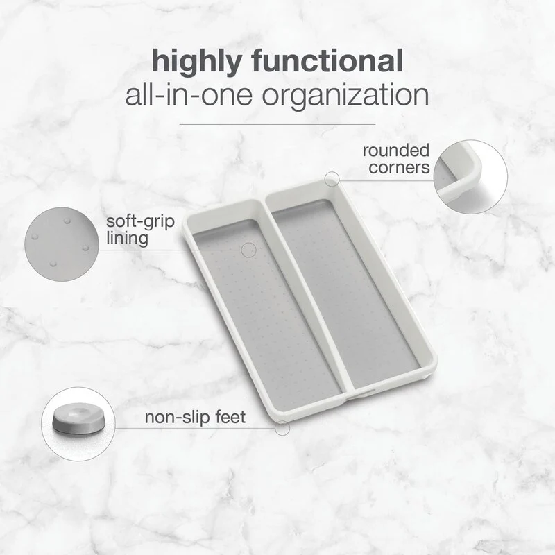 Mini 2 -Compartments Plastic Utensil Tray for Drawers Organizer, White