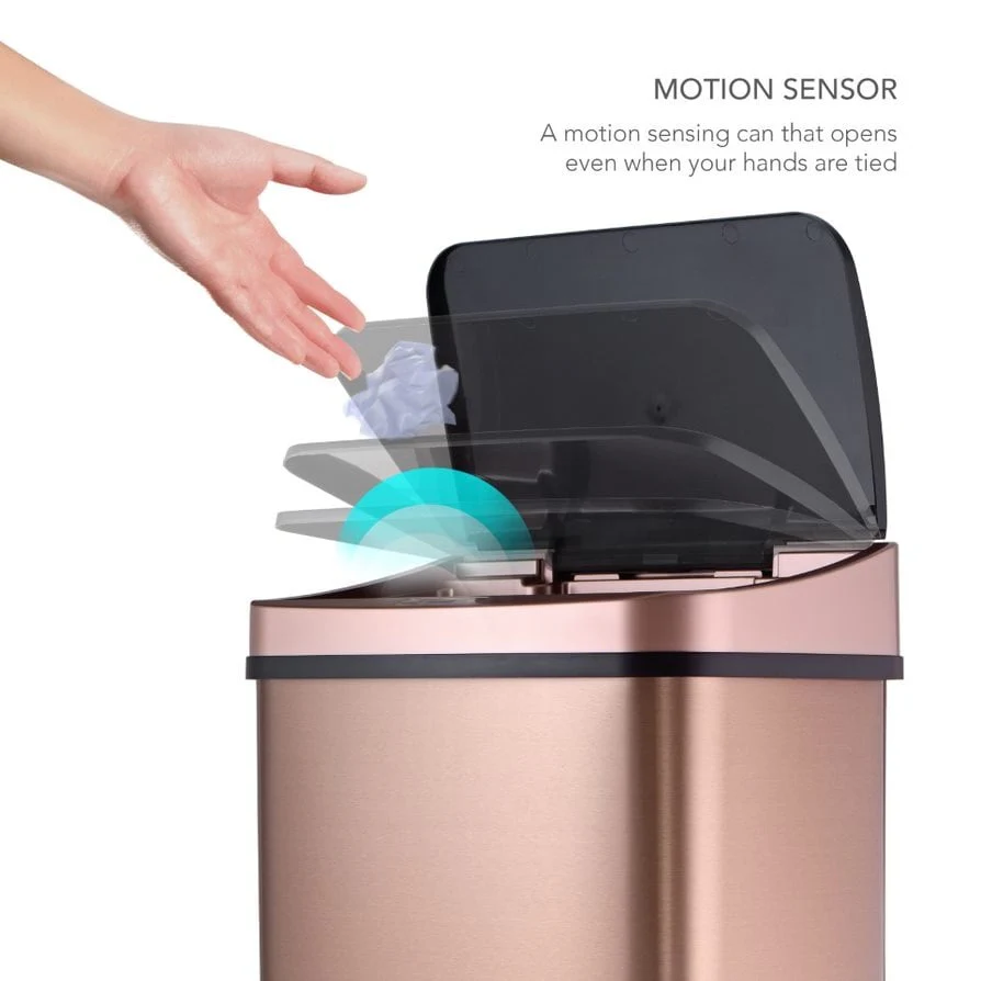 NINESTARS Rectangular Motion Sensor Trash Can 13.2 Gal./50 L Gold DZT-50-28GD