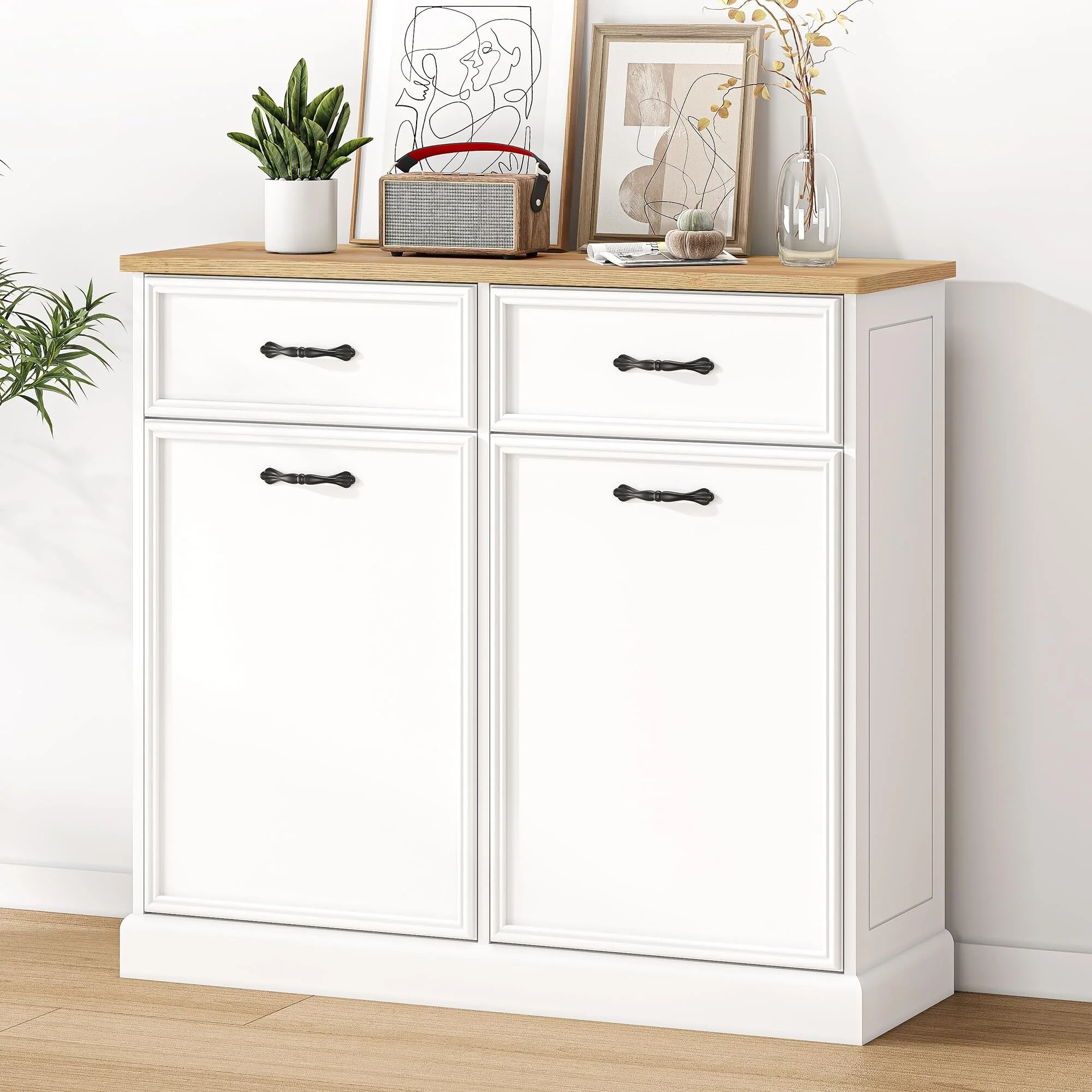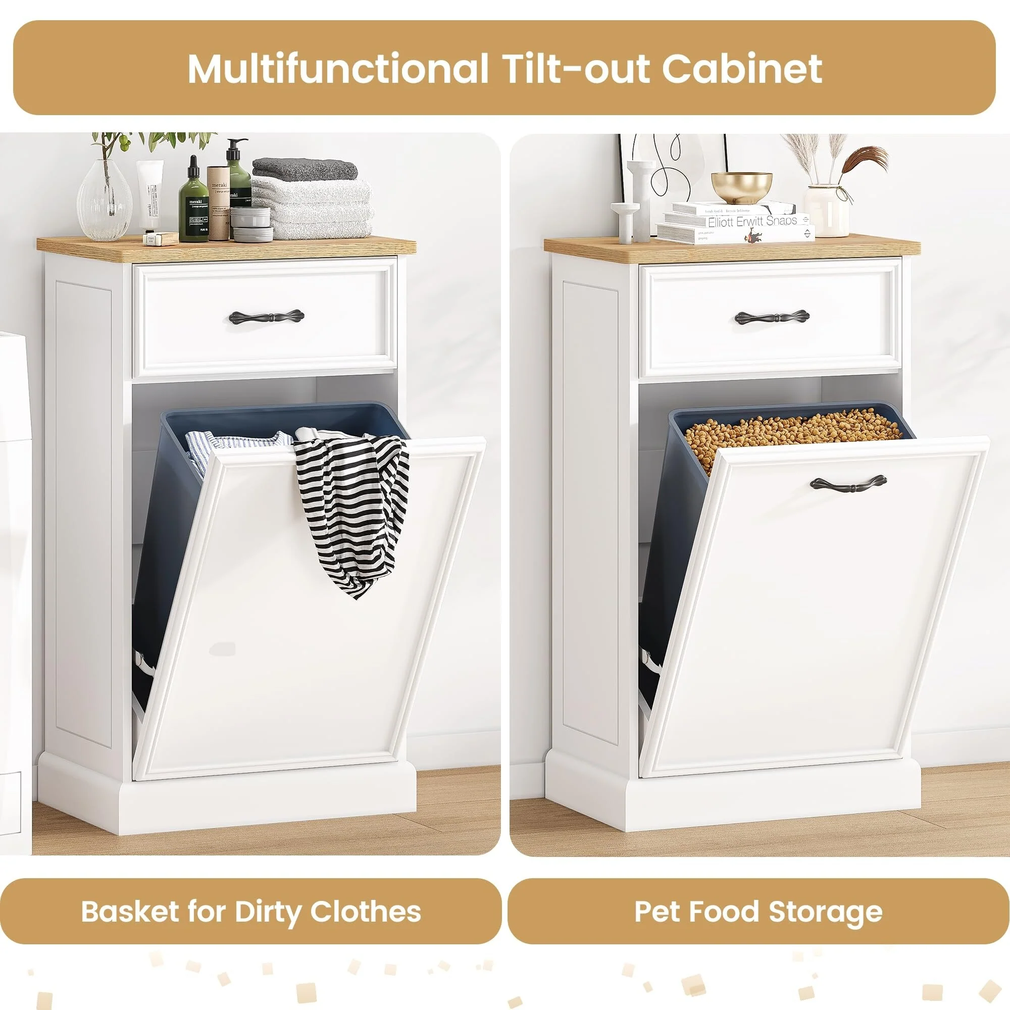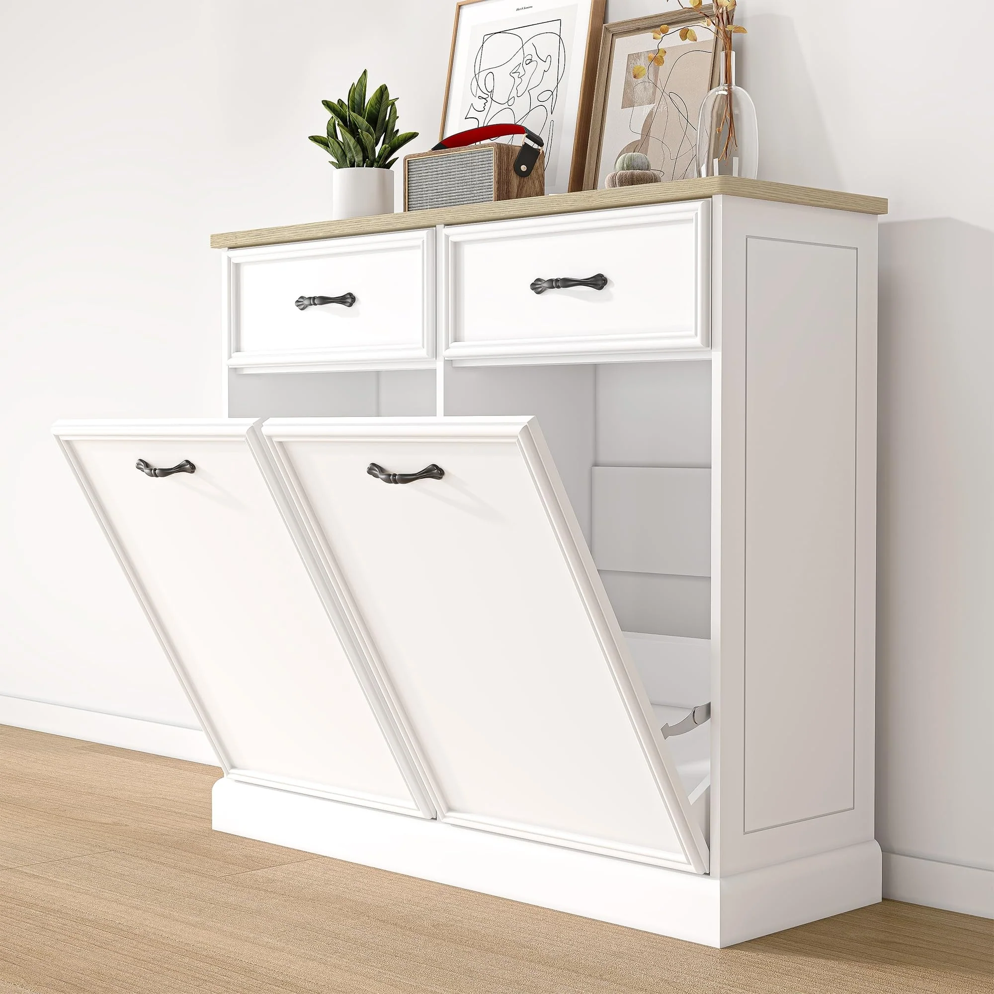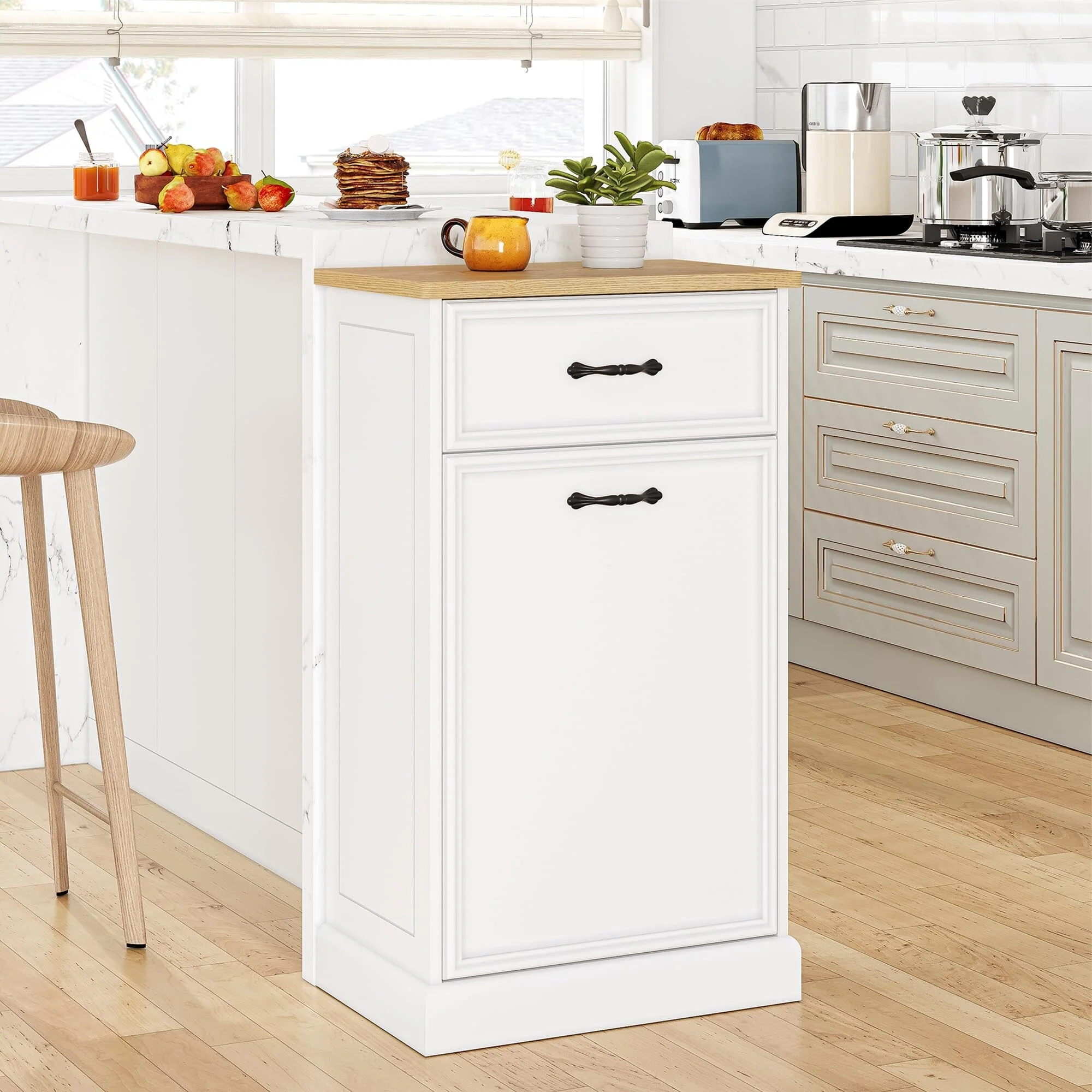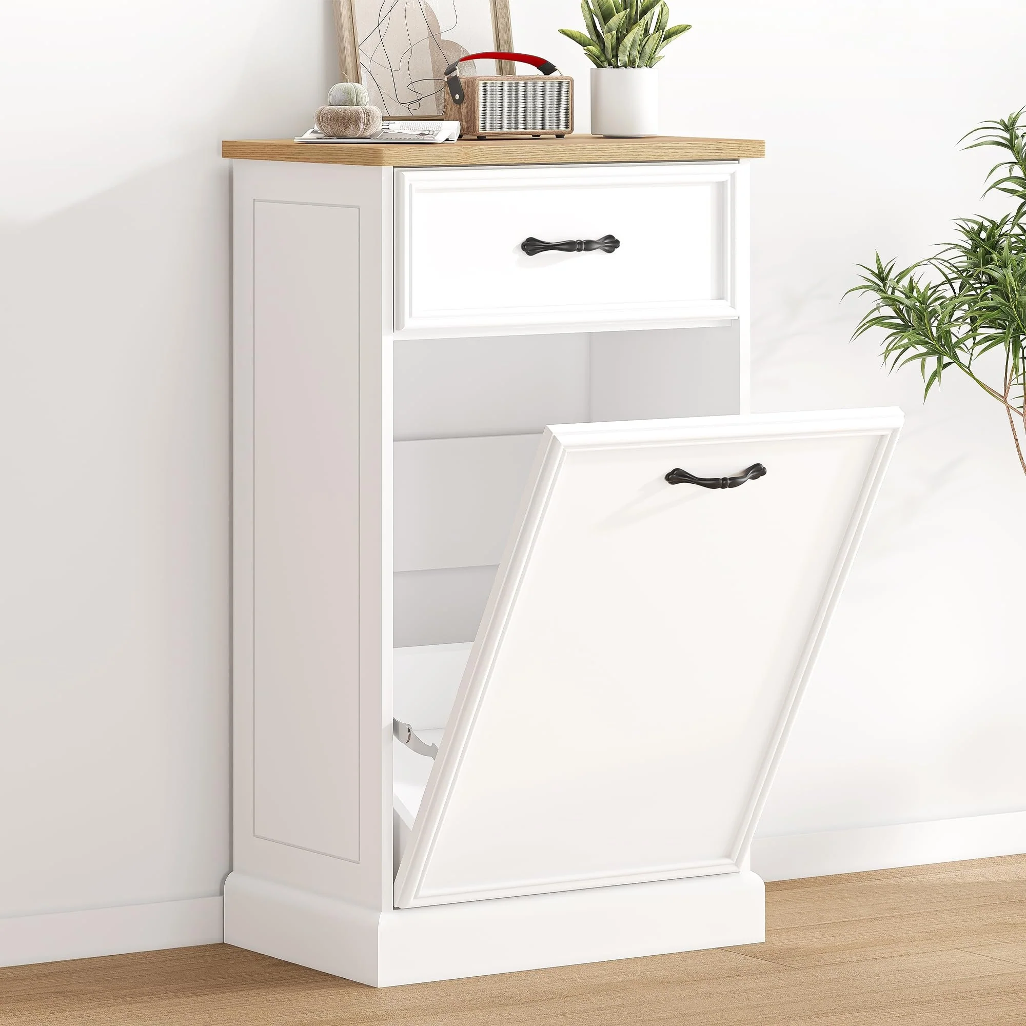 Kitchen Tilt Out Trash Can Cabinet with Drawer