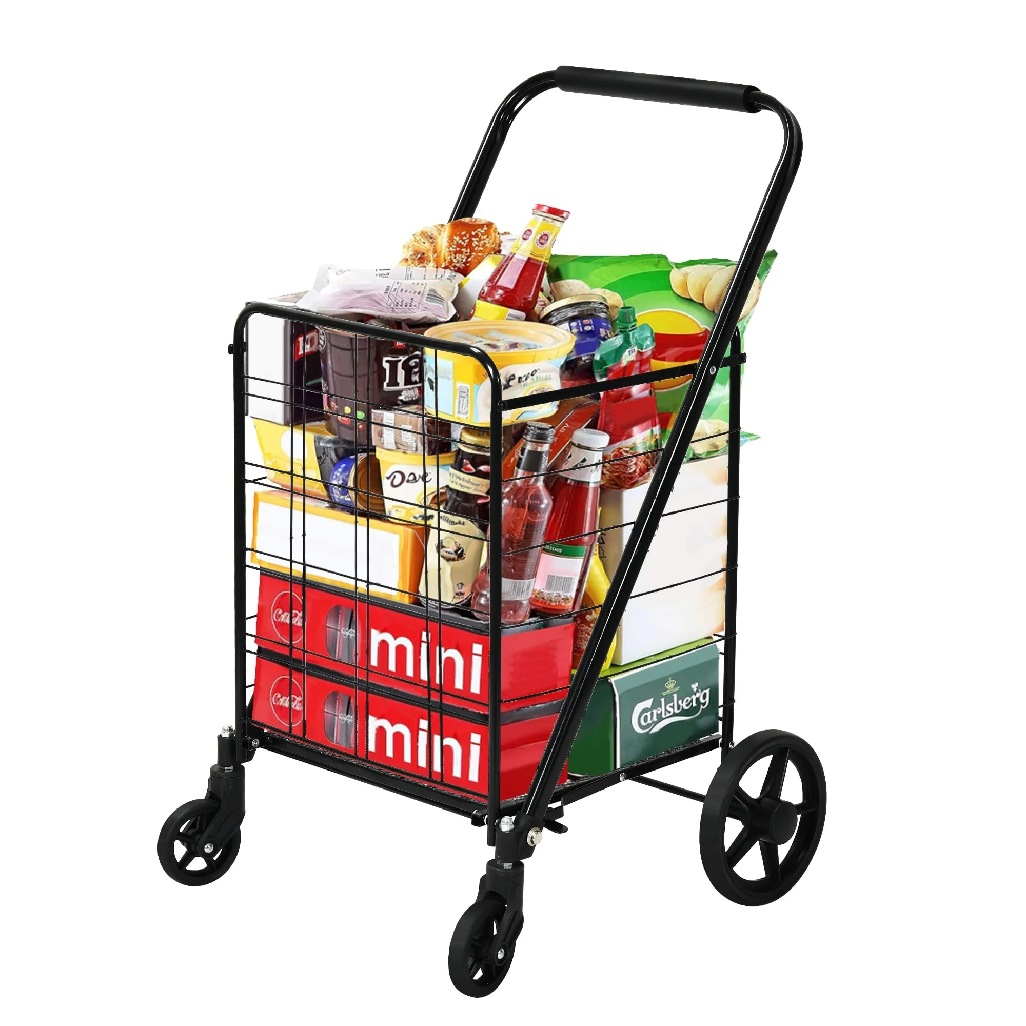 Moasis Utility Folding Shopping Cart Portable Trolley with Swivel Wheels