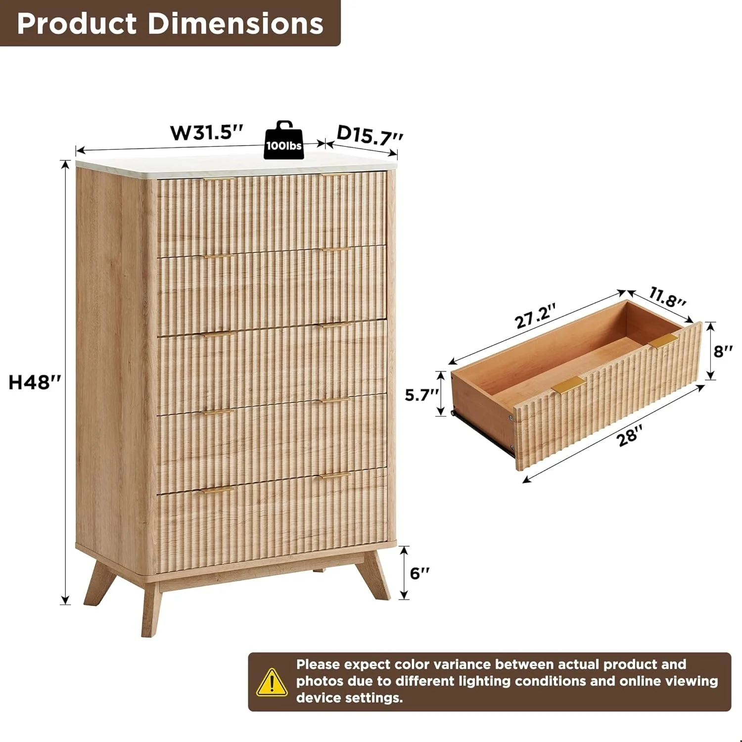 Modern Fluted 5 Drawers Dresser, Chest of Drawers, Dresser TV Stand