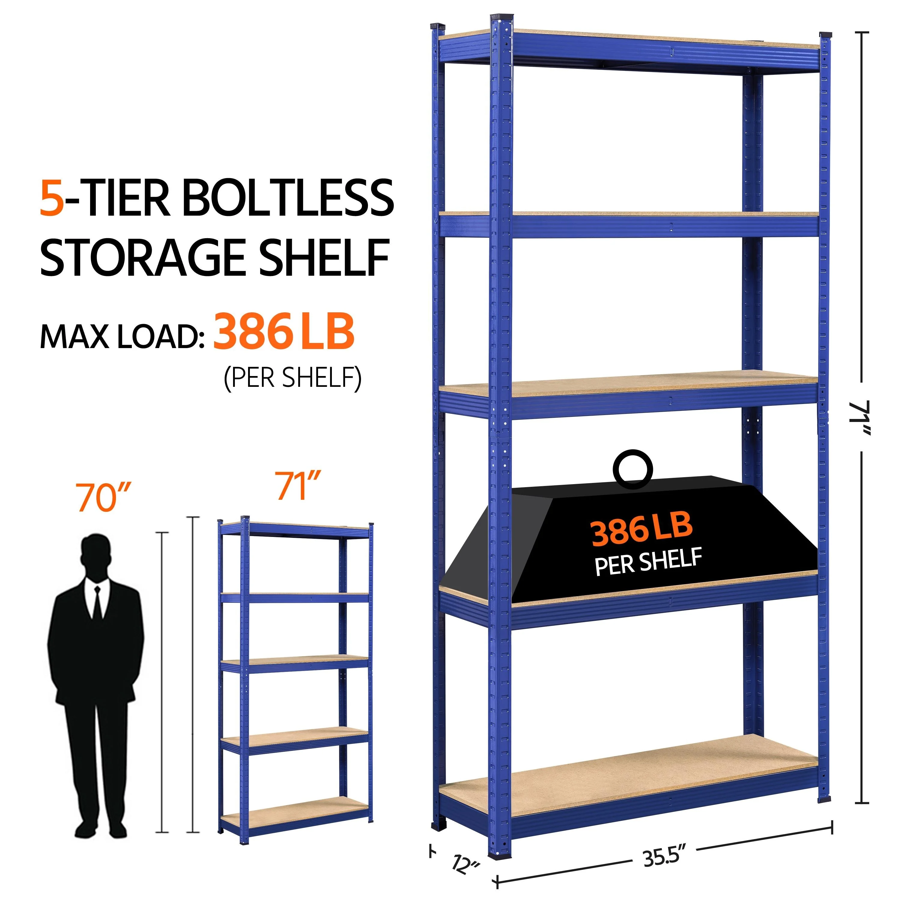 Yaheetech Adjustable 5-Tier Shelf Metal Storage Rack for Home/Office/Garage - 35.5�� L �� 12�� W �� 71�� H