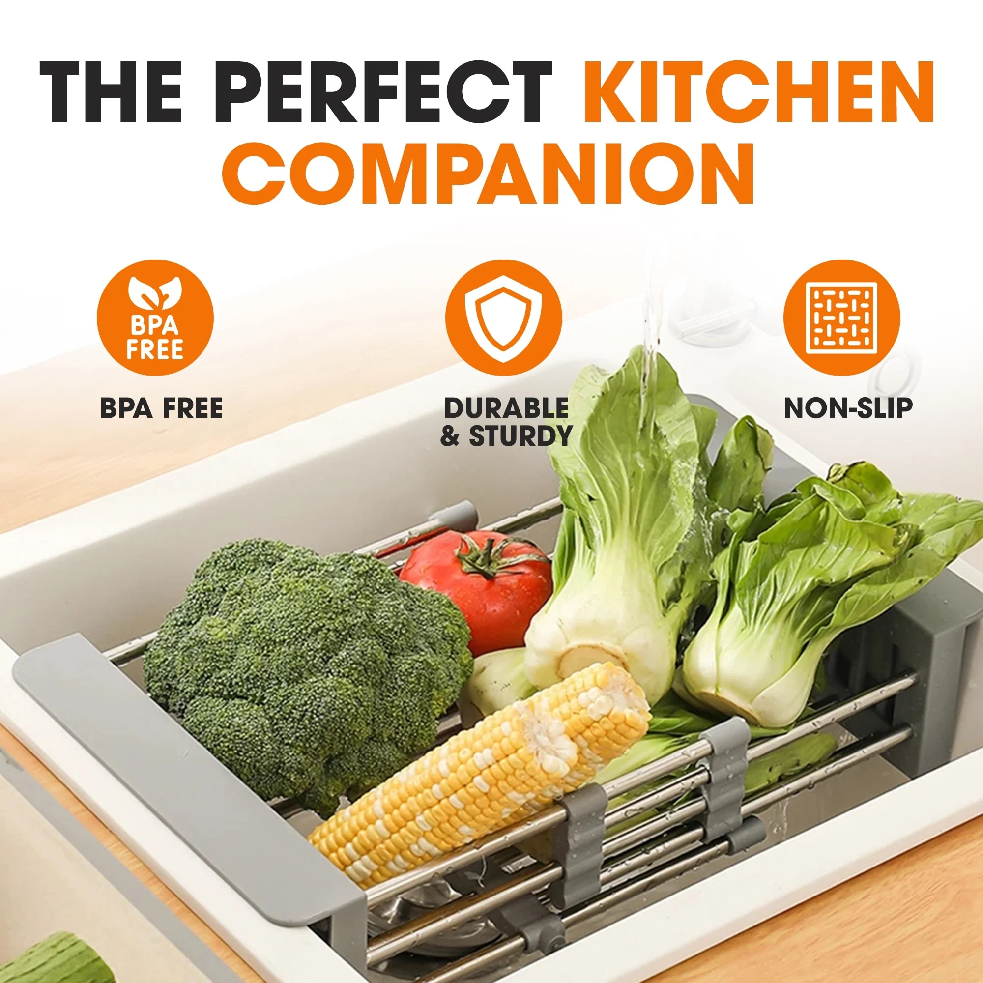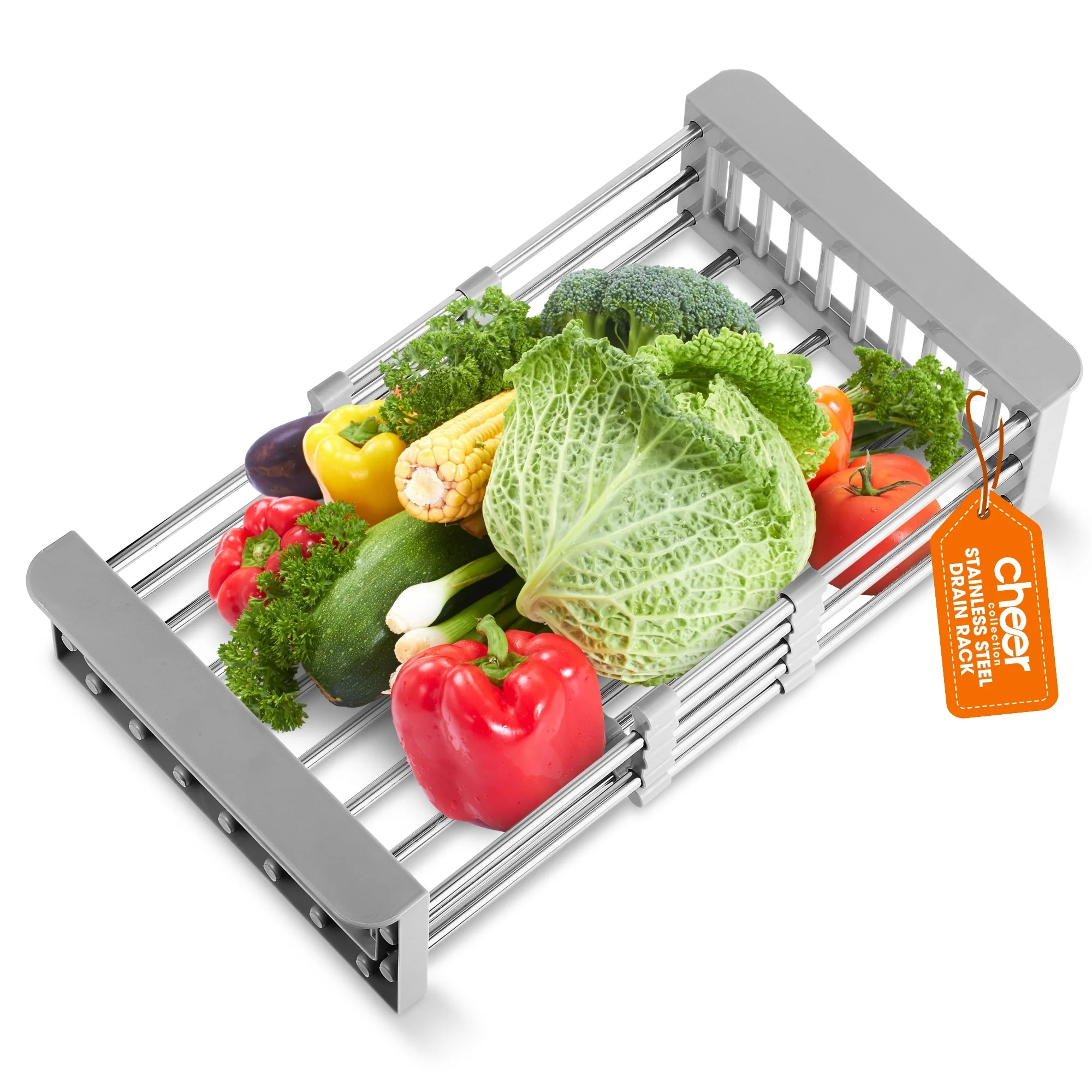 Cheer Collection Sink Drying Rack - Over The Sink Retractable Sink Strainer