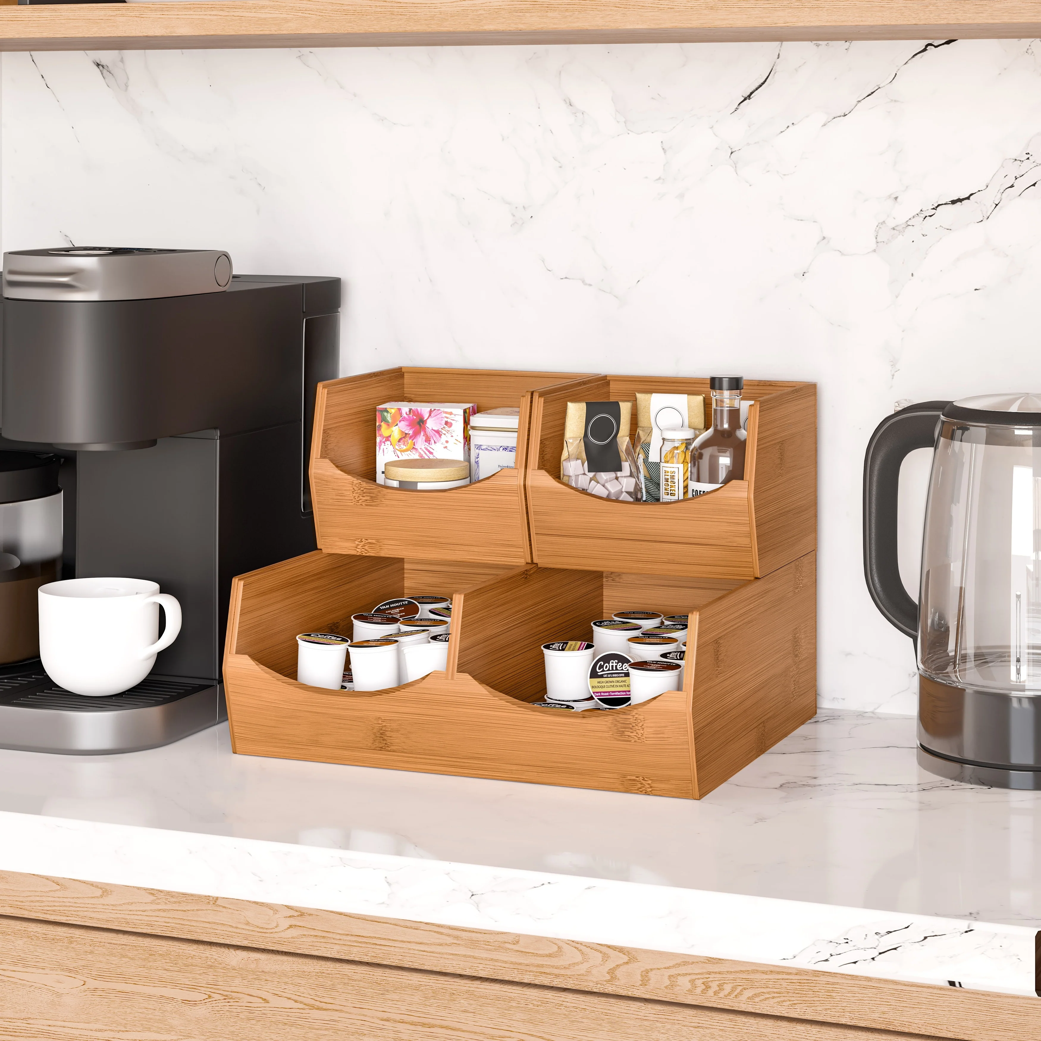 Seville Classics 3-Piece Stackable Bamboo Bin Organizer Set