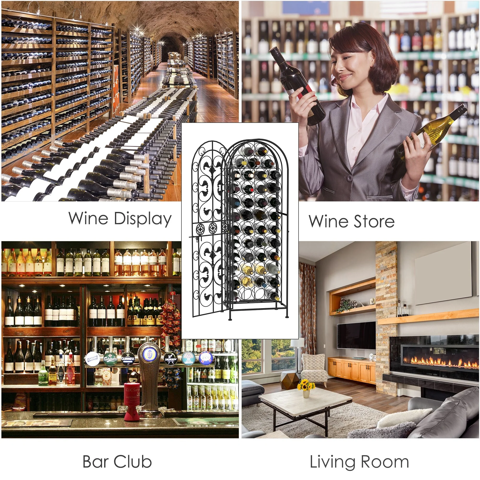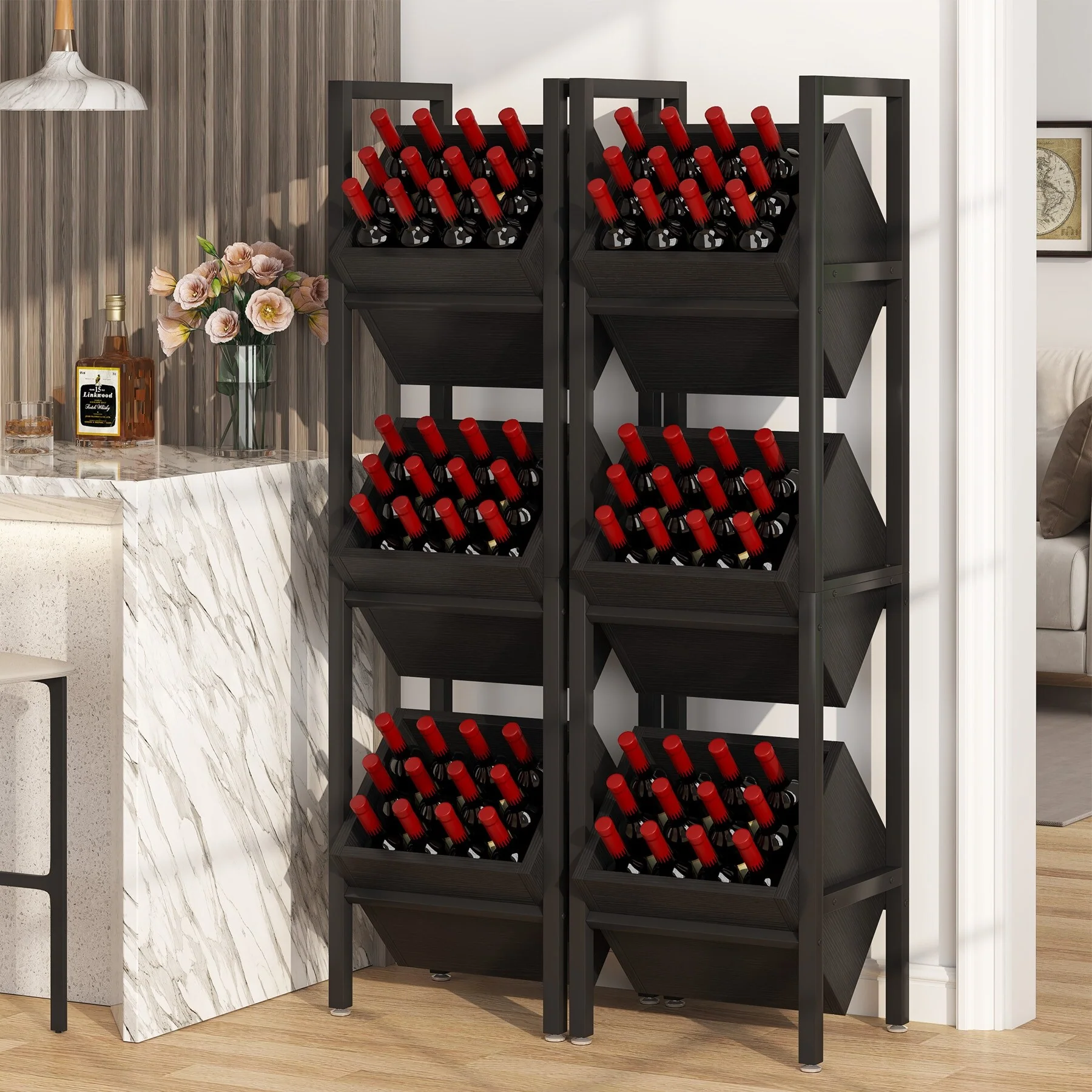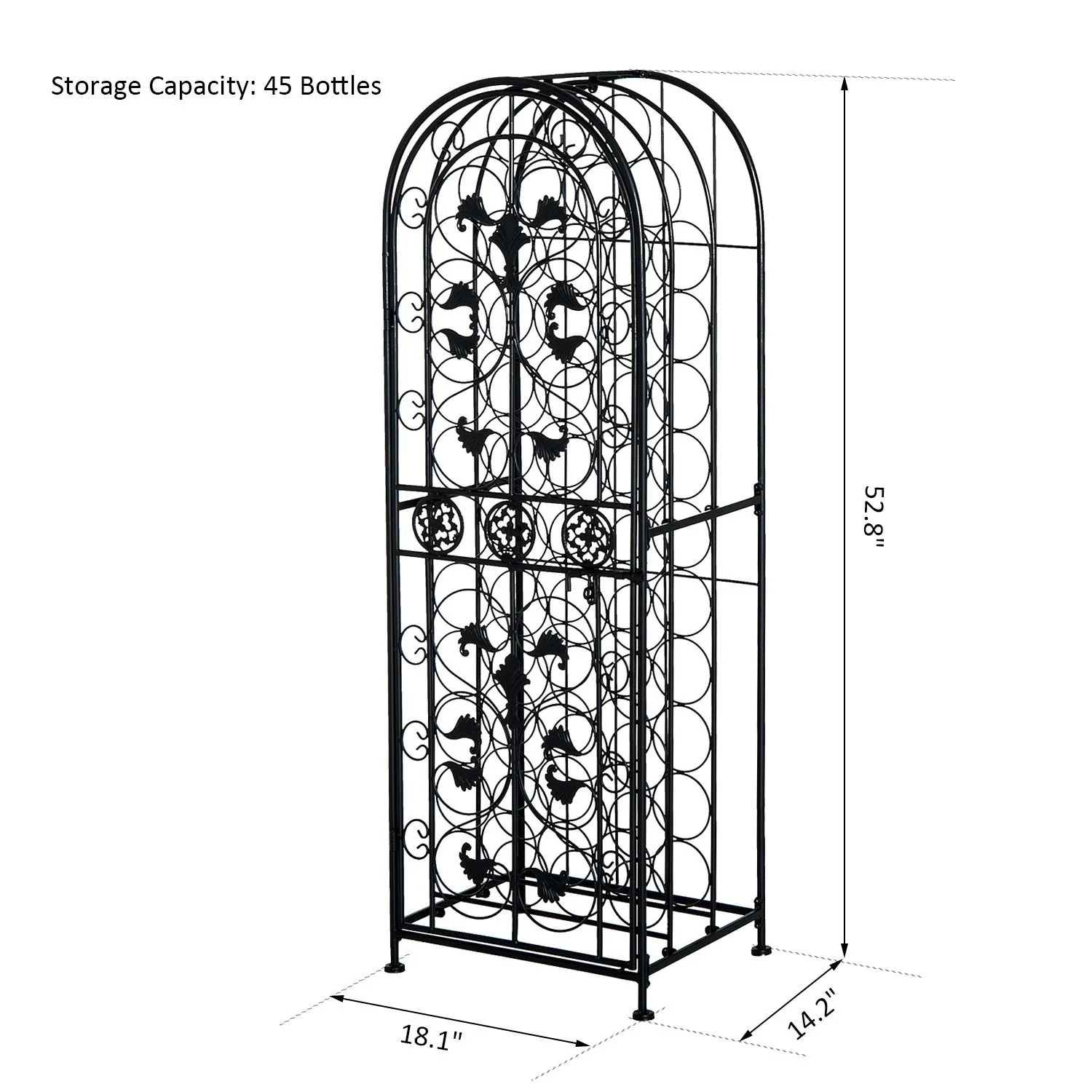 HOMCOM 45-Bottle Modern Wine Organizer Decorative Portable Wrought Iron Wine Rack Jail - 18.1*14.2*52.8