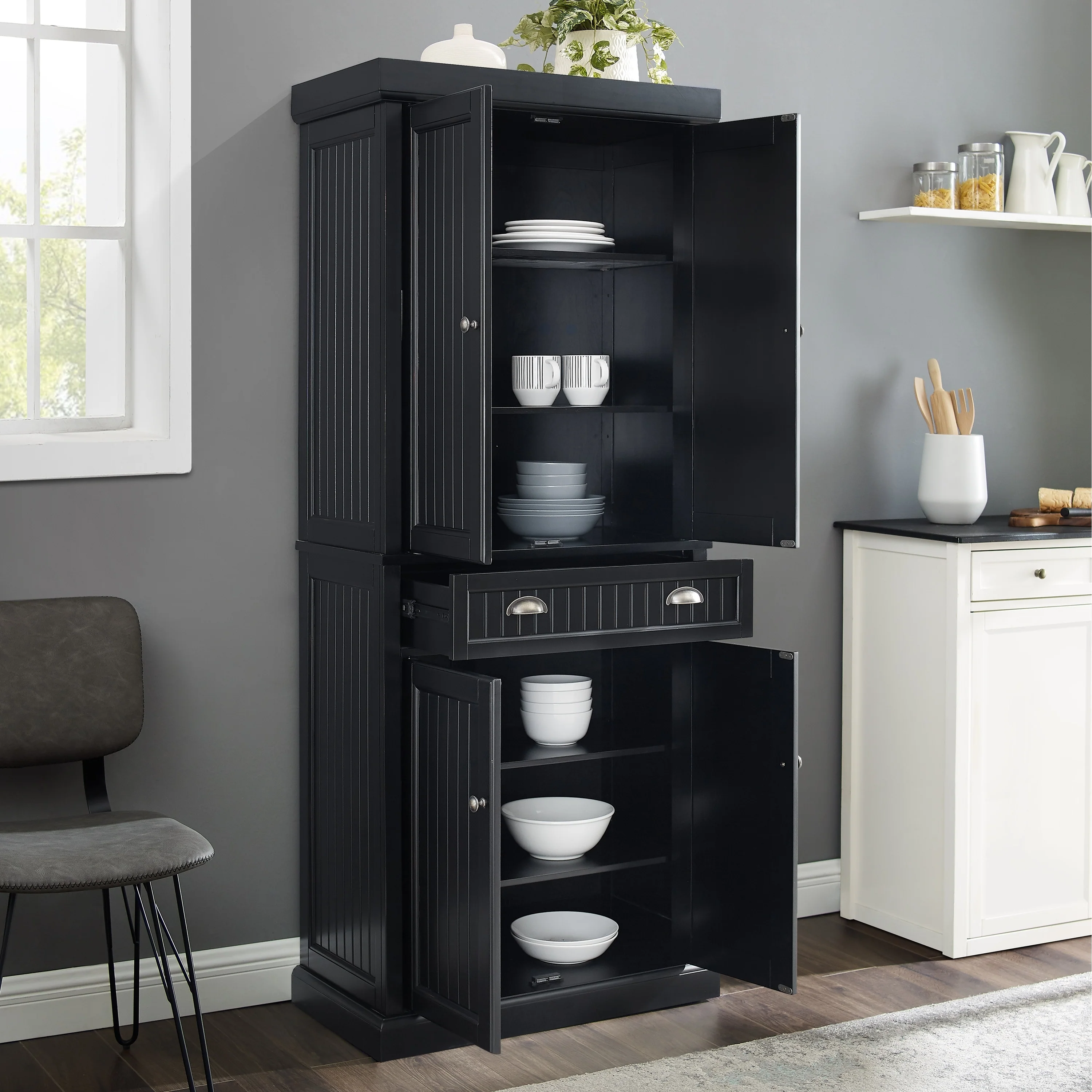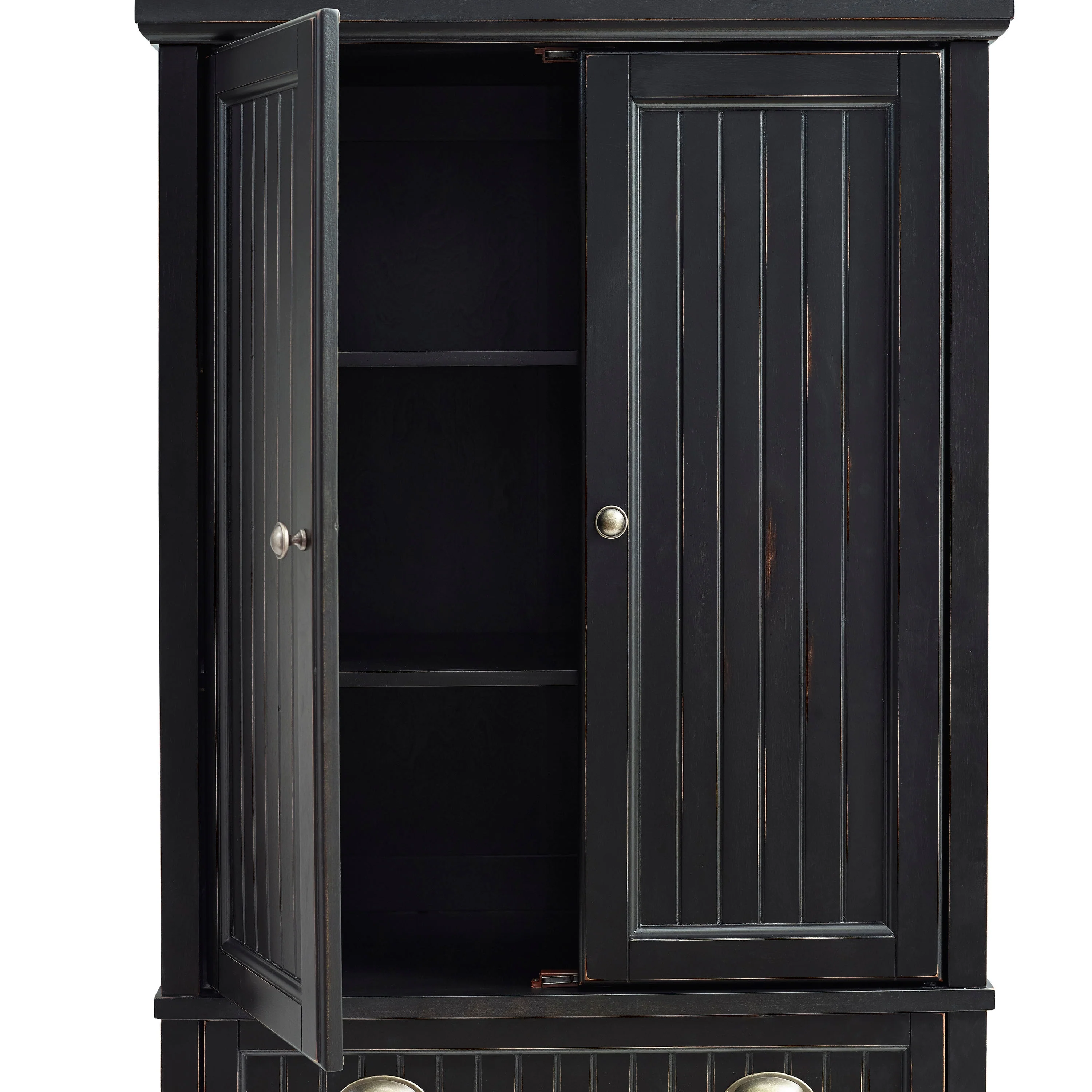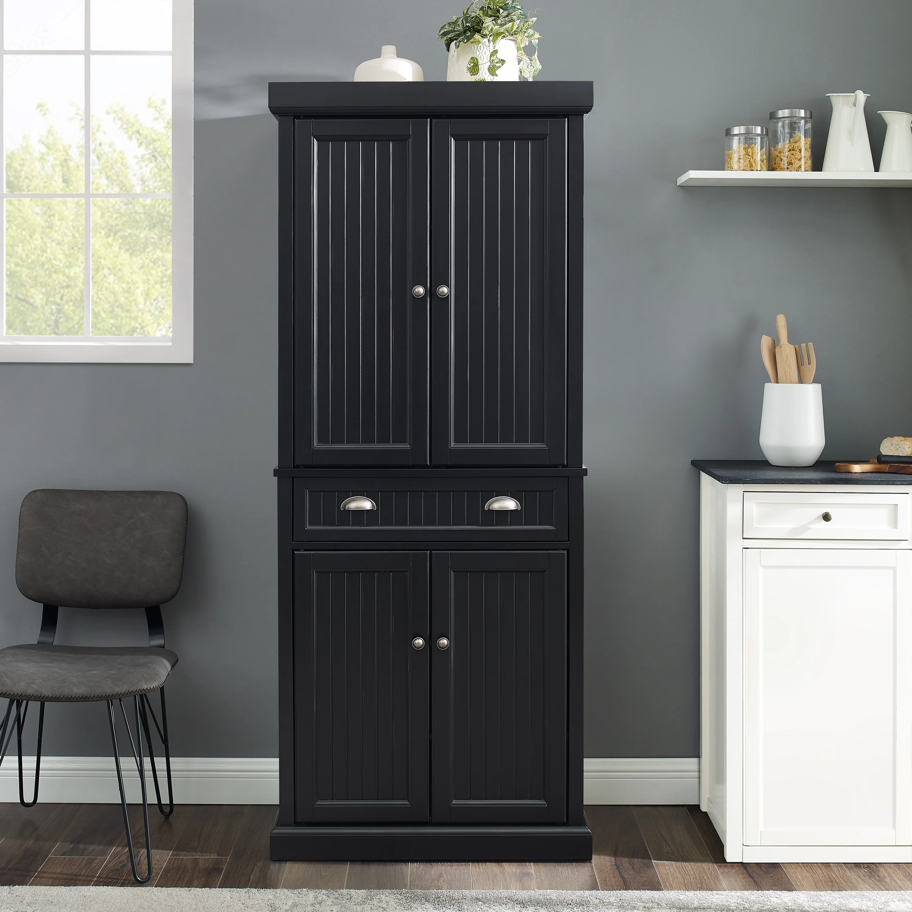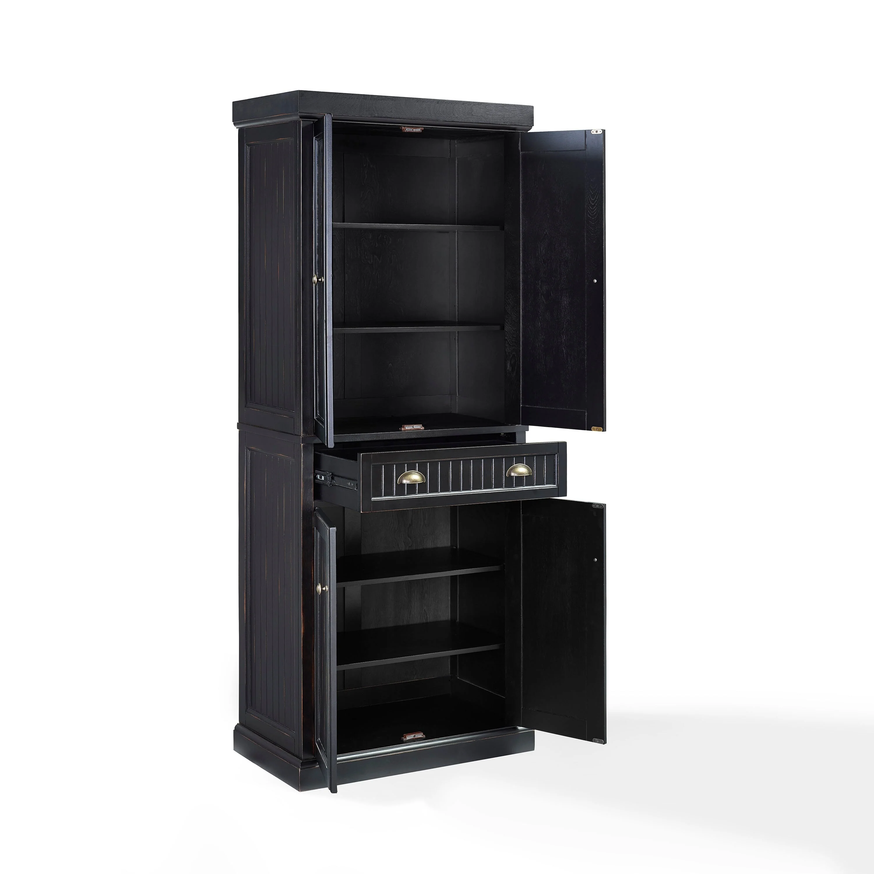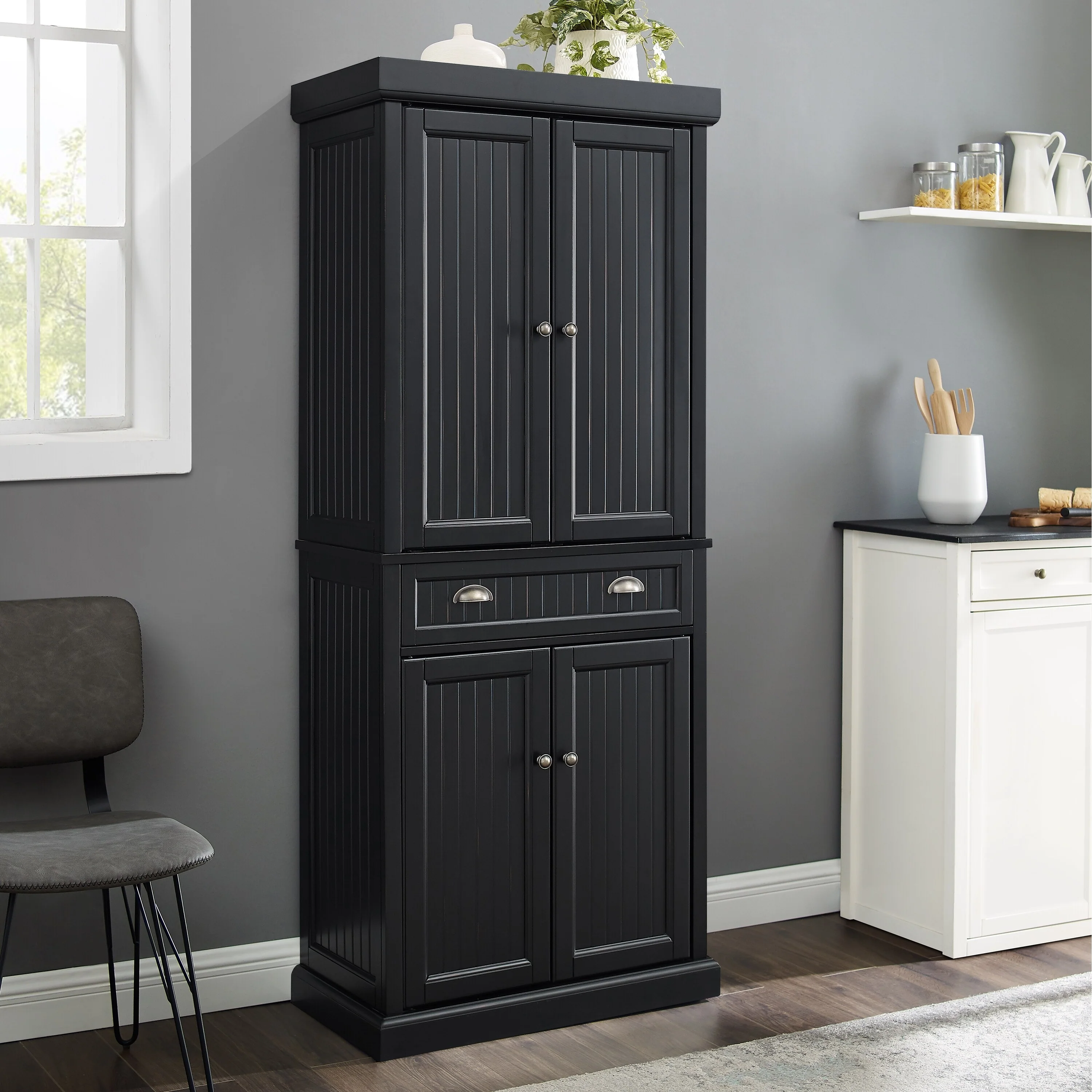 Crosley Seaside Kitchen Pantry in Distressed Black Finish