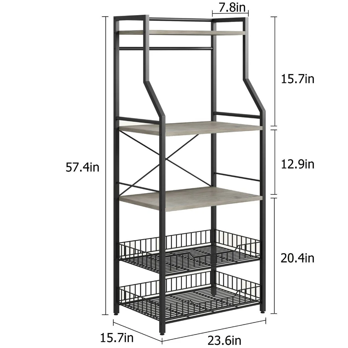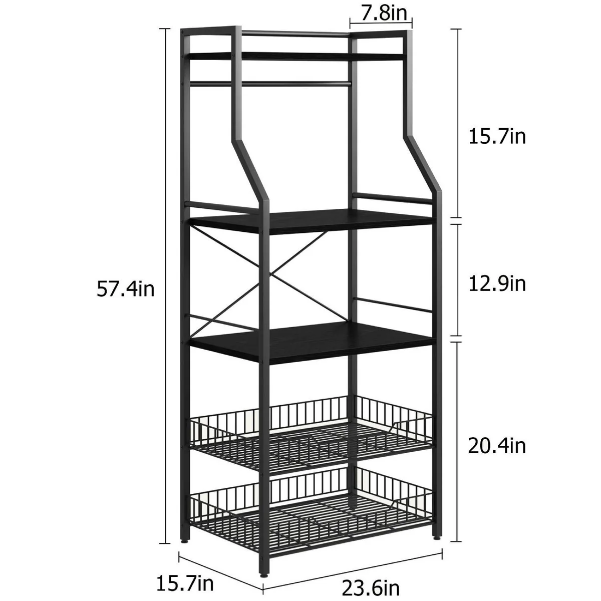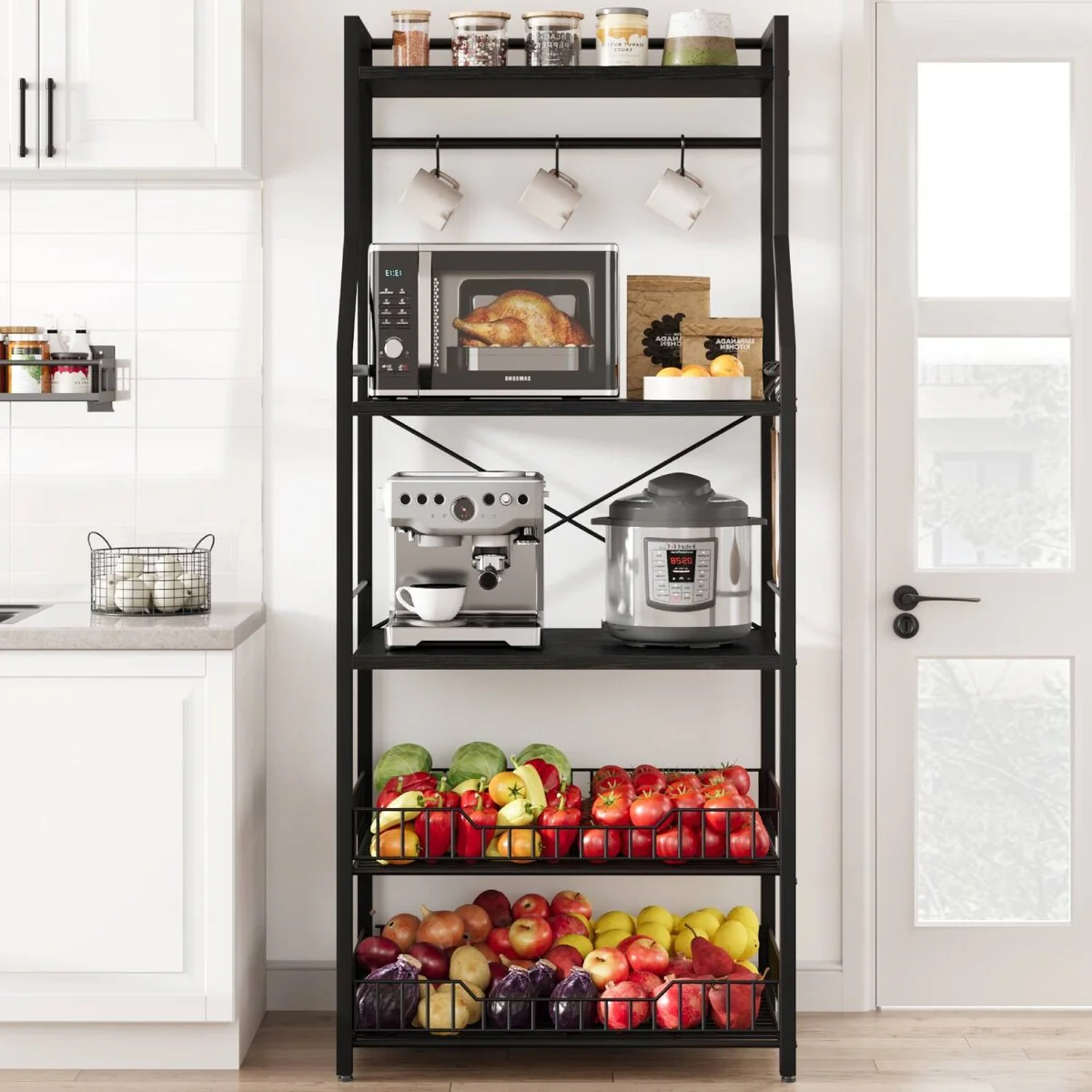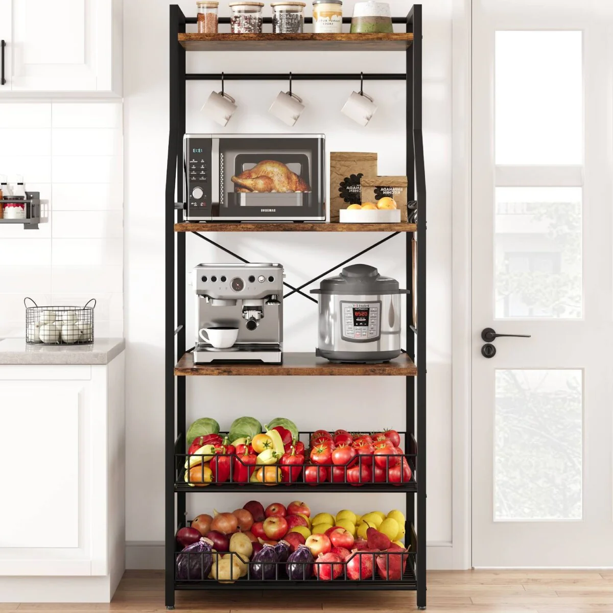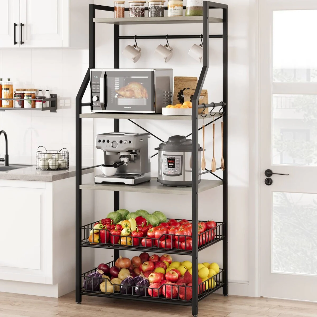 5-Tier Kitchen Bakers Rack with 2 Large Wire Baskets