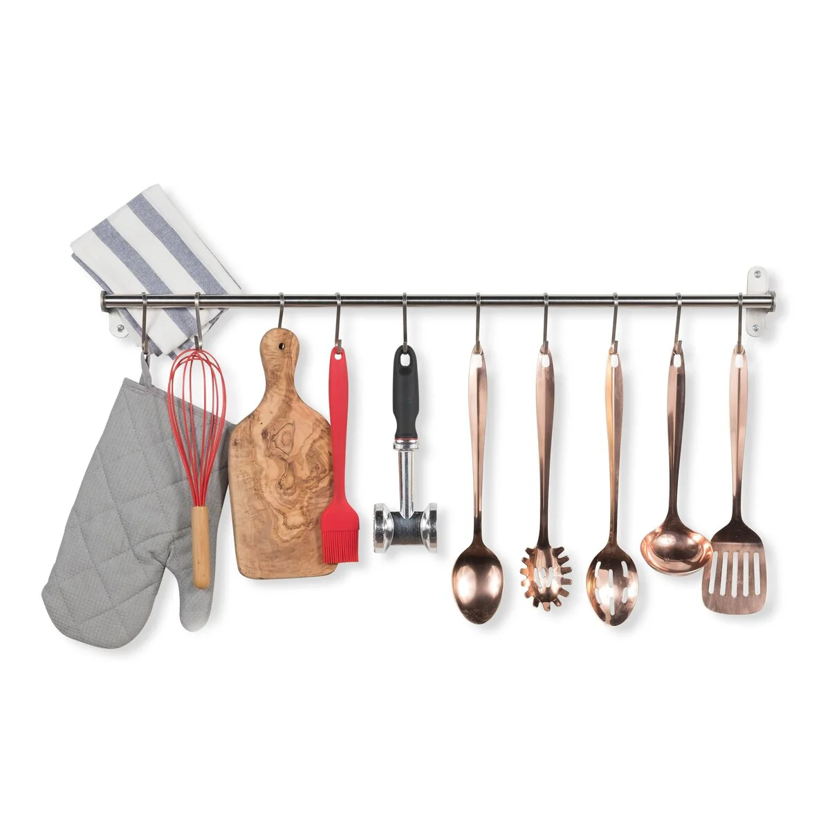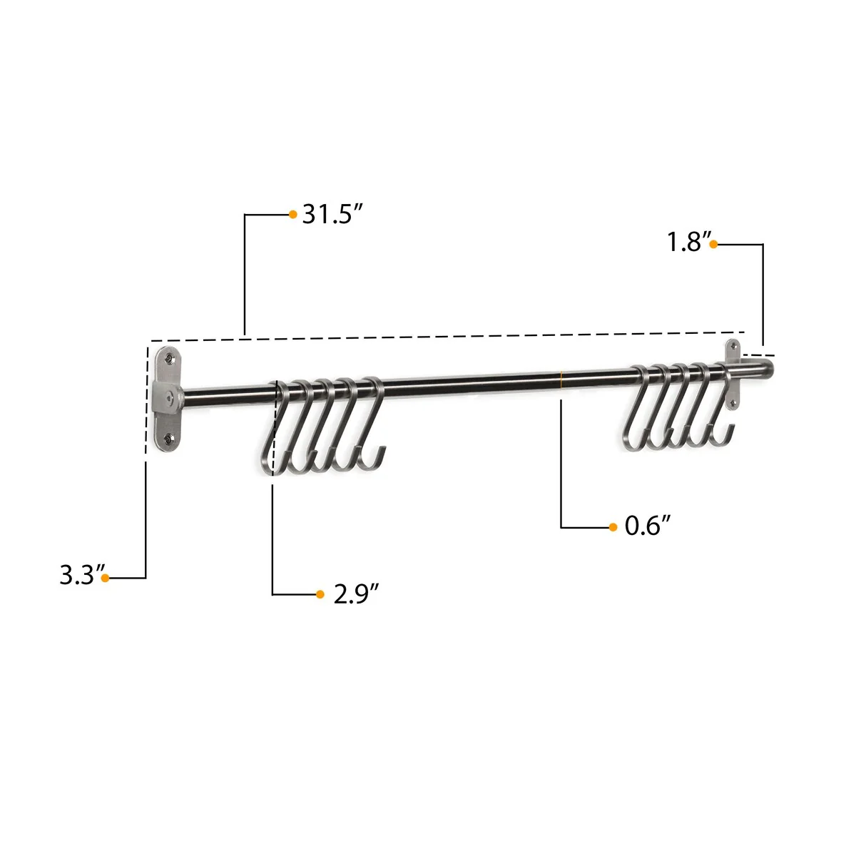 Wallniture Lyon Steel 31.5'' Pot Rack with 10 Hooks, Utensil Holder, Silver