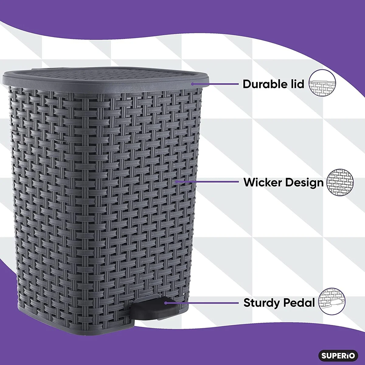 Superio Rattan Step On Trash Can with Removable Liner