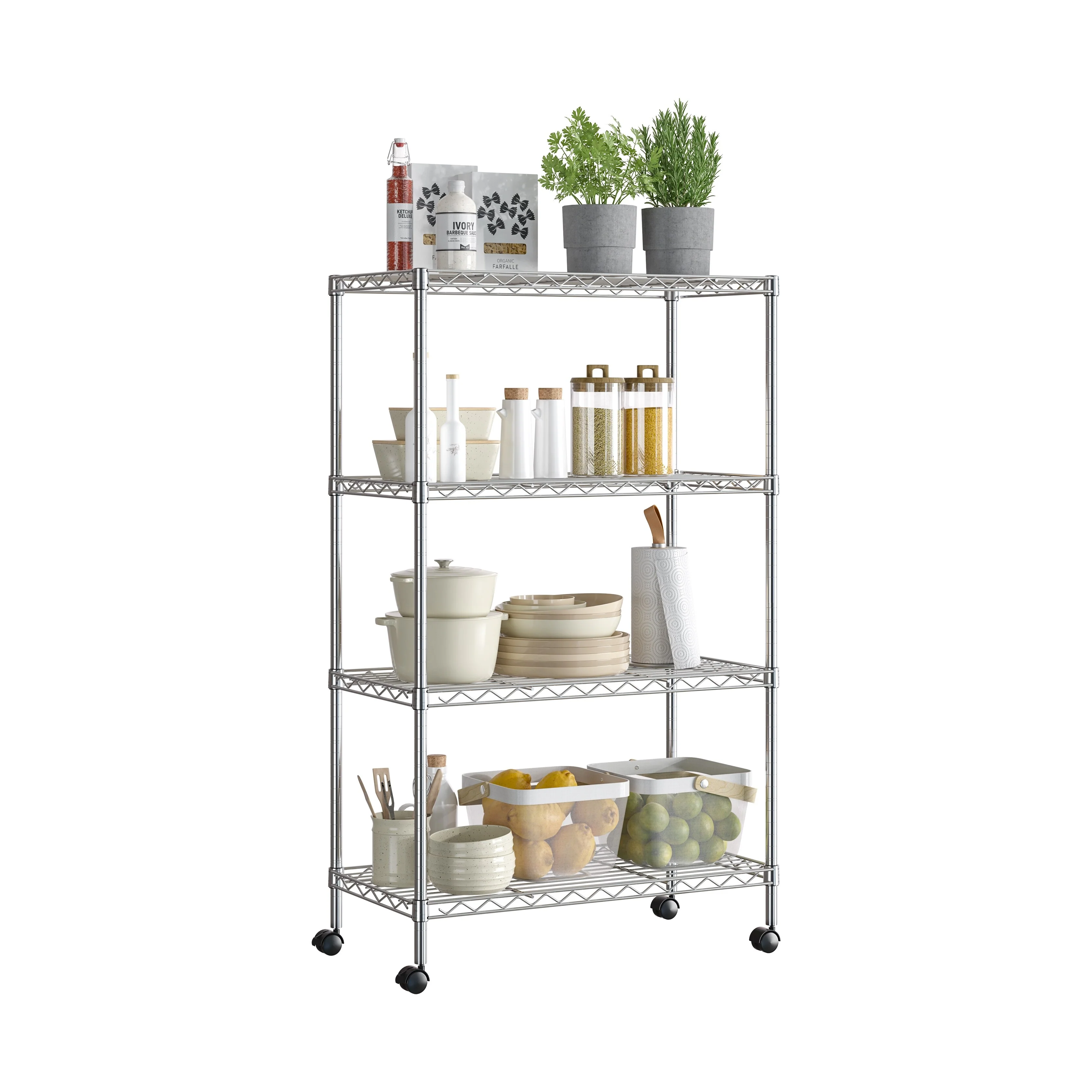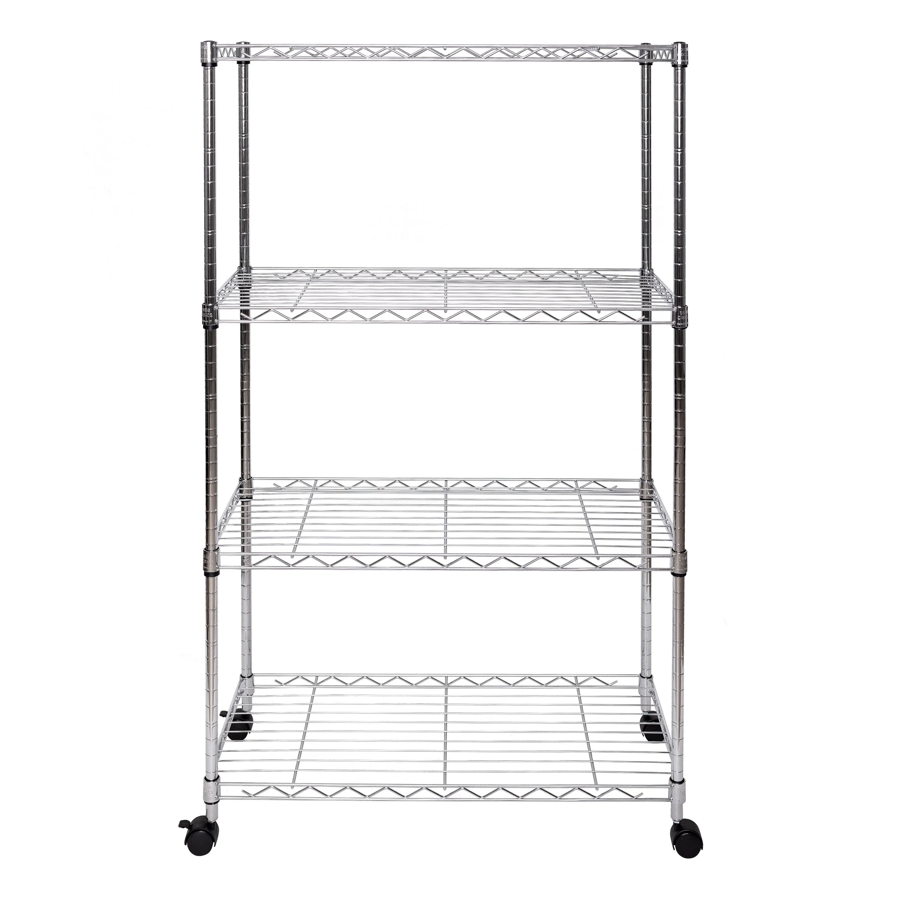 Seville Classics 4-Tier Steel Wire Shelving with Wheels, 30" W x 14" D x 48" H
