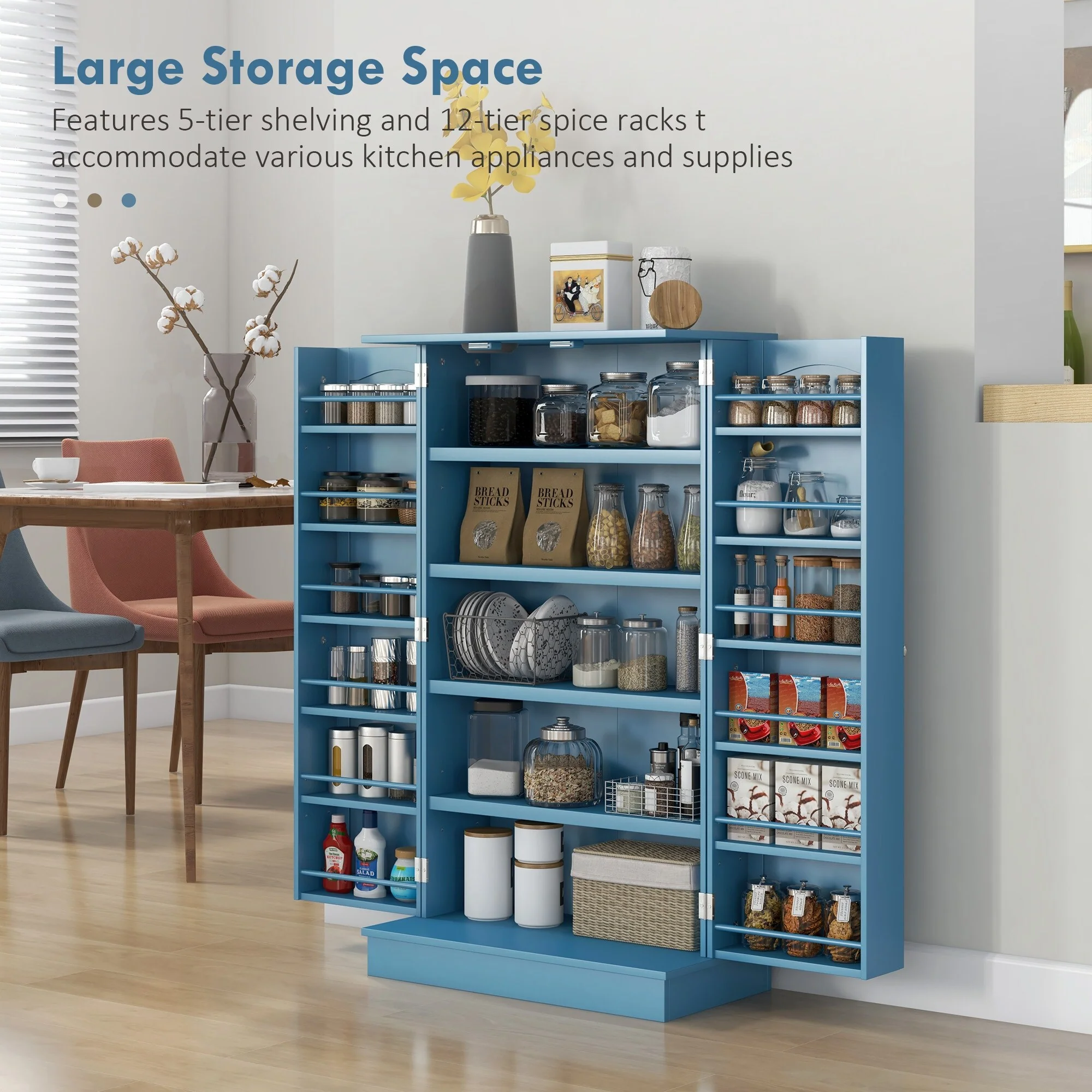 HOMCOM 41" Kitchen Pantry, Modern 2-Door Kitchen Storage Cabinet with 5-tier Shelving, 12 Spice Racks and Adjustable Shelves