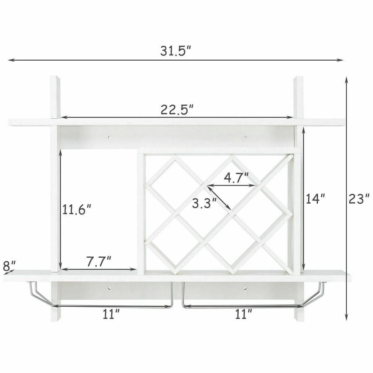Wall Mount Wine Rack Organizer with Glass Holder Storage Shelf
