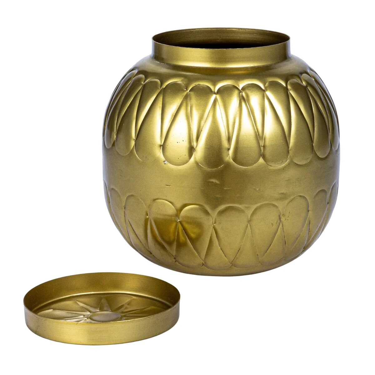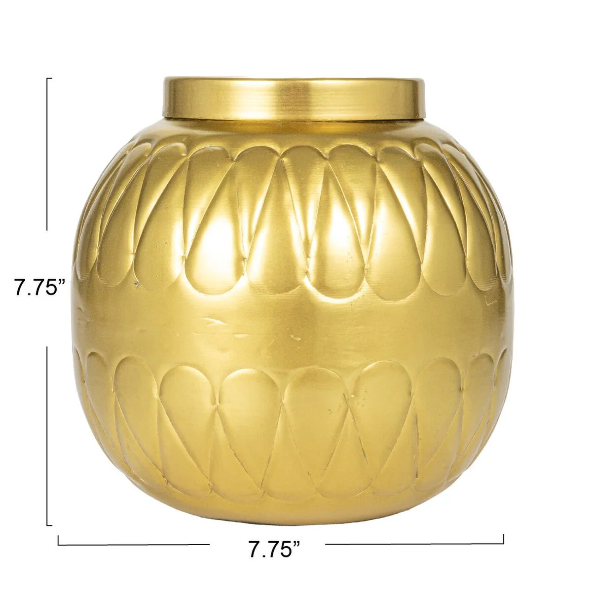 Decorative Embossed Metal Container - 7.8"L x 7.8"W x 7.8"H