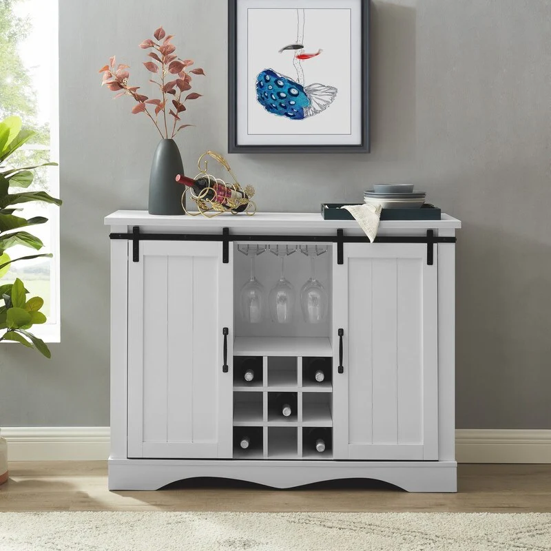 Rustic 47-inch Bar Cabinet with Sliding Barn Door