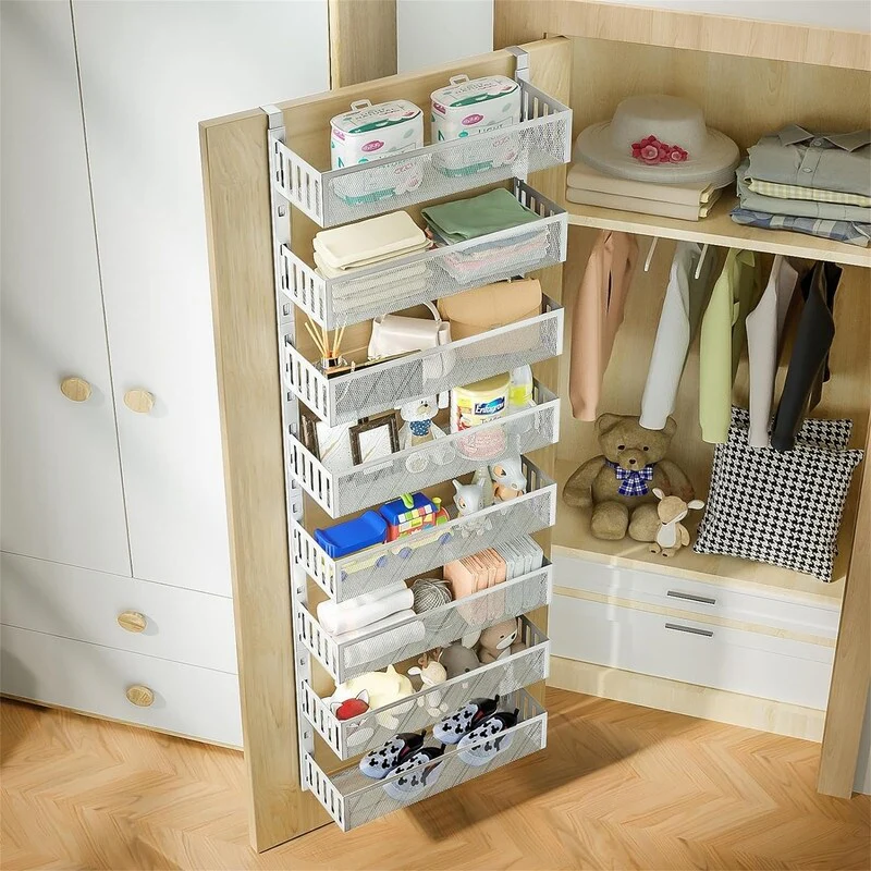 6Tier Over The Door Pantry Organizer with Mesh Baskets Adjustable