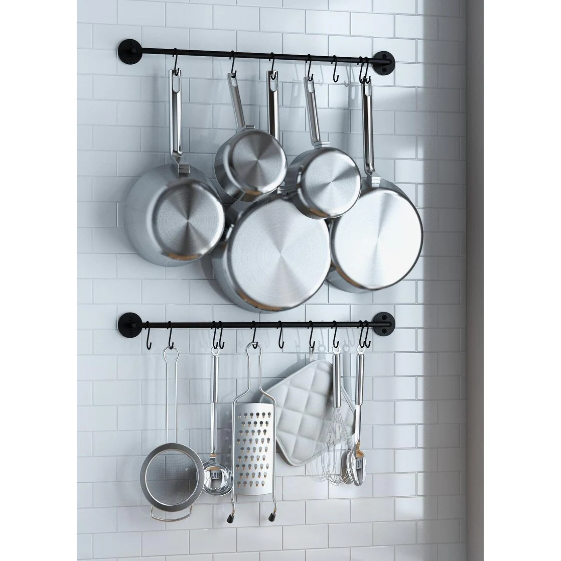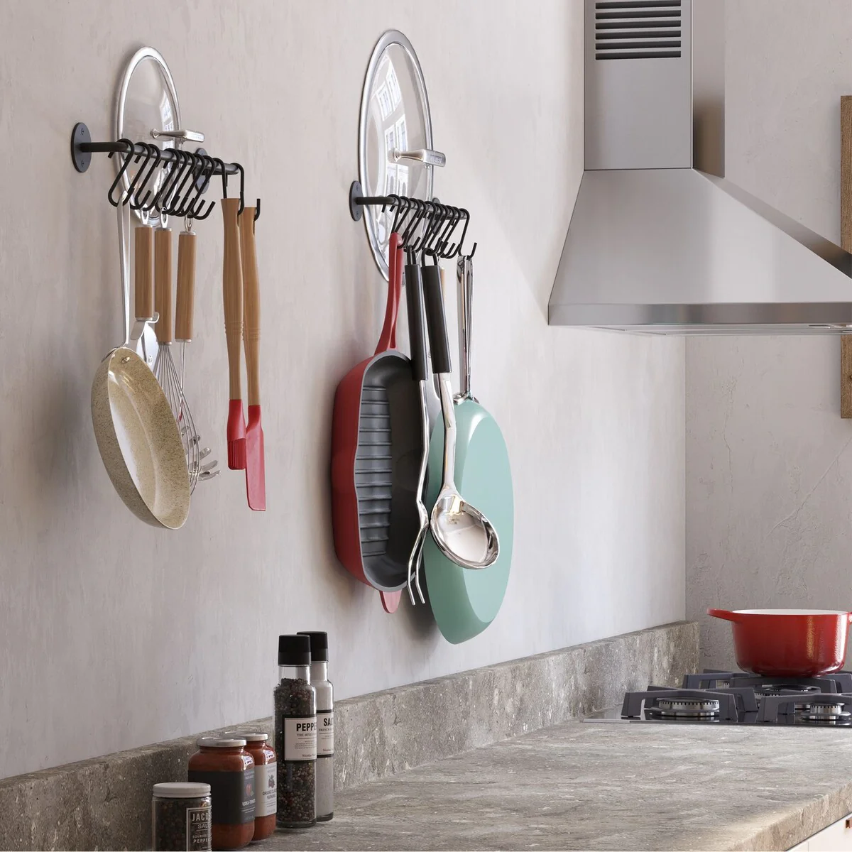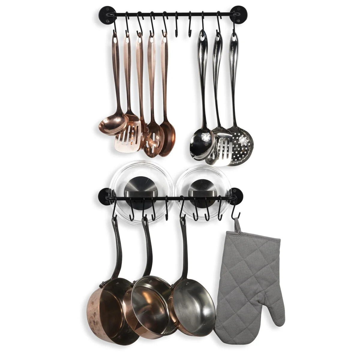 Wallniture Cucina Kitchen Utensil Holder with 20 S Hooks, Pot Racks, Black (Set of 2)