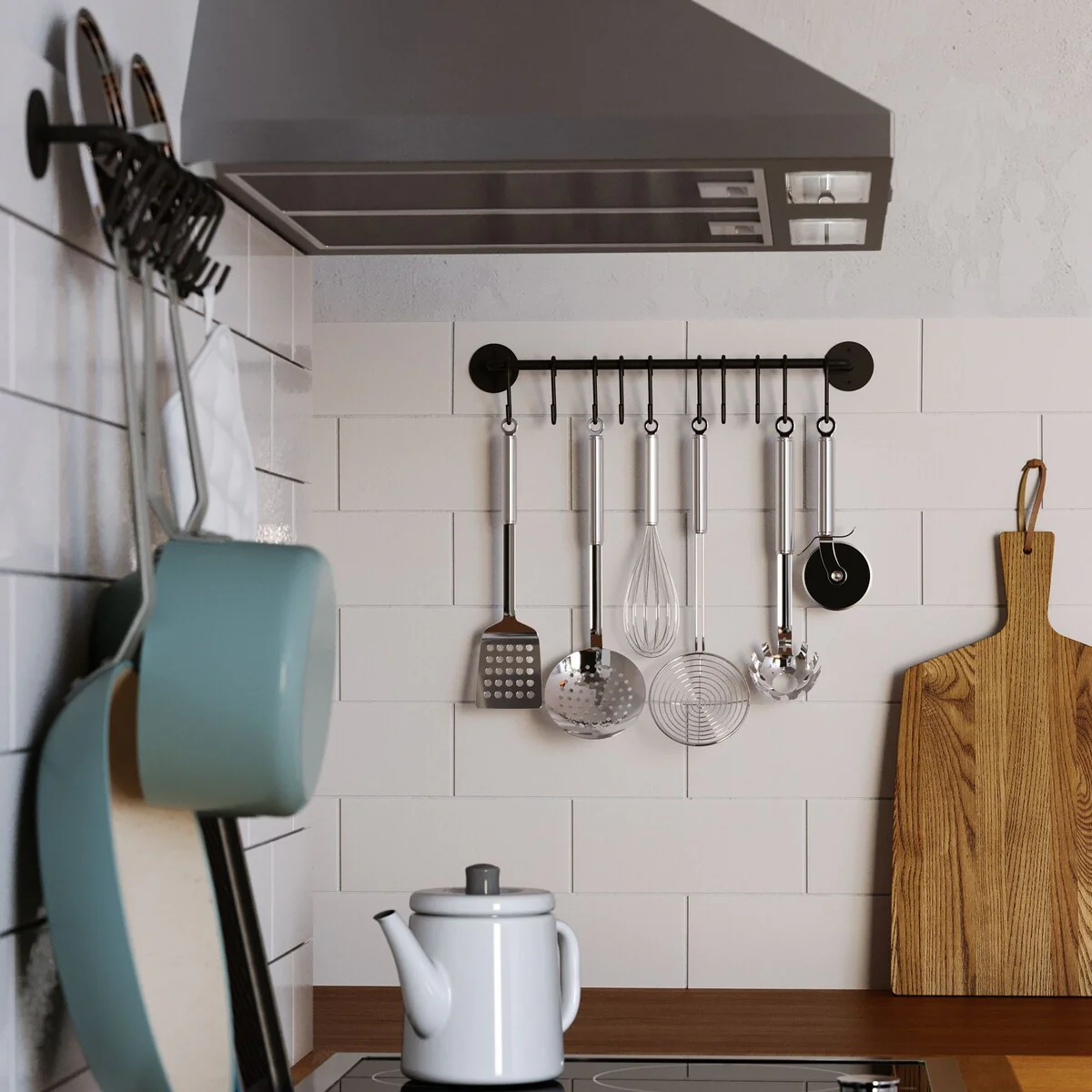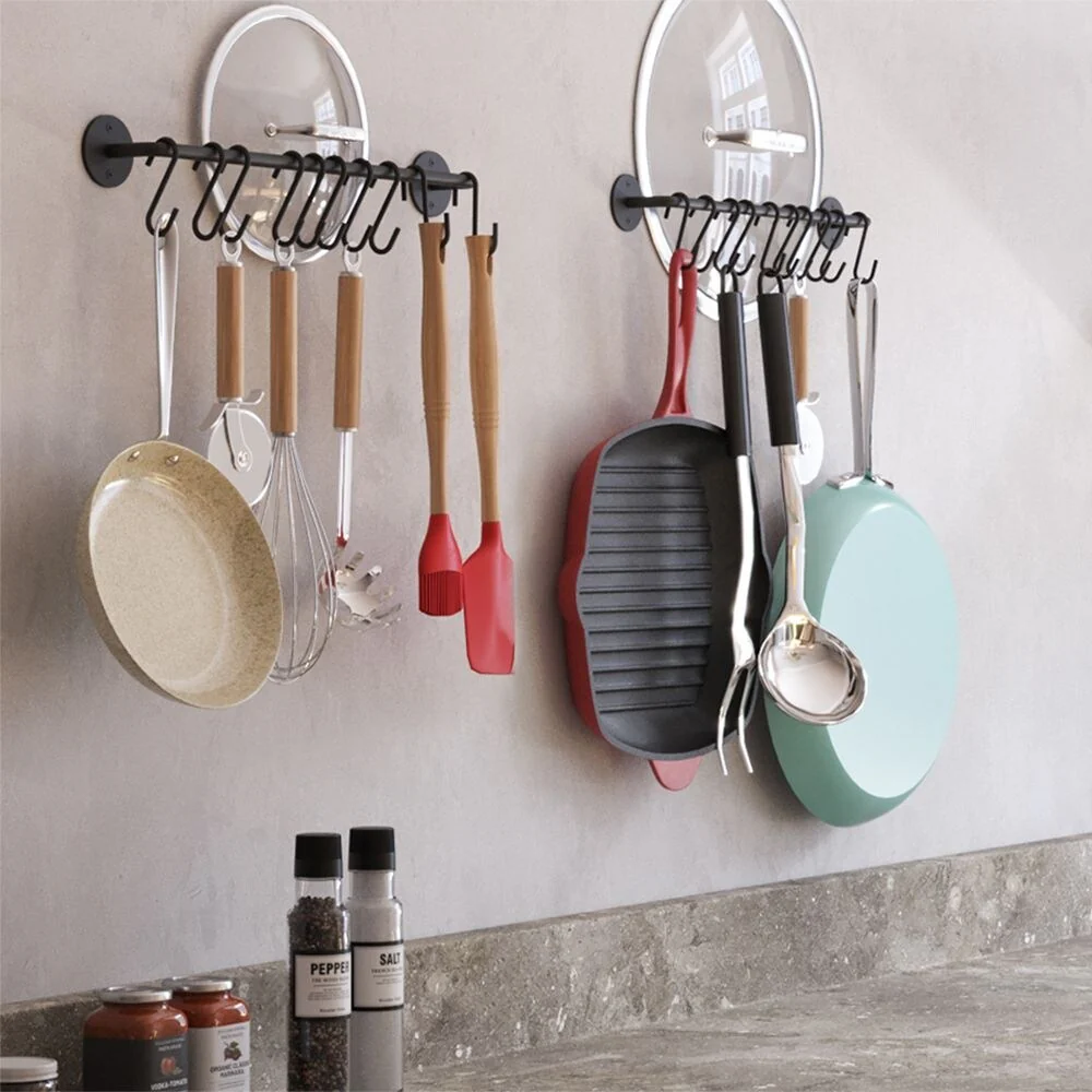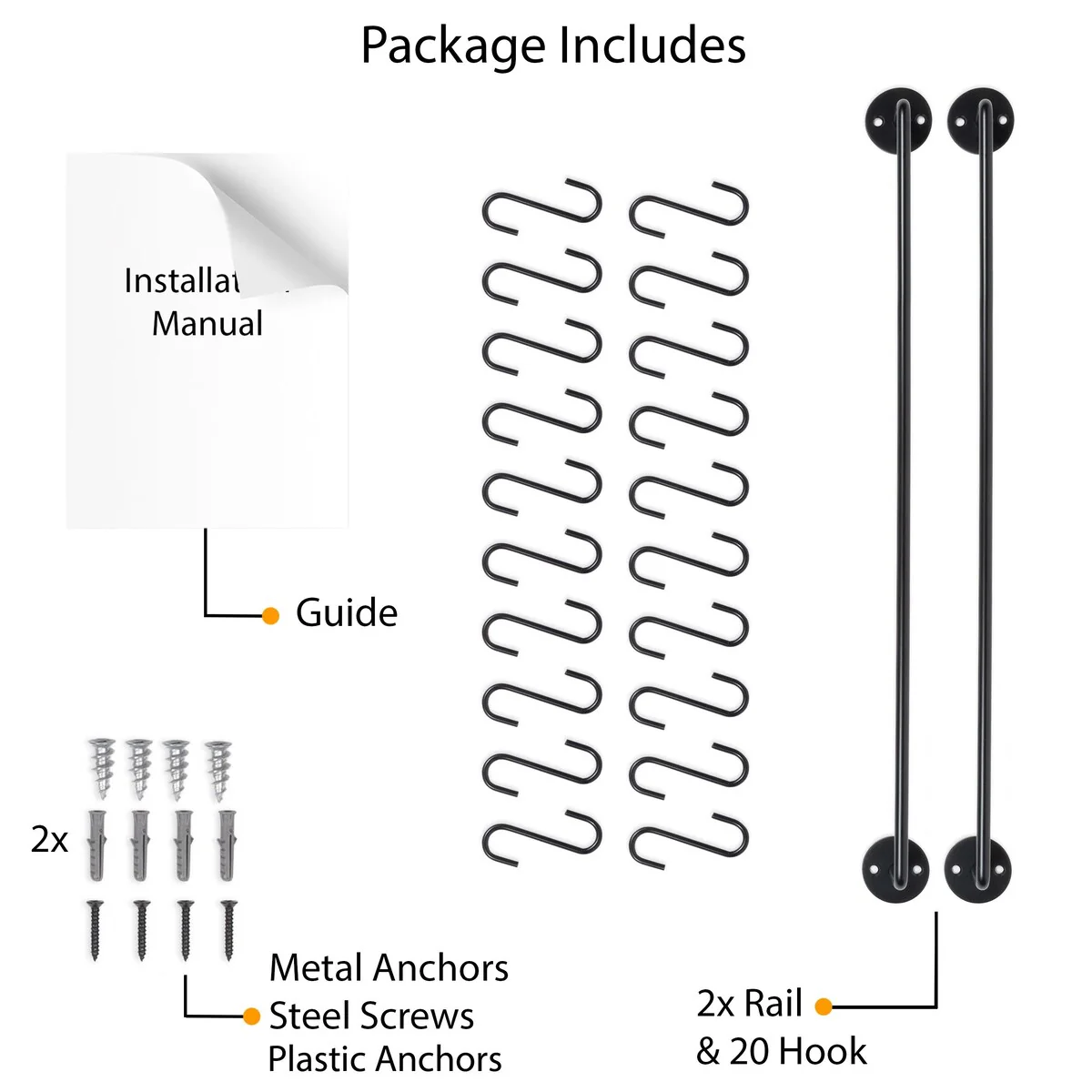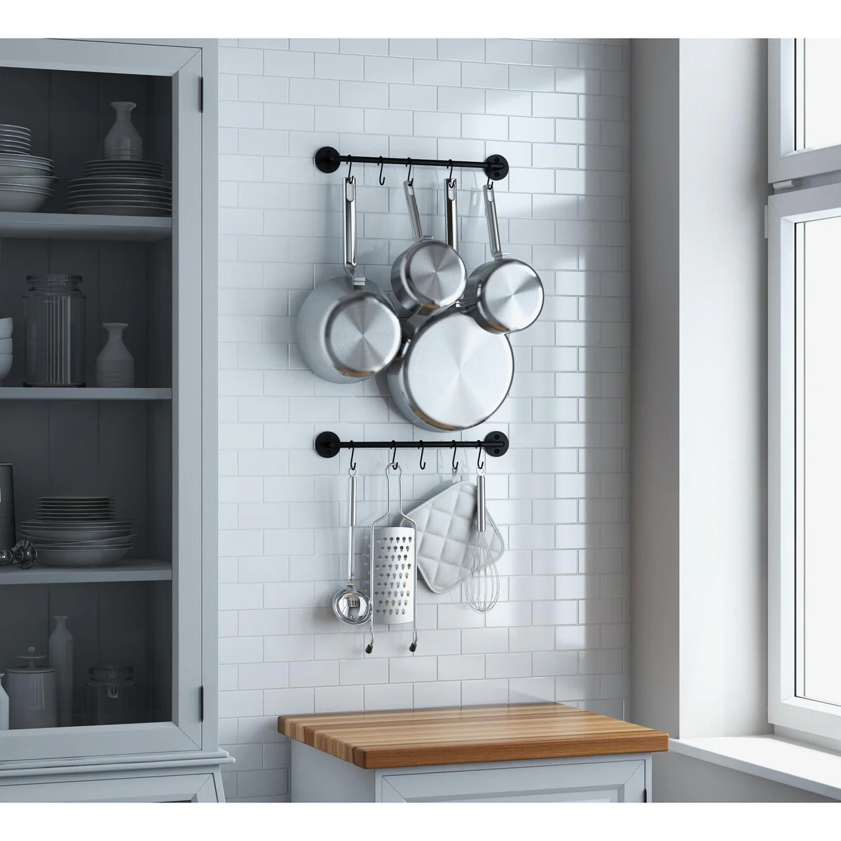 Wallniture Cucina Kitchen Utensil Holder with 20 S Hooks, Pot Racks, Black (Set of 2)