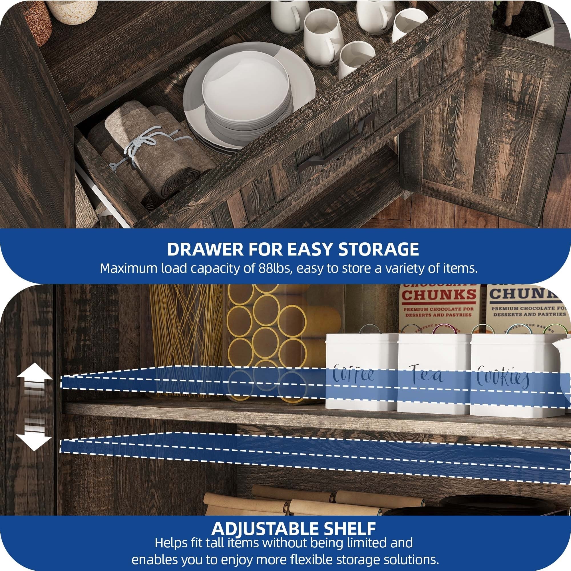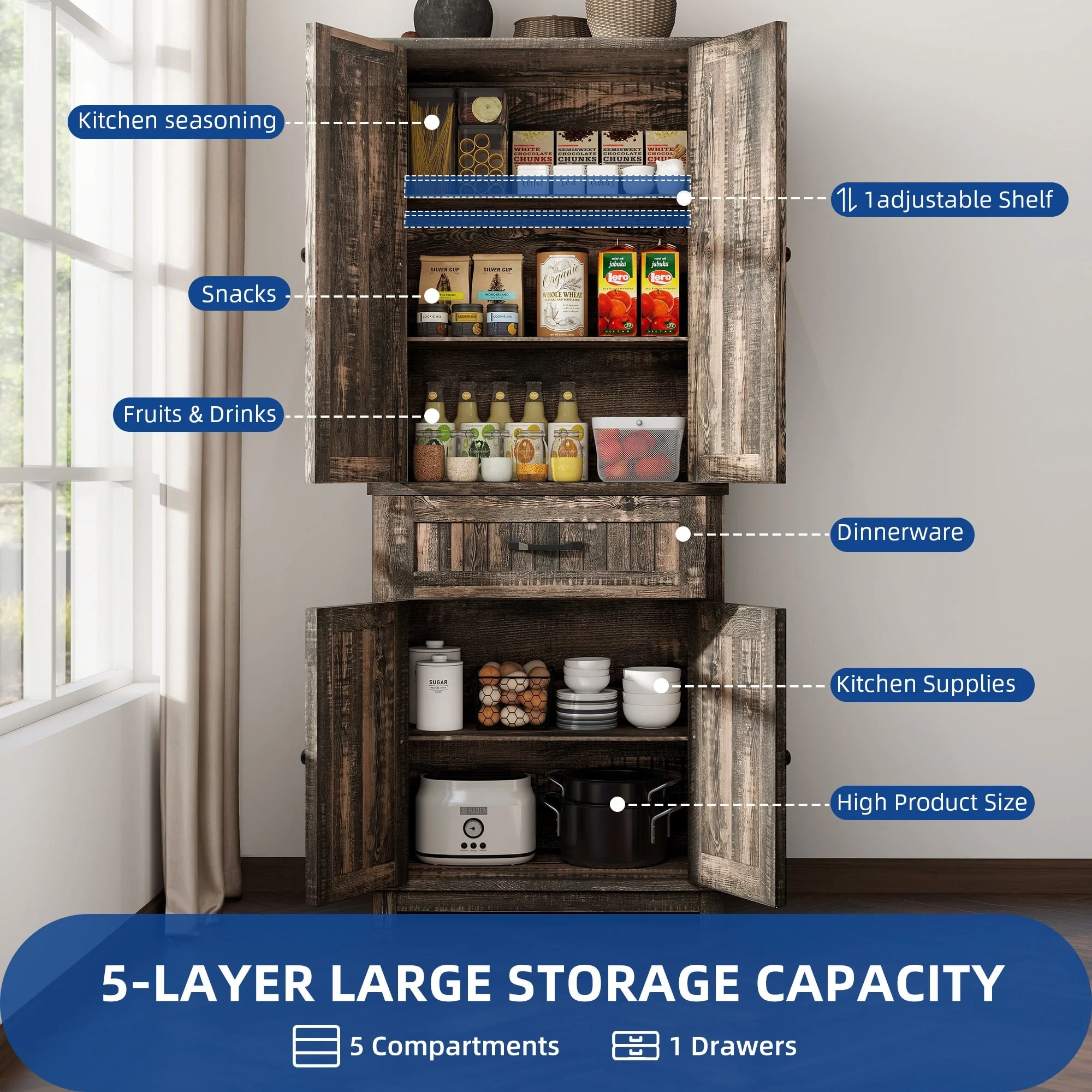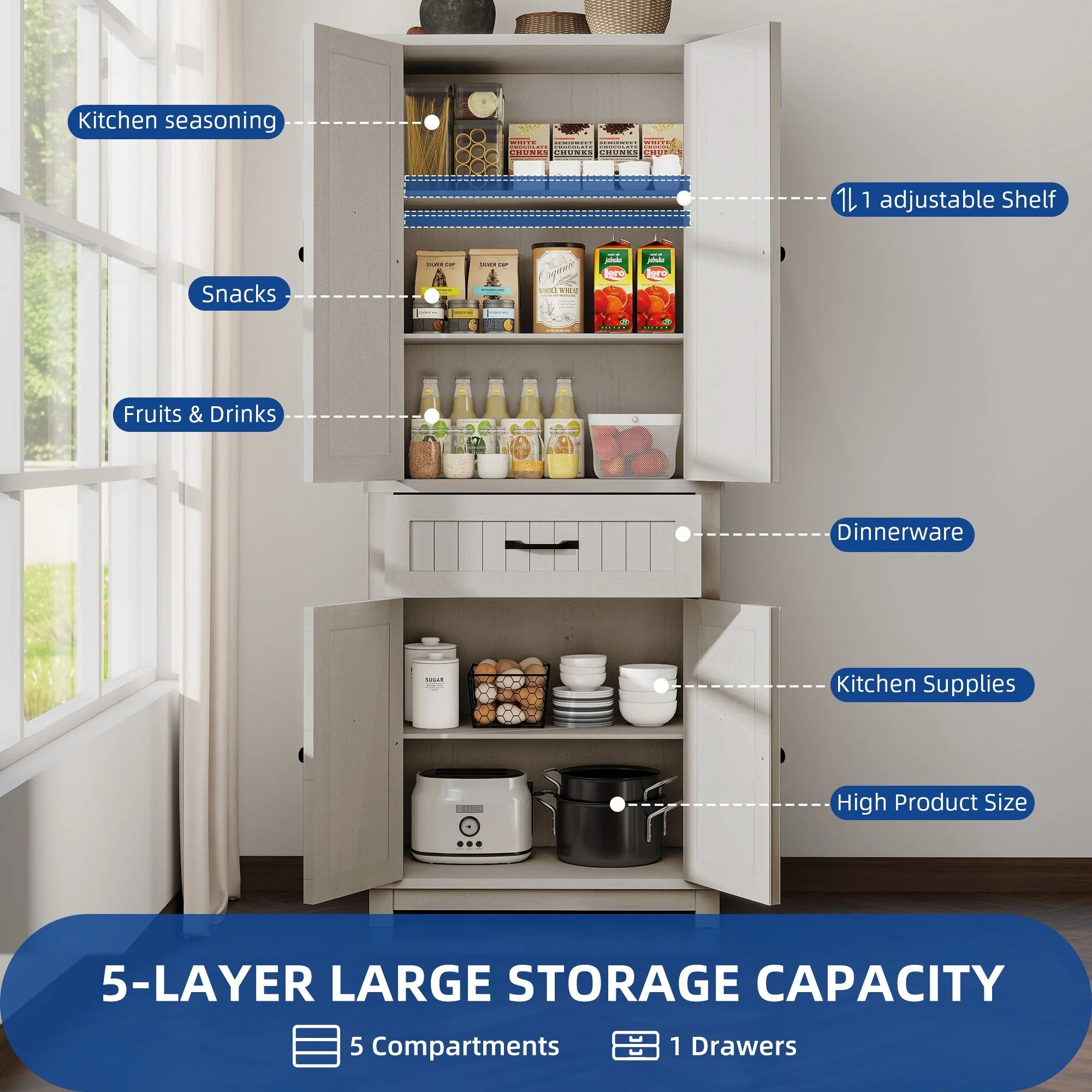 Moasis 72" Tall Farmhouse Kitchen Pantry Storage Cabinet with Drawer and Adjustable Shelves