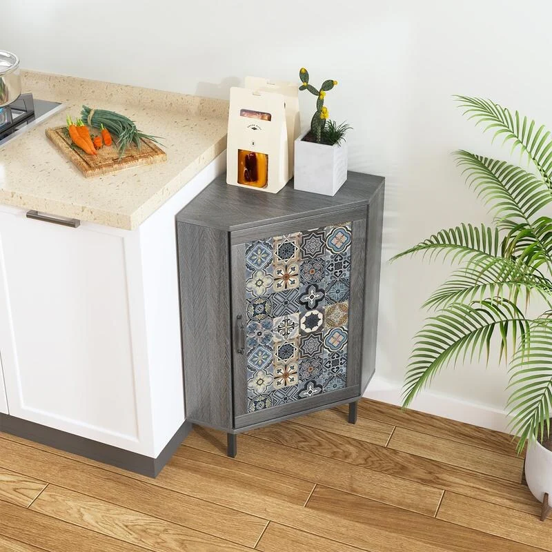 Mixoy Corner Storage Cabinet with Shelves,Small Floor Freestanding Narrow Cabinet Organizer with Blue Floral Patterns Door - N/A