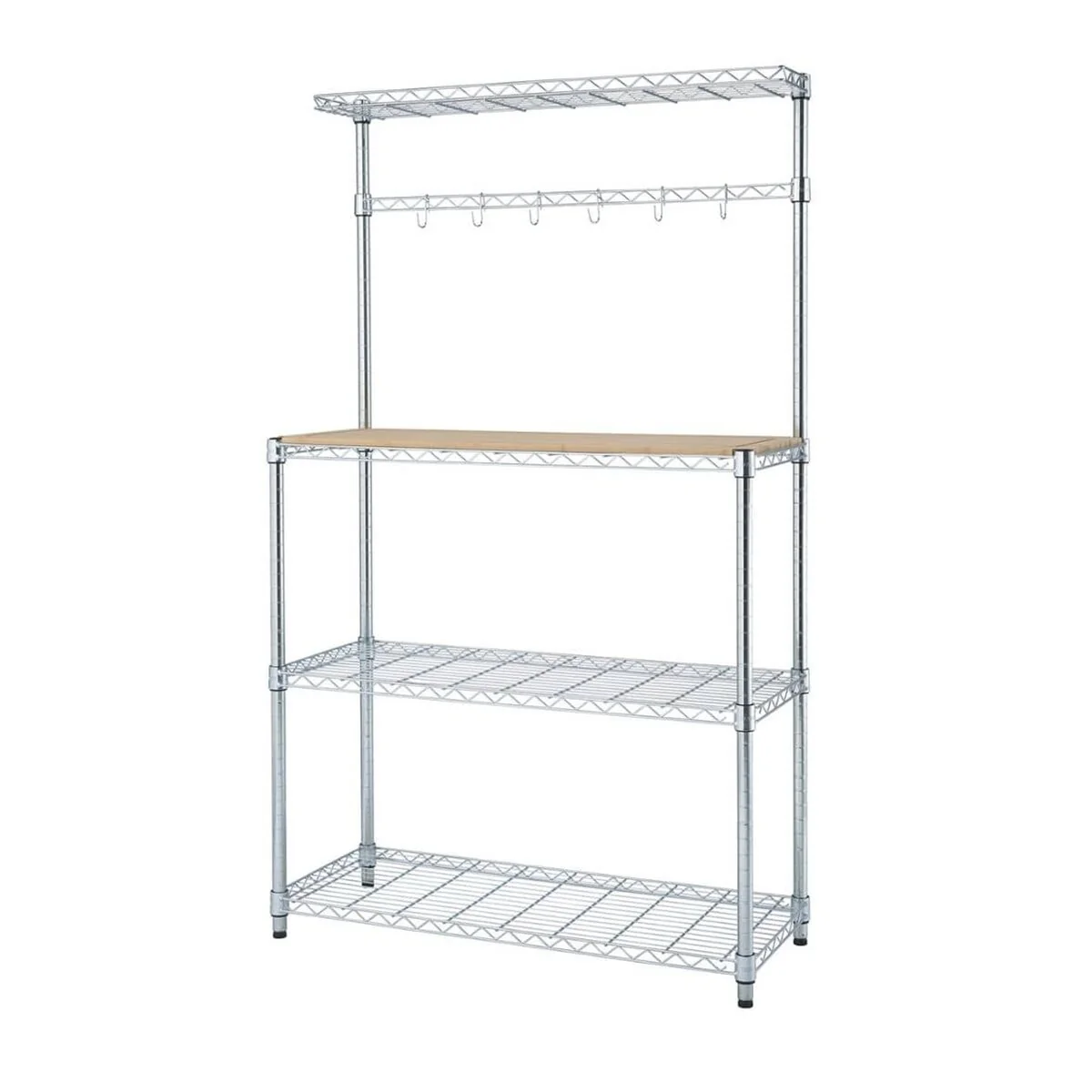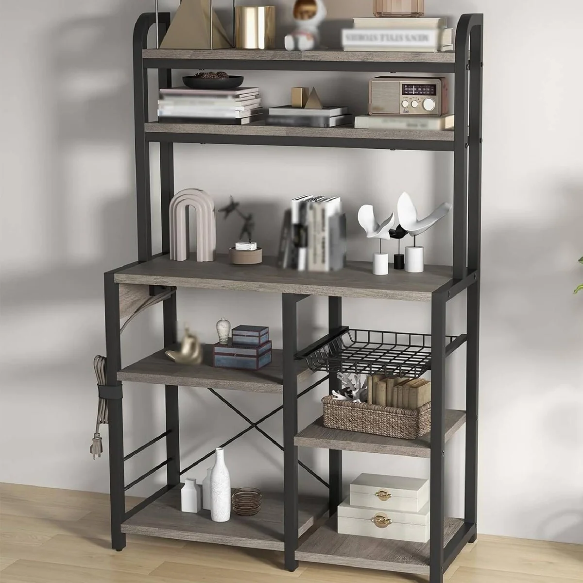 Kitchen Bakers Rack with Power Outlet, Wire Basket