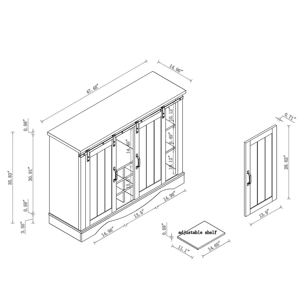 Moasis 47"Farmhouse Coffee Bar Cabinet with Floating Shelf - 15.75"D x 47.24"W x 33.86"H