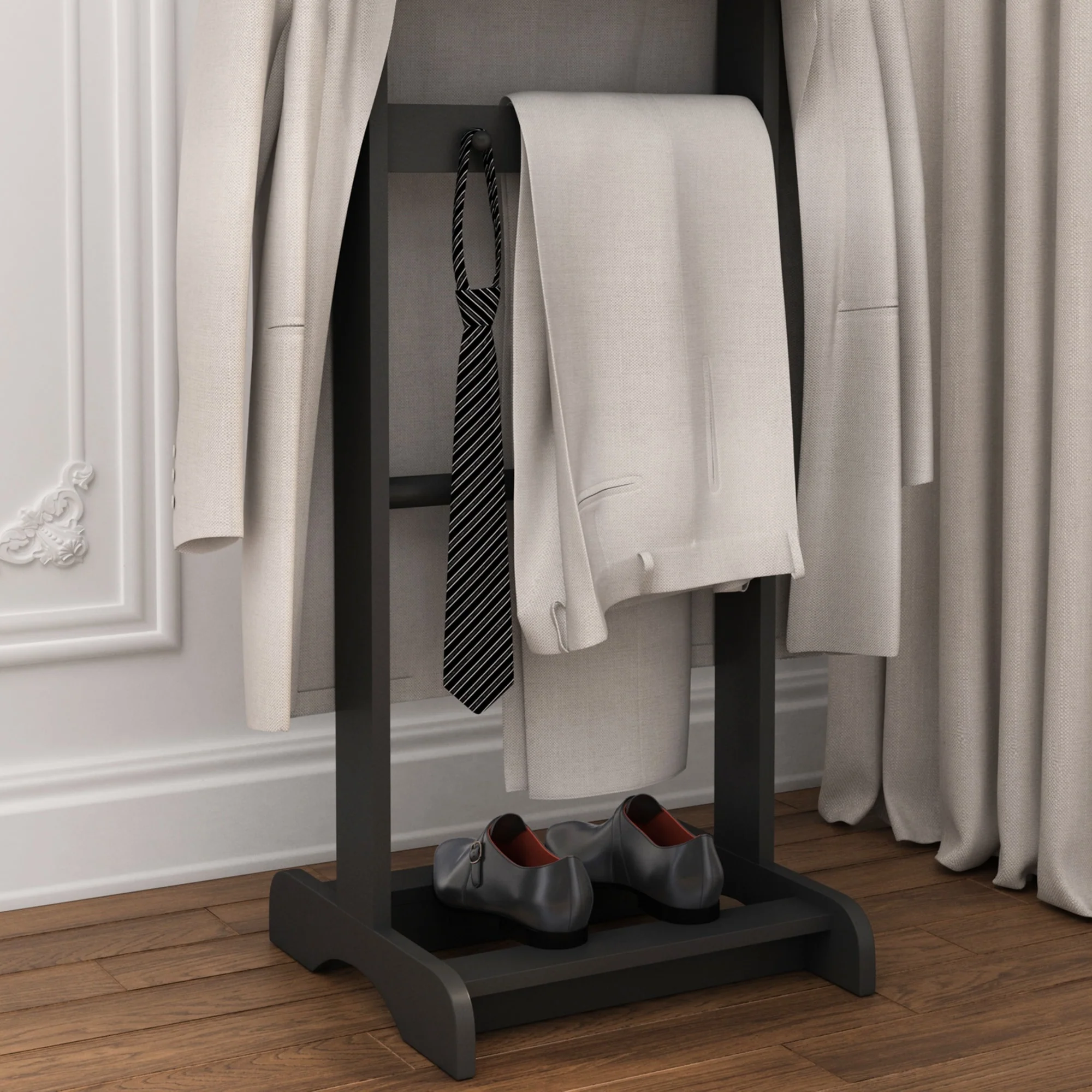 Accent Portable Garment Rack, Clothes Valet Stand with Storage Organizer, for Bedroom, Living room