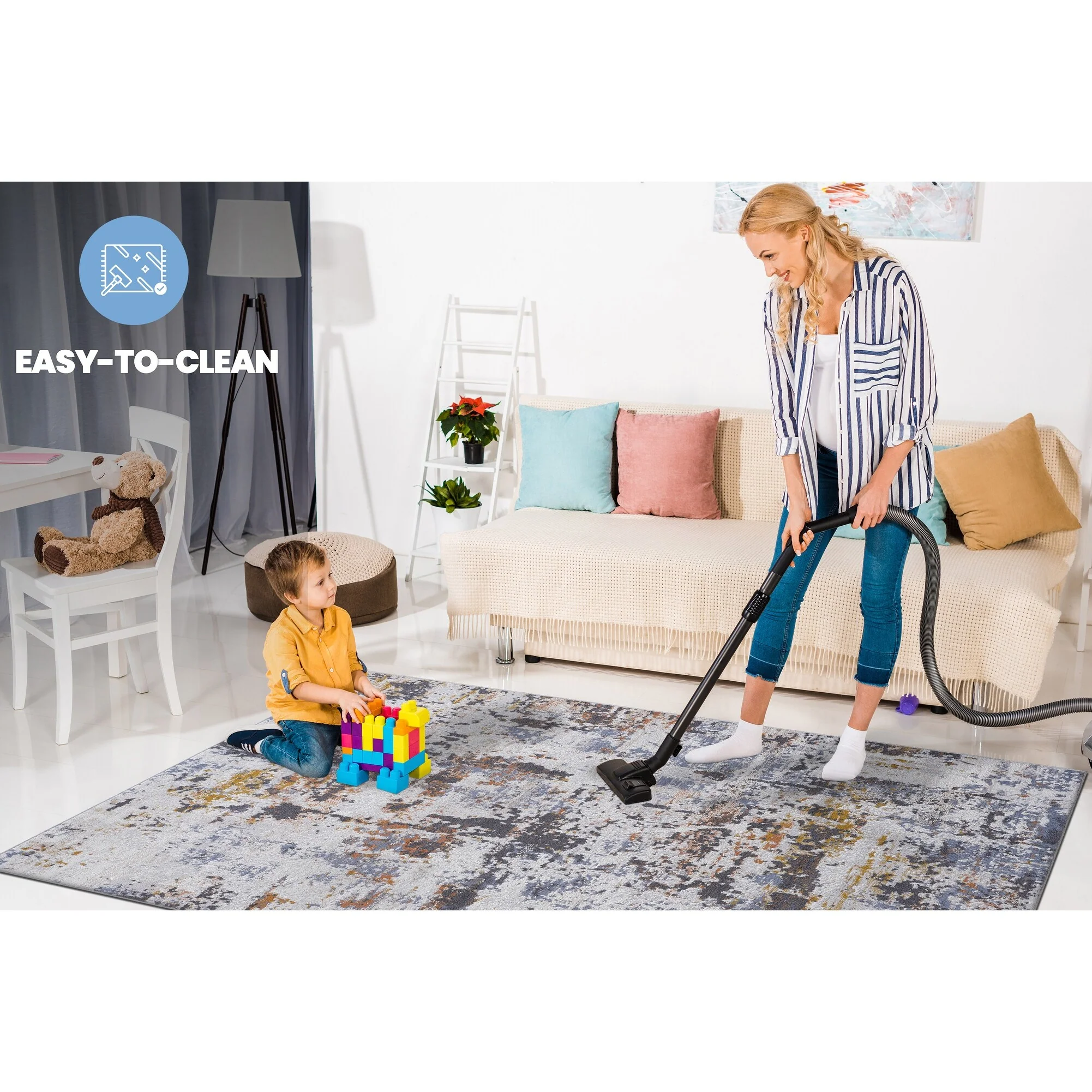 Area Rugs for Living Room,Non Slip Backing Printed Rugs for Bedroom,Folable Machine Washable Area Rug - 6' x 7'