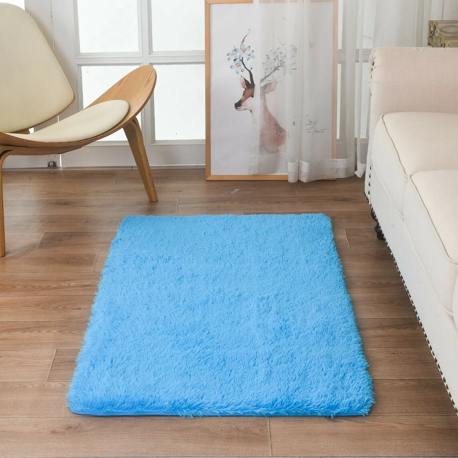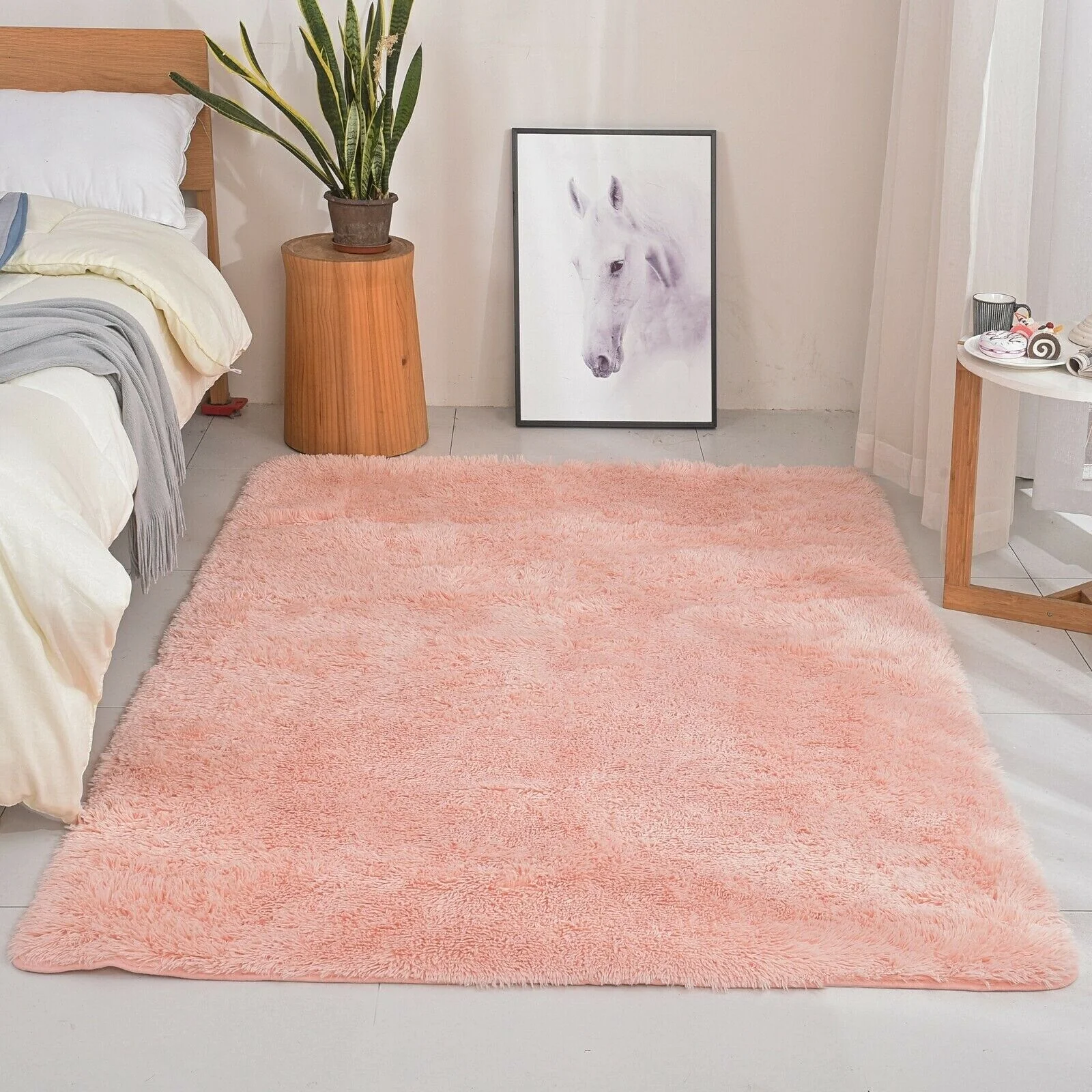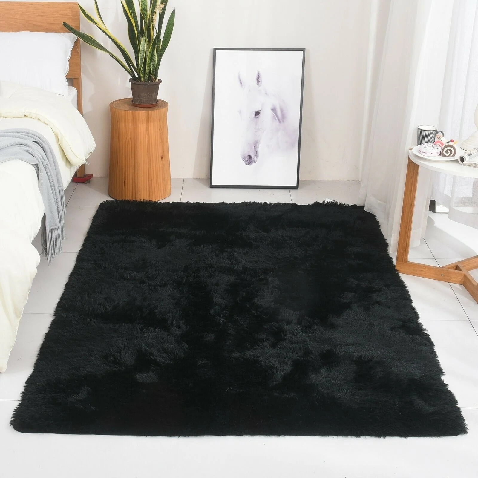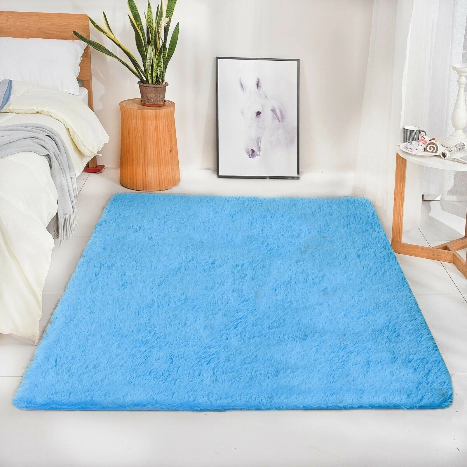Modern Soft PV Plush Furry Area Rug - Non-Slip Fuzzy Shag - Floor Carpet for Bedroom, Living Room, Nursery - Solid Color