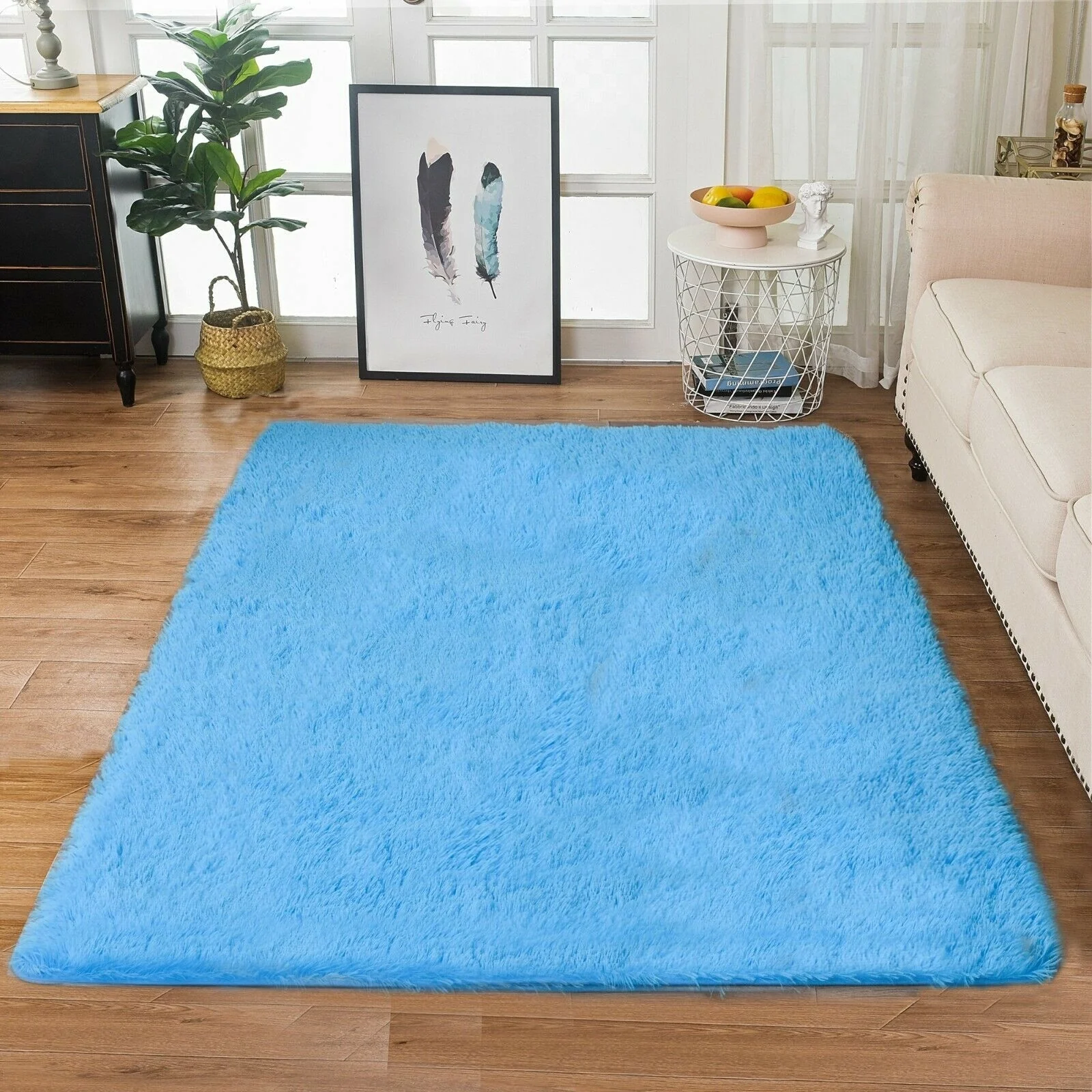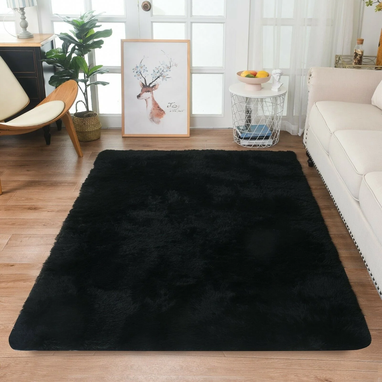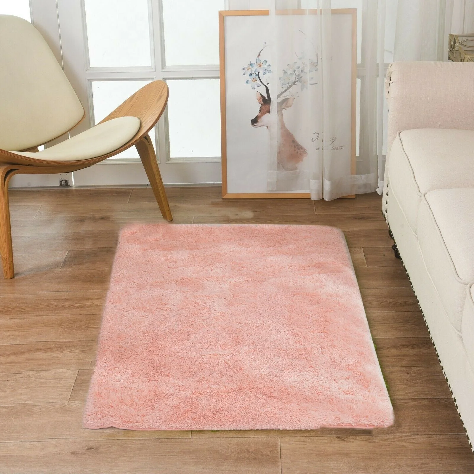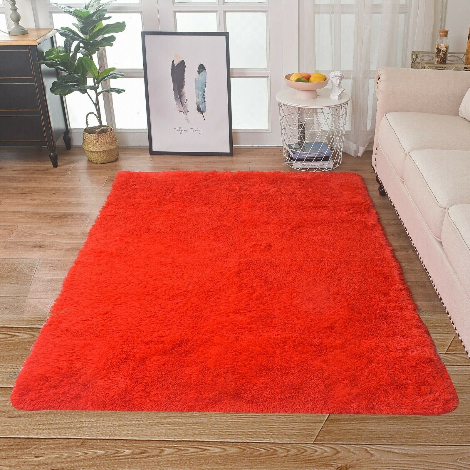 Modern Soft PV Plush Furry Area Rug - Non-Slip Fuzzy Shag - Floor Carpet for Bedroom, Living Room, Nursery - Solid Color