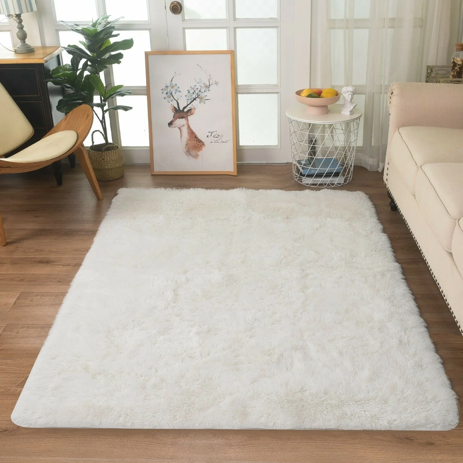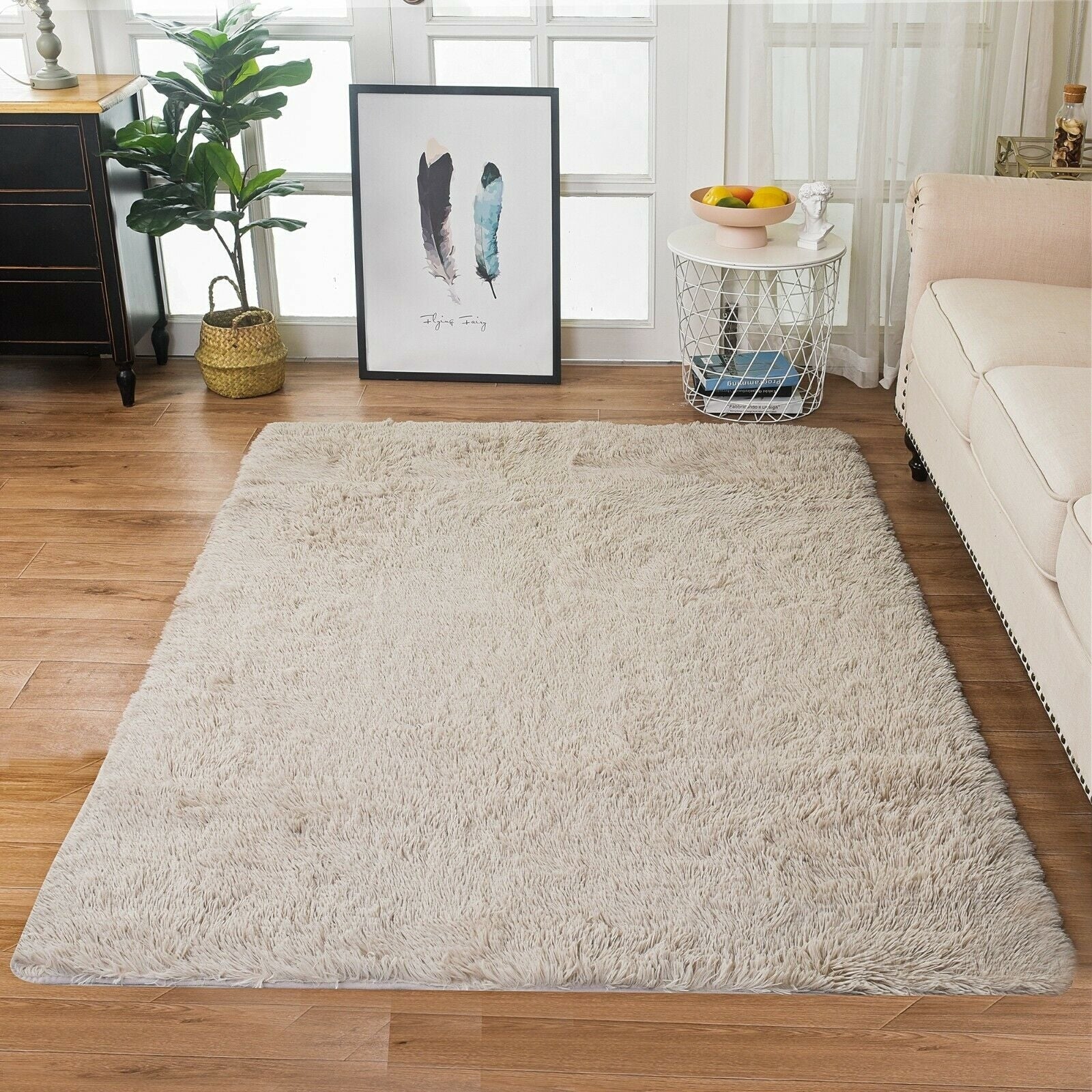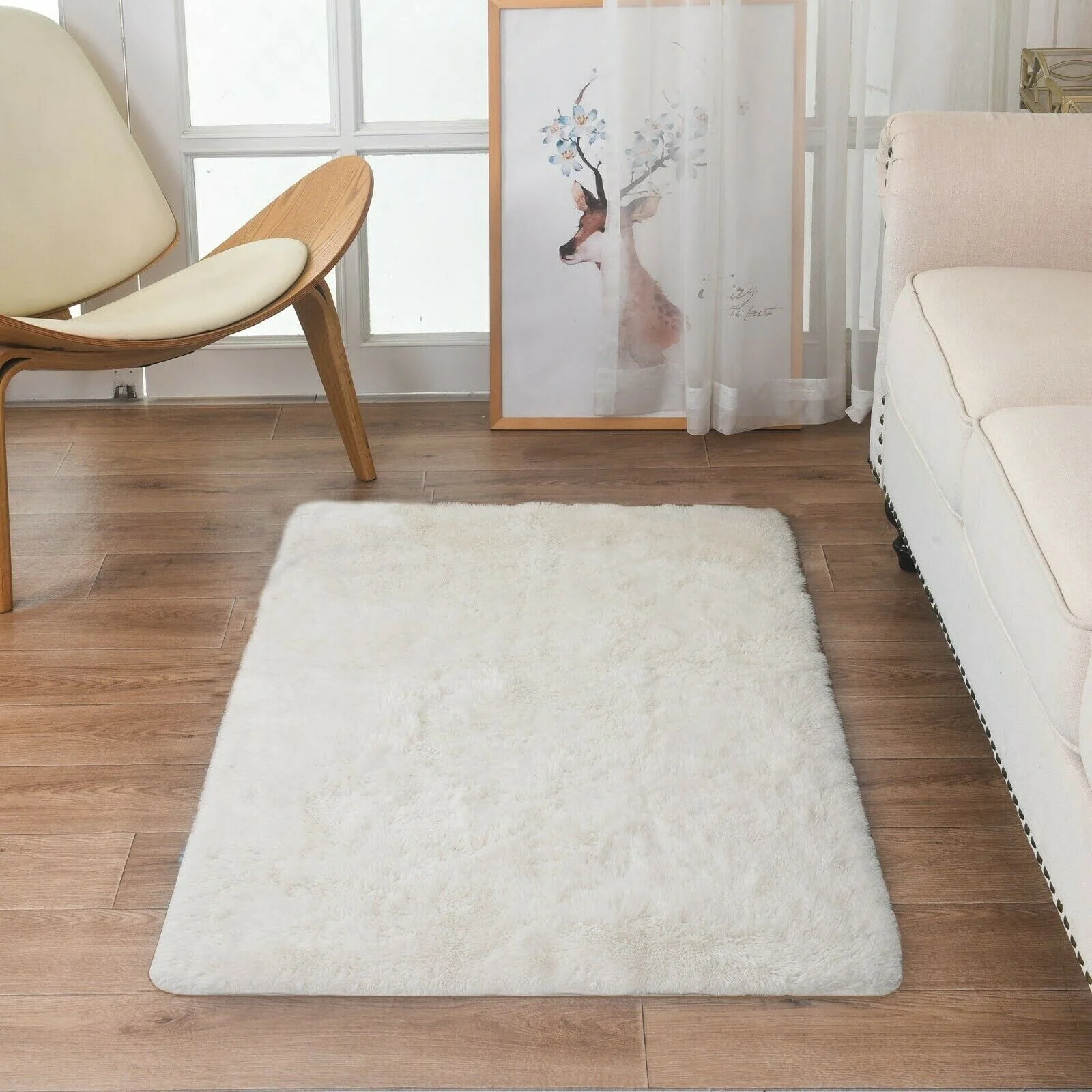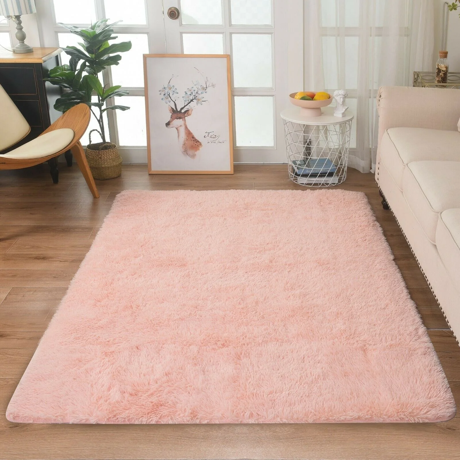 Modern Soft PV Plush Furry Area Rug - Non-Slip Fuzzy Shag - Floor Carpet for Bedroom, Living Room, Nursery - Solid Color