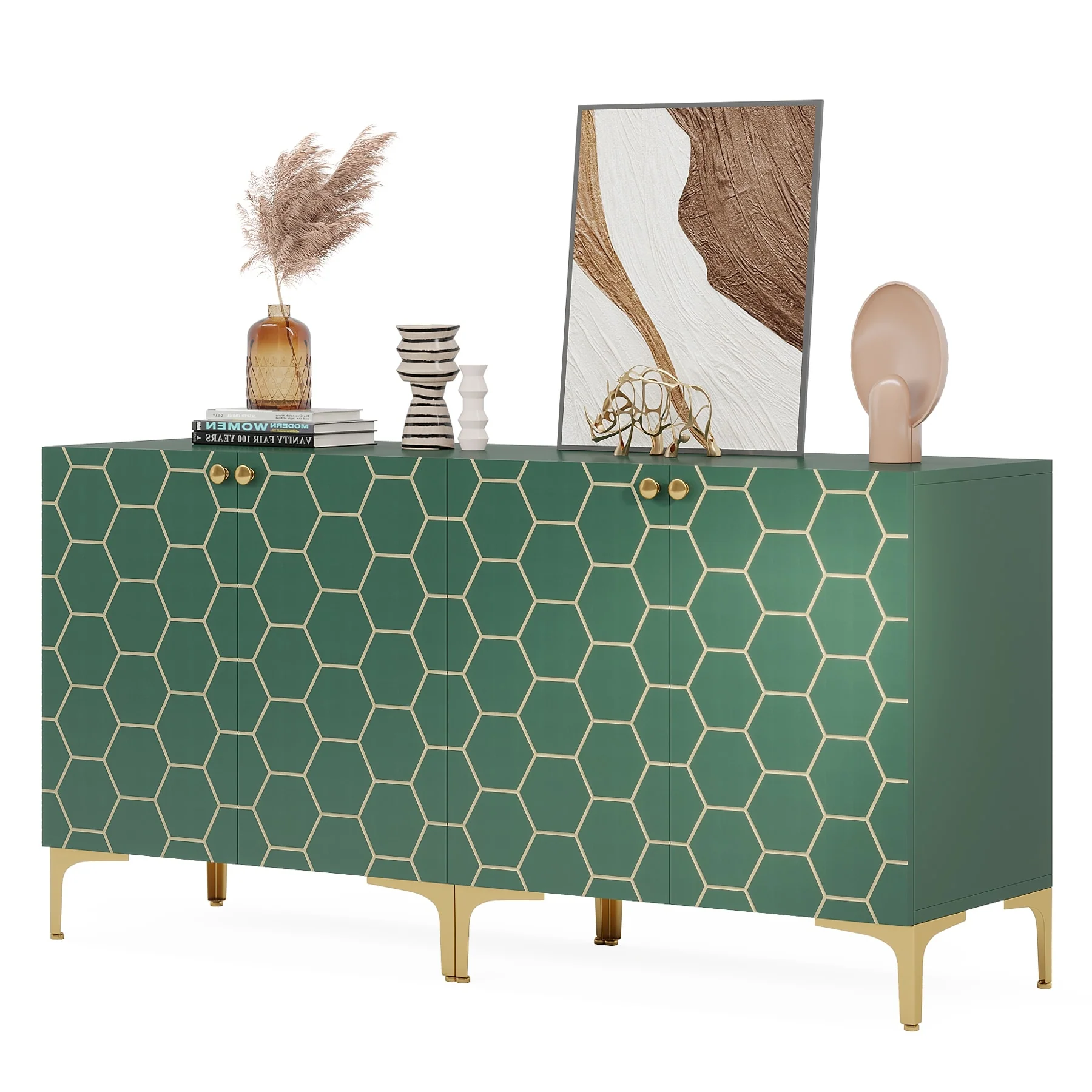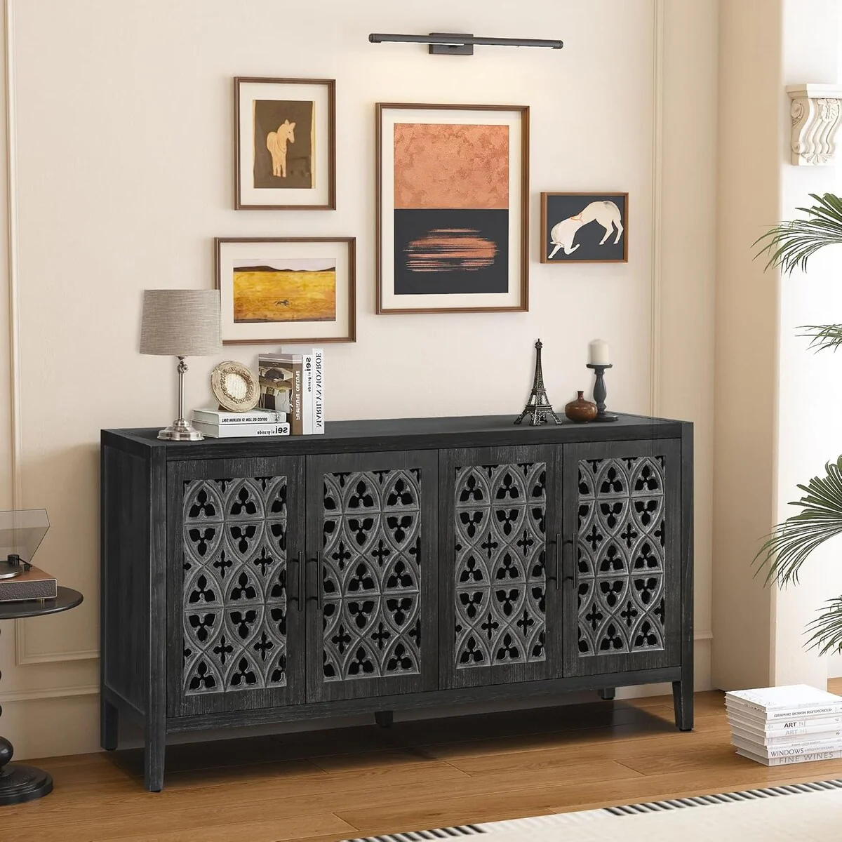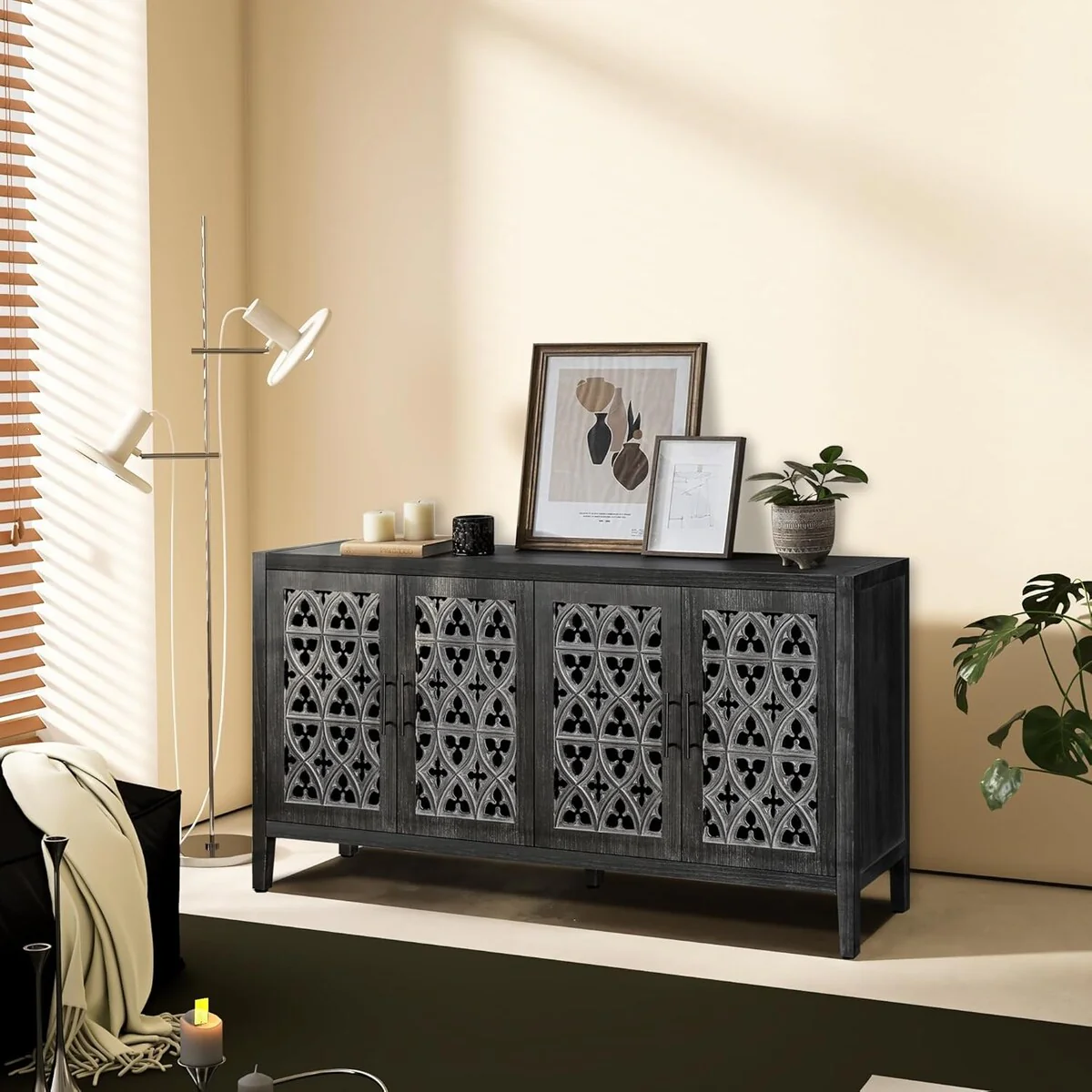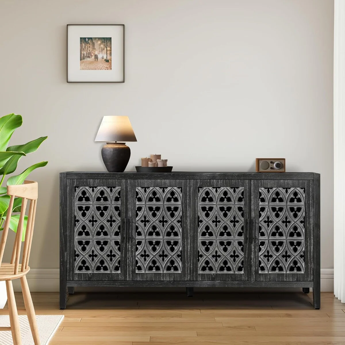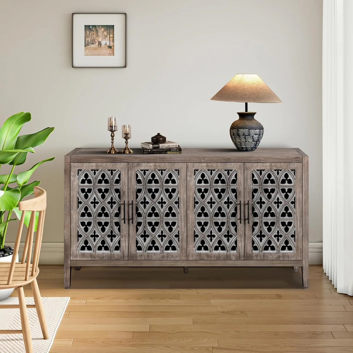 Roomfitters Carved Flower Door Large Storage Cabinet with Metal Handle - Perfect for Living Room, Kitchen, Entryway