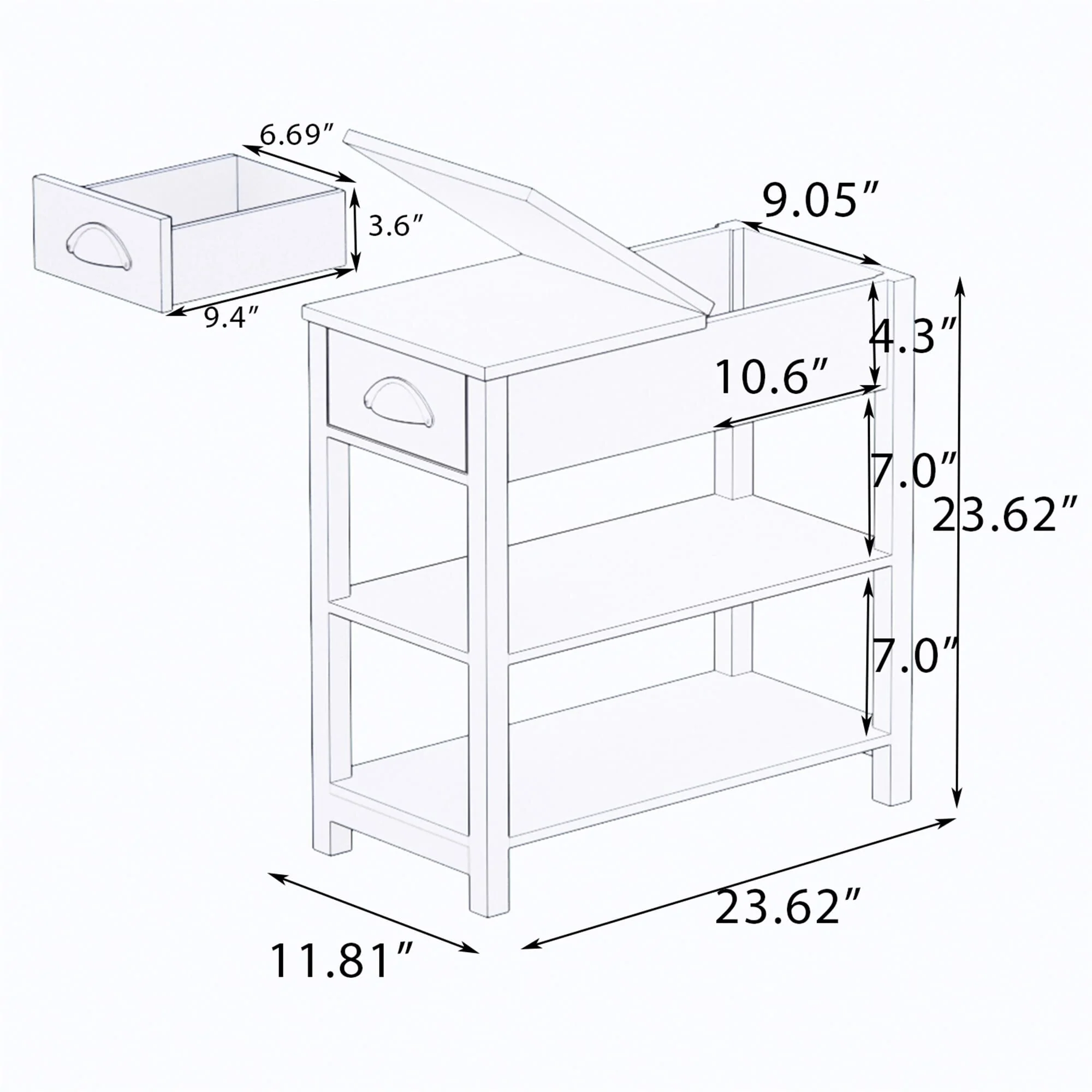 Narrow Flip Top Side Table with Drawer End Table with 2-Tiers Open Storage Shelves Sofa Table for Living Room,Bedroom