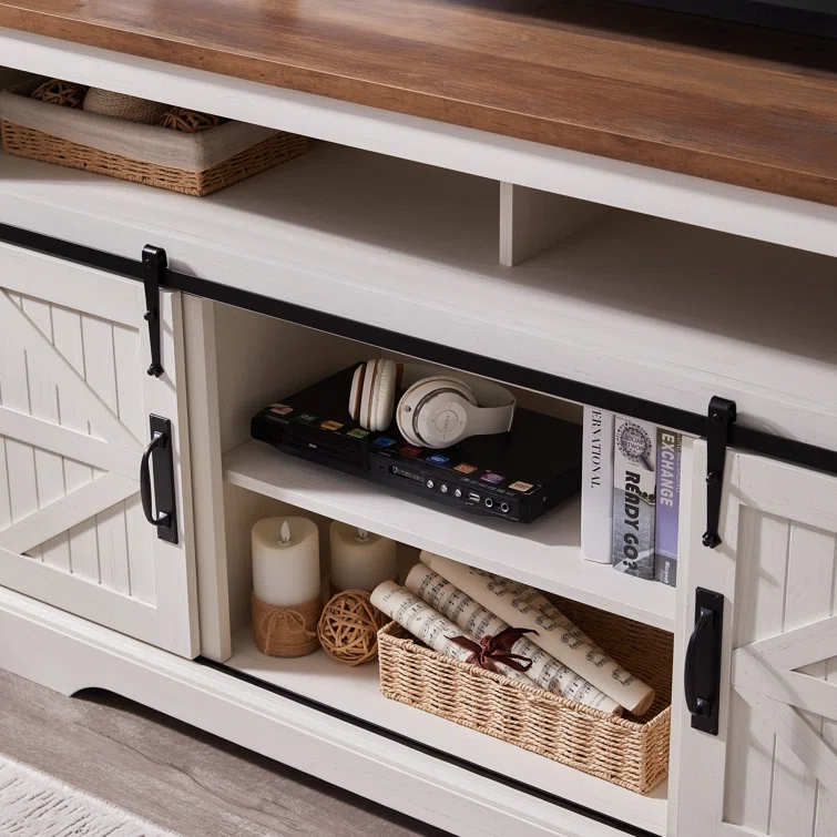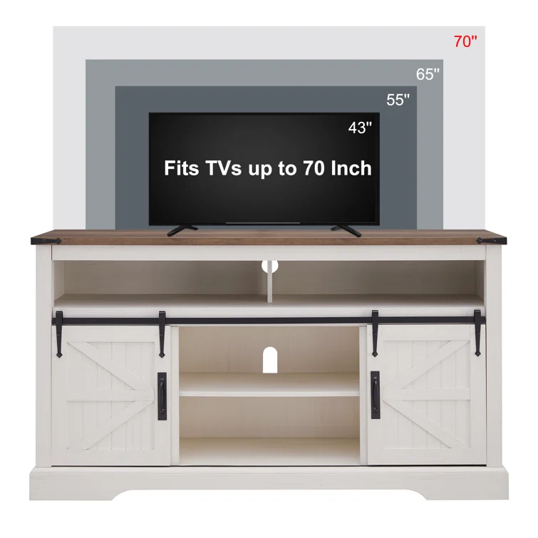 Lorraine Farmhouse TV Stand for 65+ Inch TV for Living Room, with Sliding Barn Door