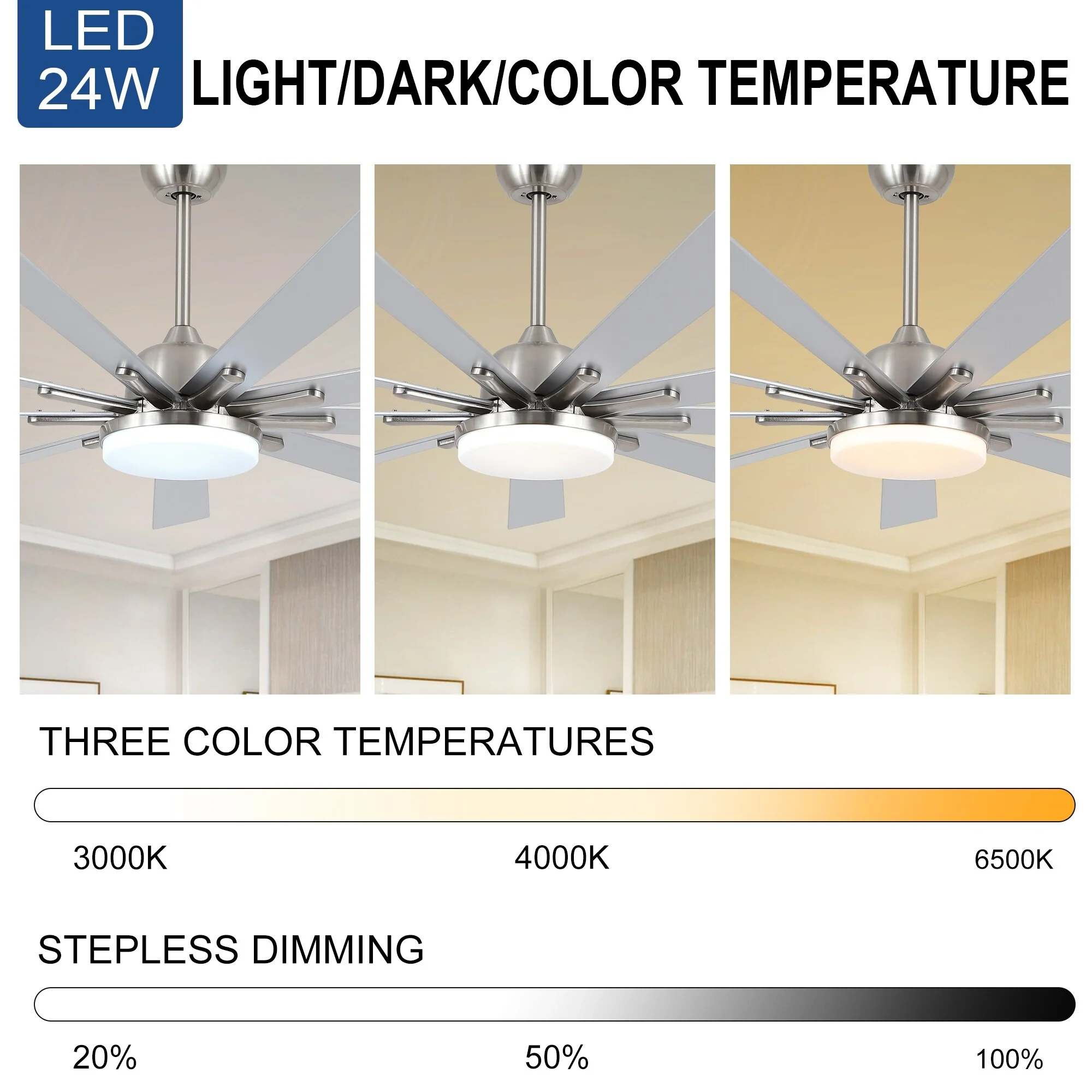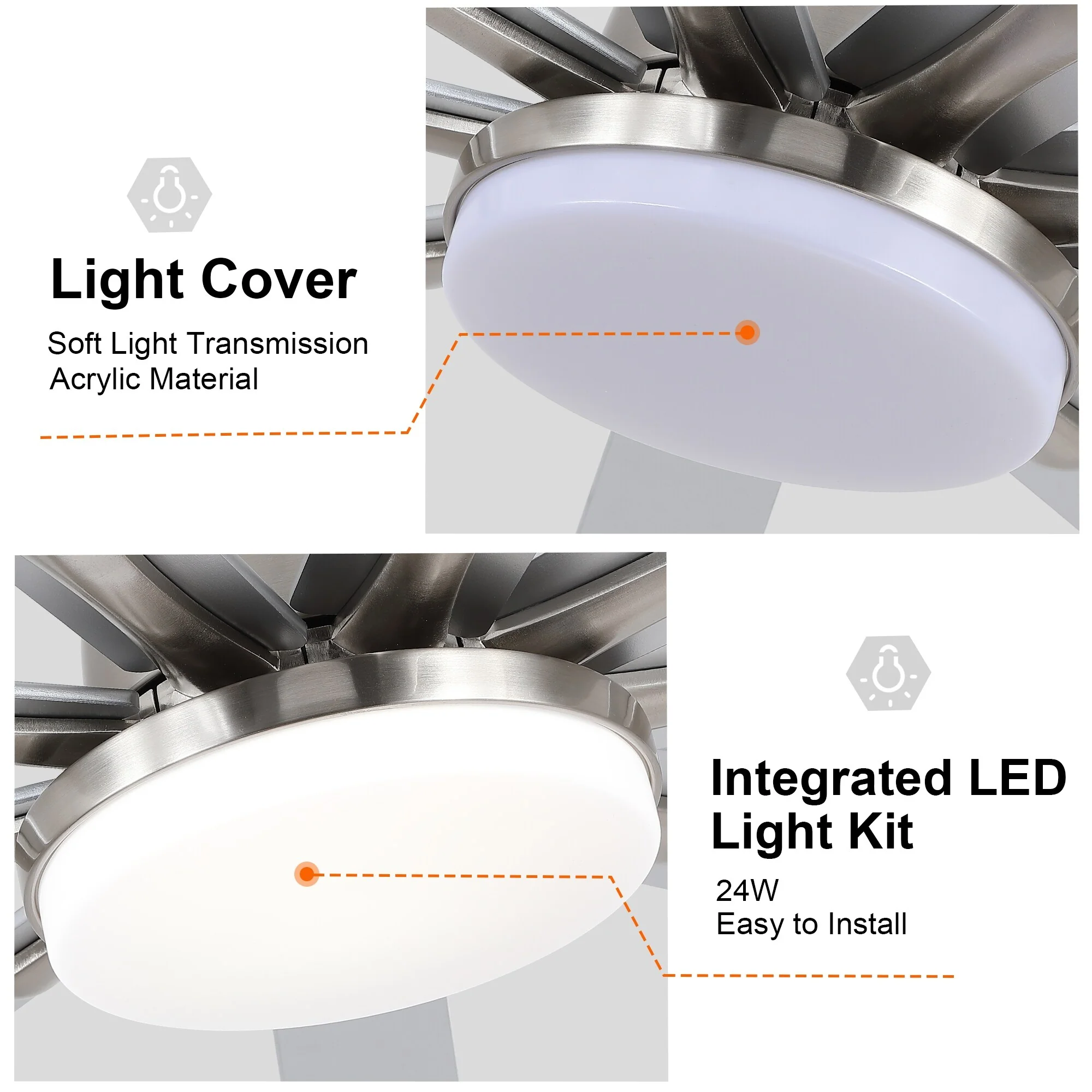Indoor/Outdoor Large Smart Ceiling Fan with Remote & App Control, 72 Inch Brushed Nickel Ceiling Fan Light for Living Room Patio