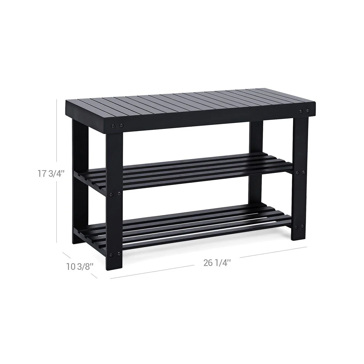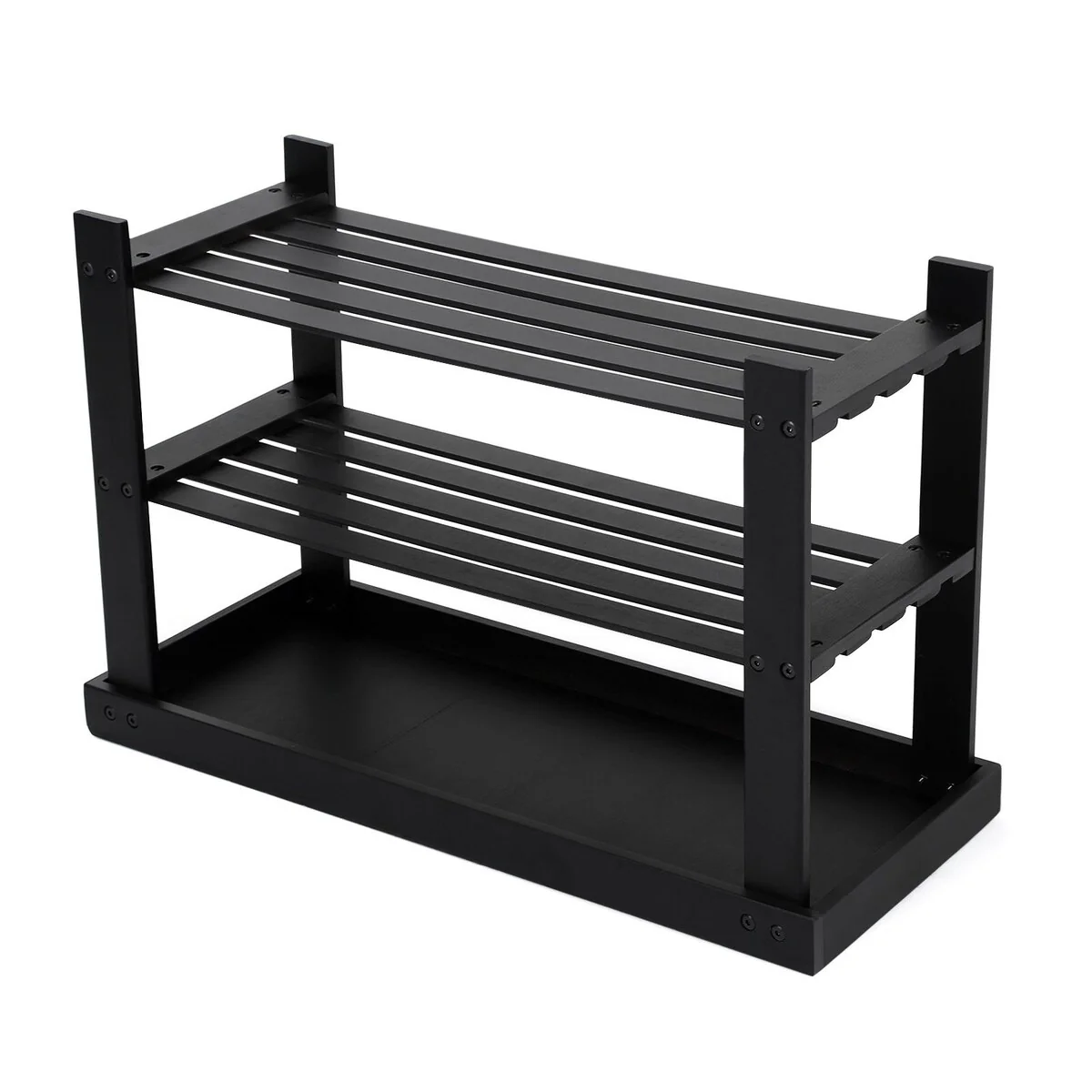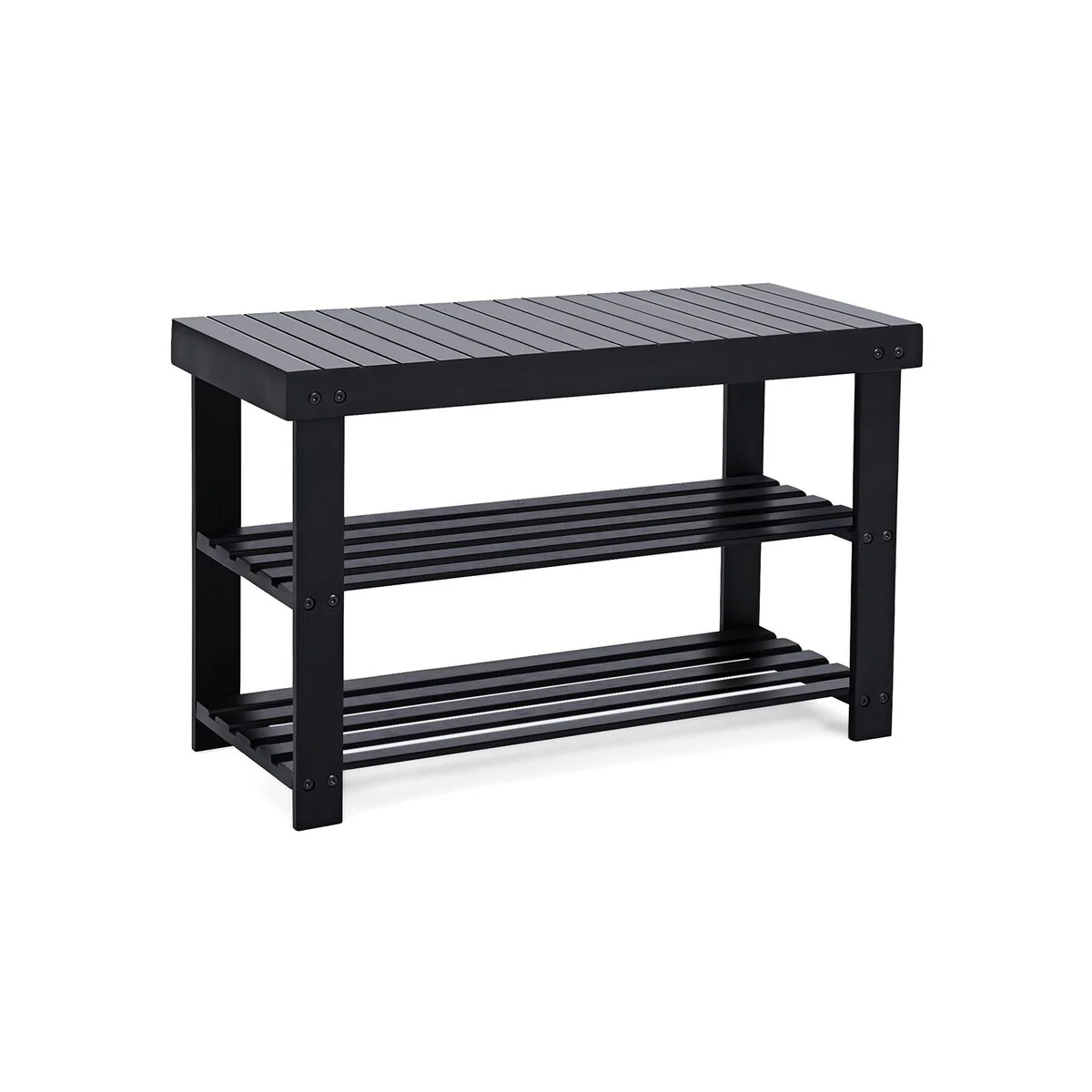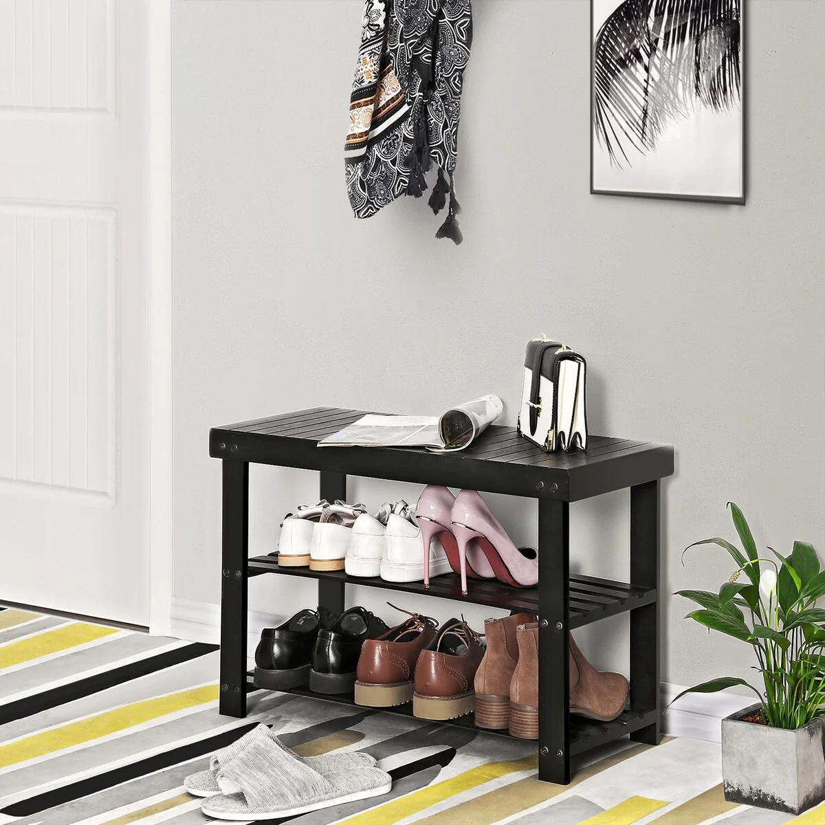 SONGMICS Black Shoe Rack Bench, 3-Tier Bamboo Shoe Organizer, Storage Shelf,Ideal for Entryway Hallway Bathroom Living Room
