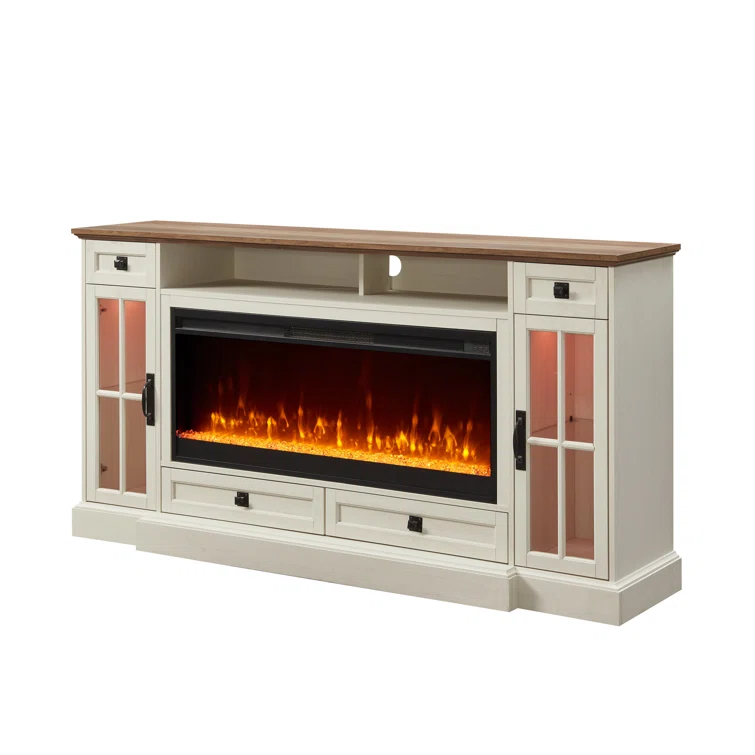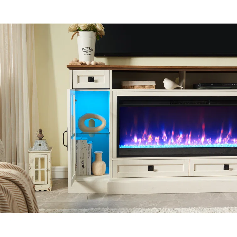 Biggsville TV Stand for Up to 78"TV, TV Console Table 42"Electric Fireplace & LED Lights Living Room