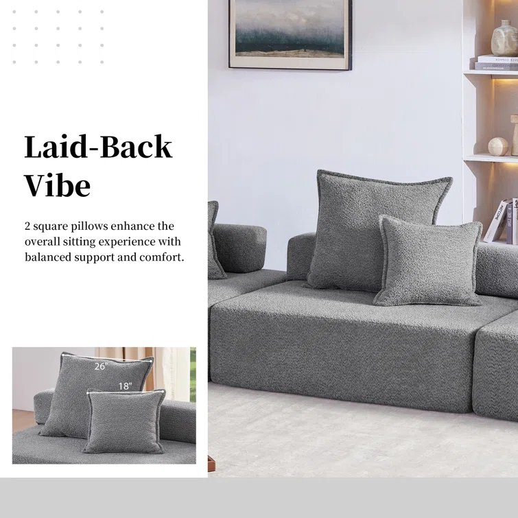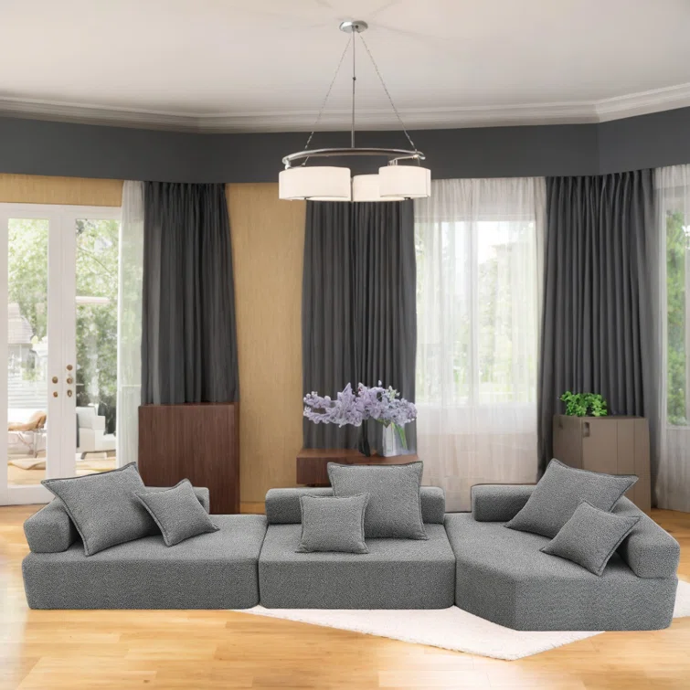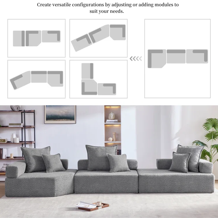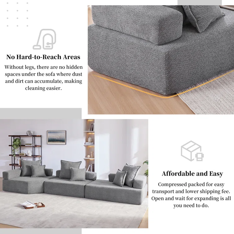 Oversized Modular Boucle Sectional Sofa, Convertible Sleeper Couch With No Assembly Required, Spacious Foam-filled Sofa Bed, 3-piece Customizable Living Room Set