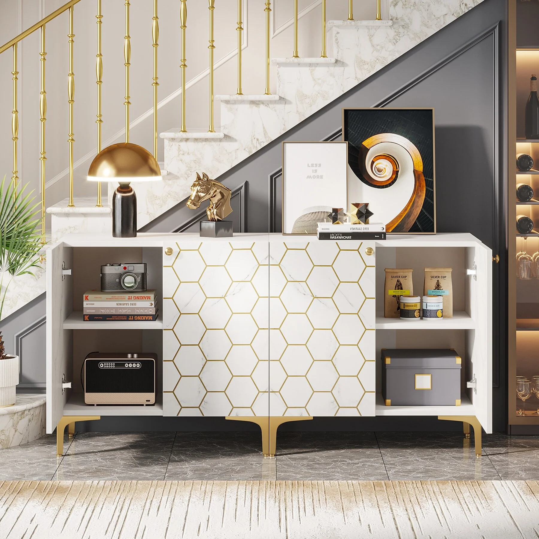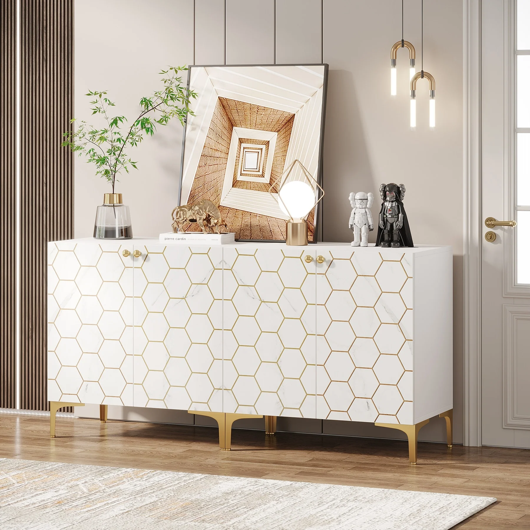 Roomfitters Hollow Four Door Antique Cabinet - American Country Style, Ideal for Living Room, TV Cabinet, Kitchen