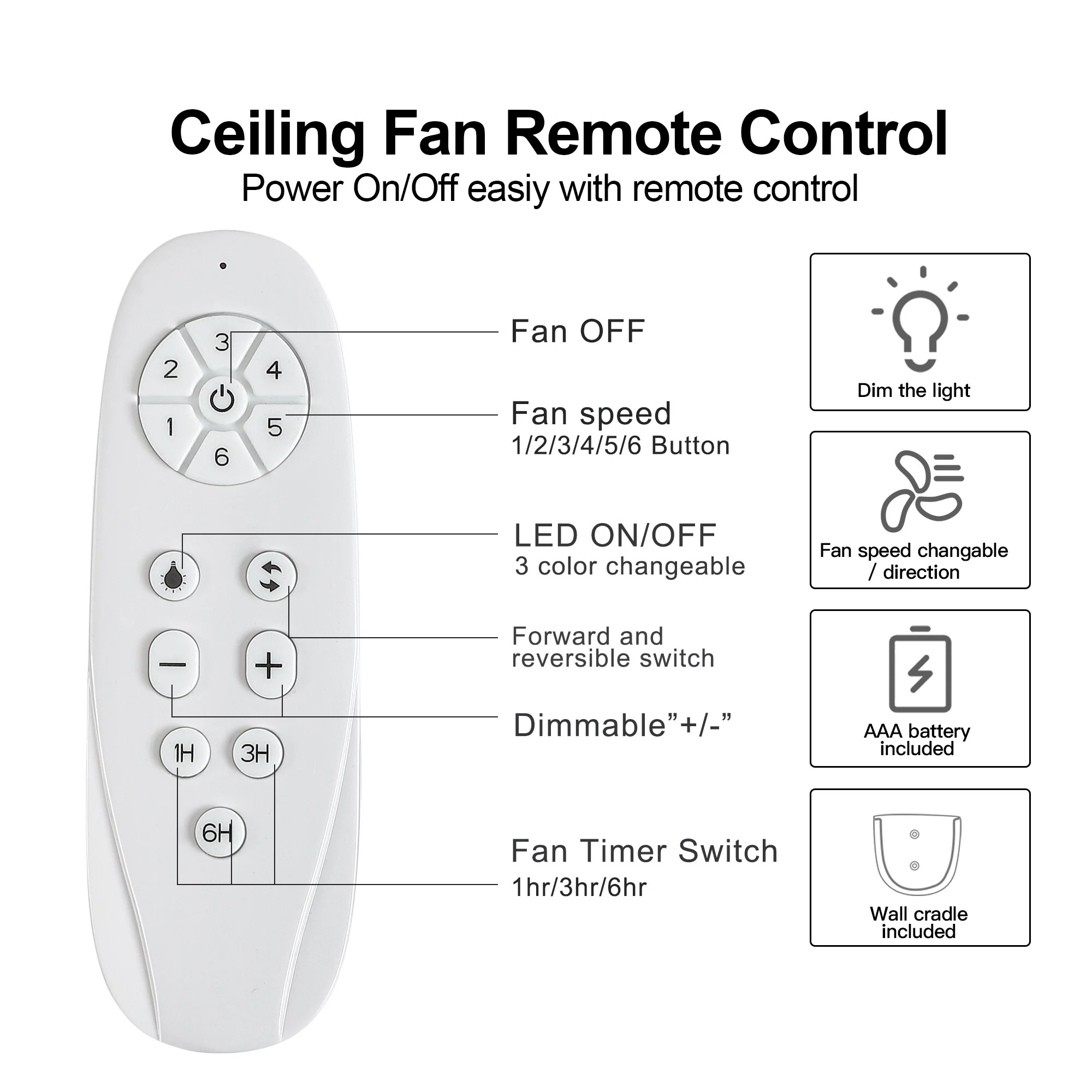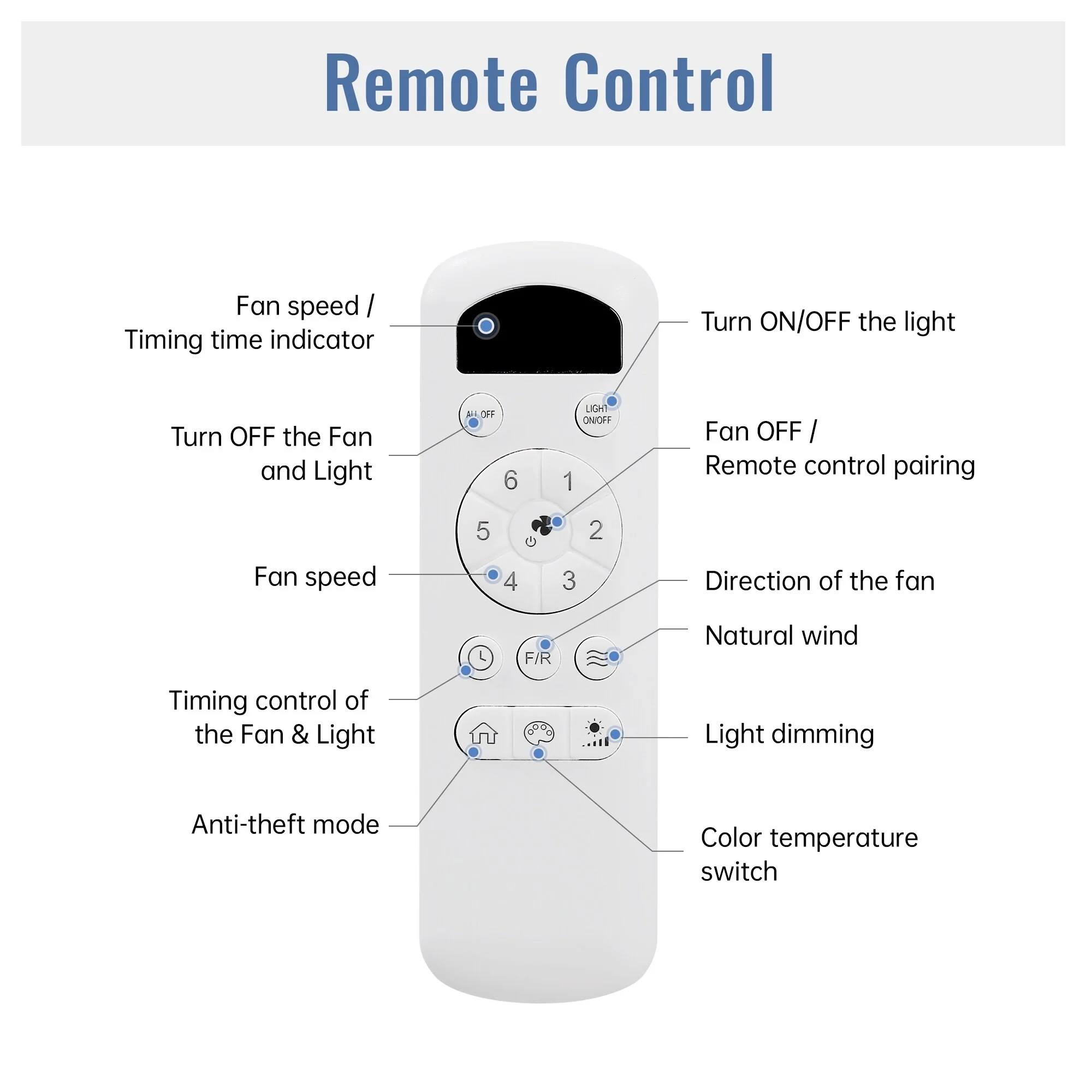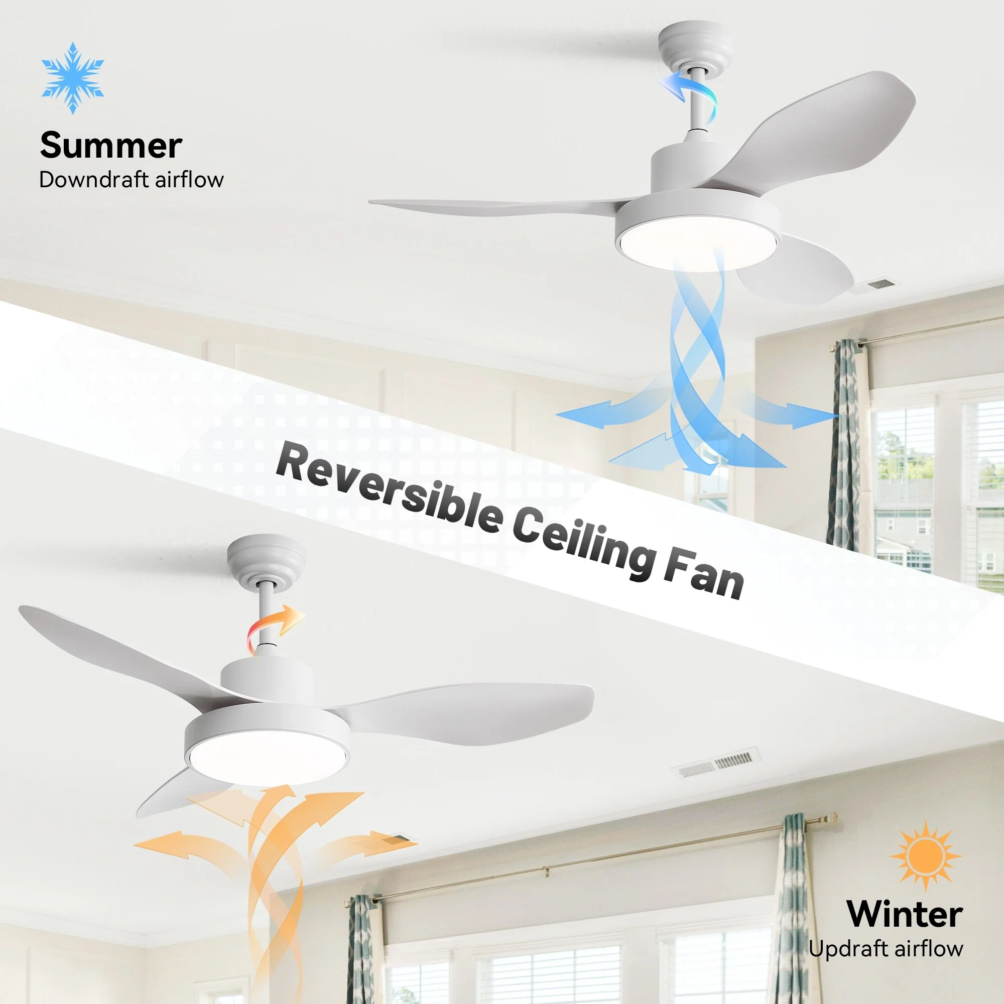 6-Speed Reversible Ceiling Fan with Light and Remote, Indoor 47" Energy Saving Ceiling Fan for Living Room Bedroom