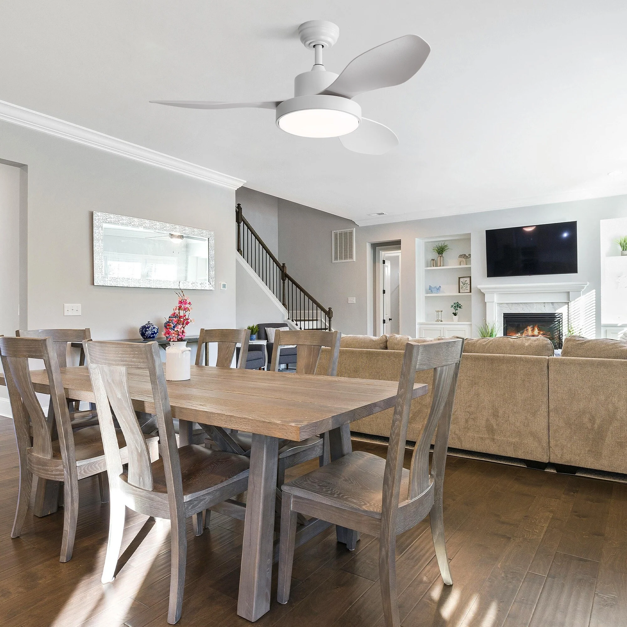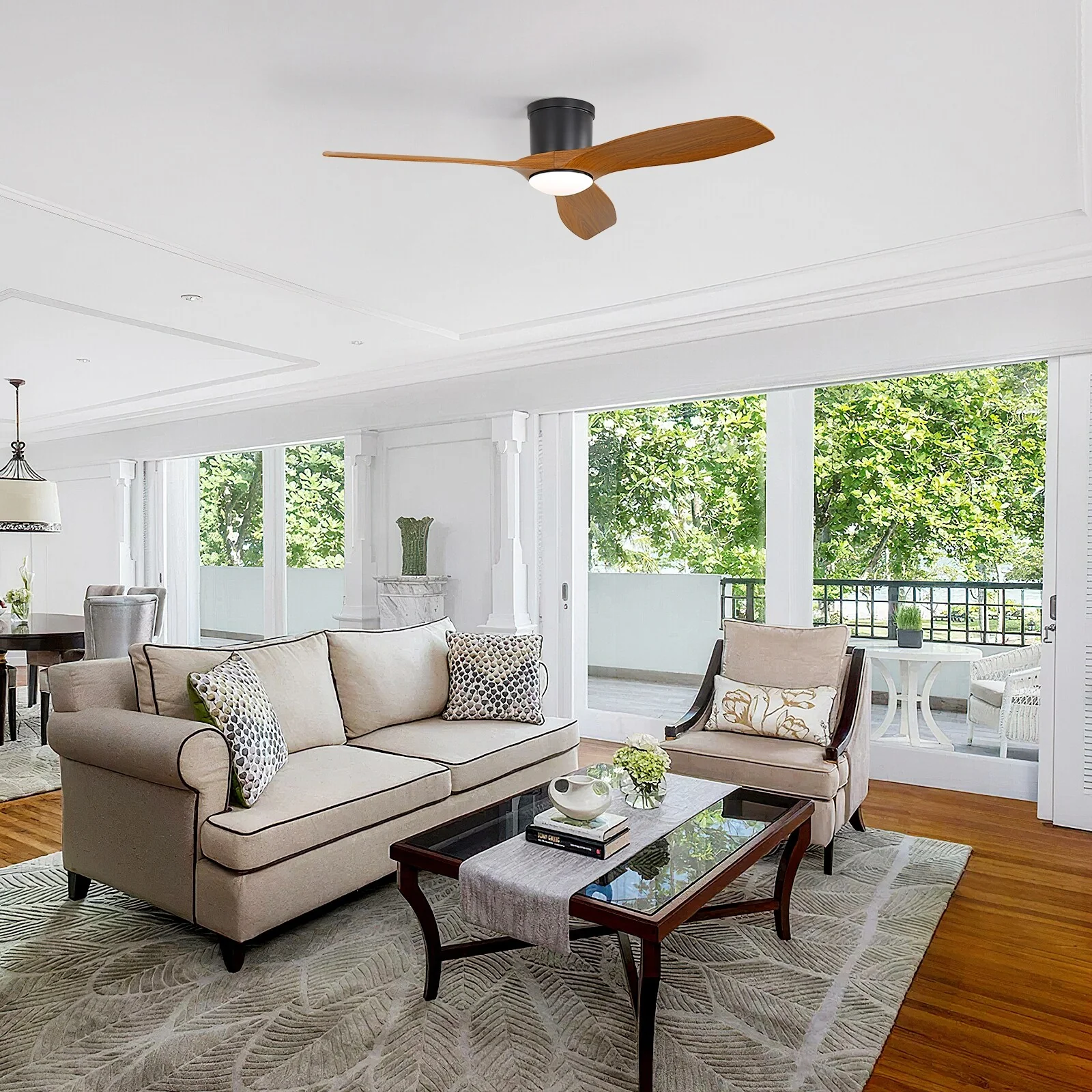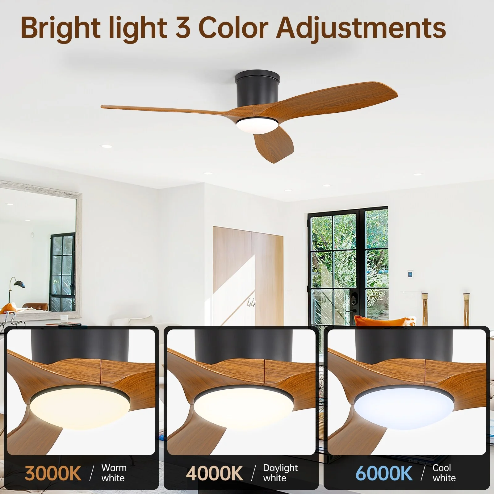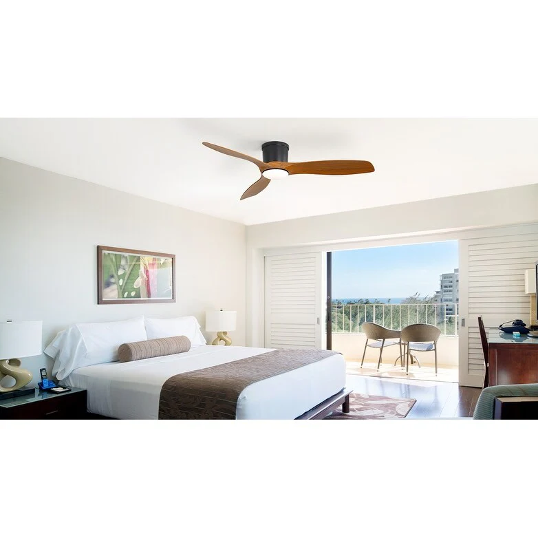 52 Inch Flush Mount Ceiling Fan with Light and Remote, Reversible DC Motor Ceiling Fan for Bedroom Living Room Kitchen