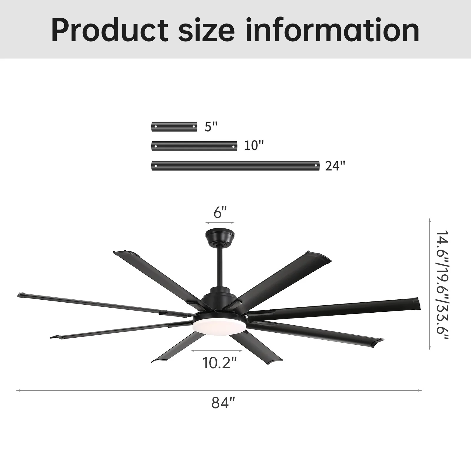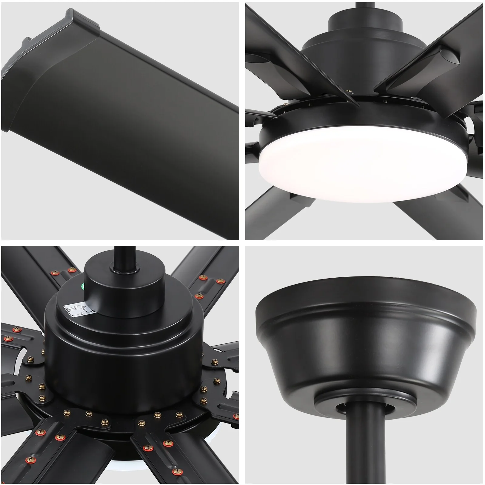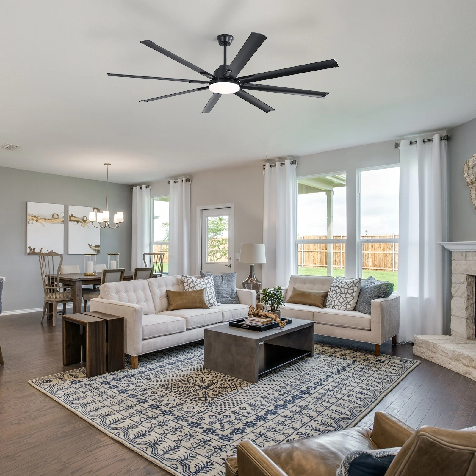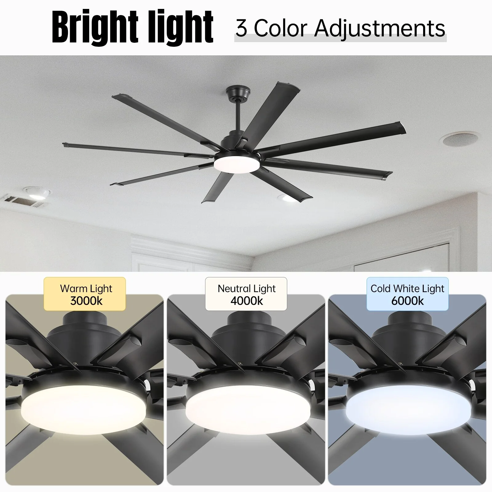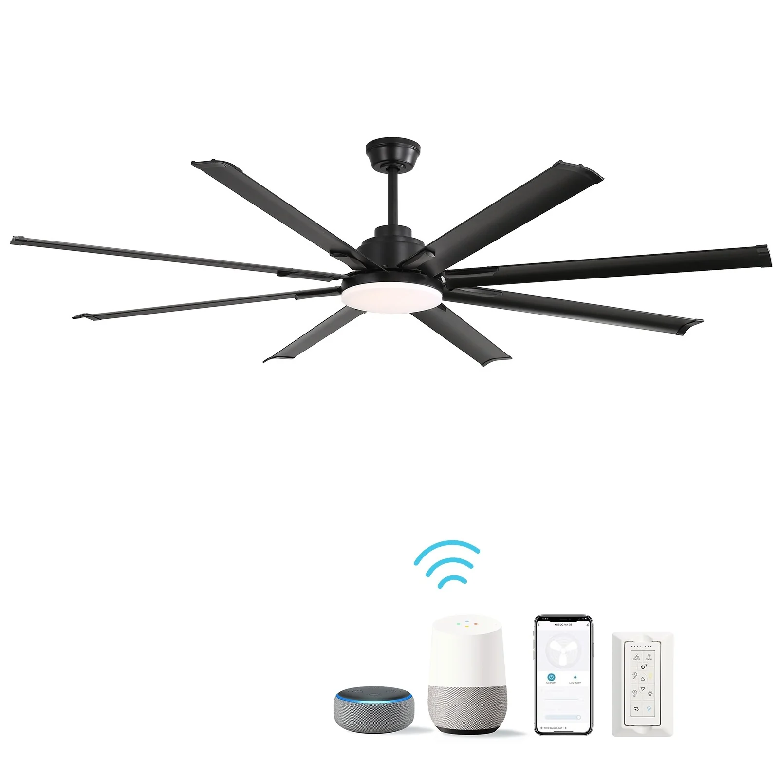 84 Inch Large Smart Ceiling Fan with Light, 8 Black Aluminum Blades, Indoor Outdoor Reversible Ceiling Fan for Living Room Patio