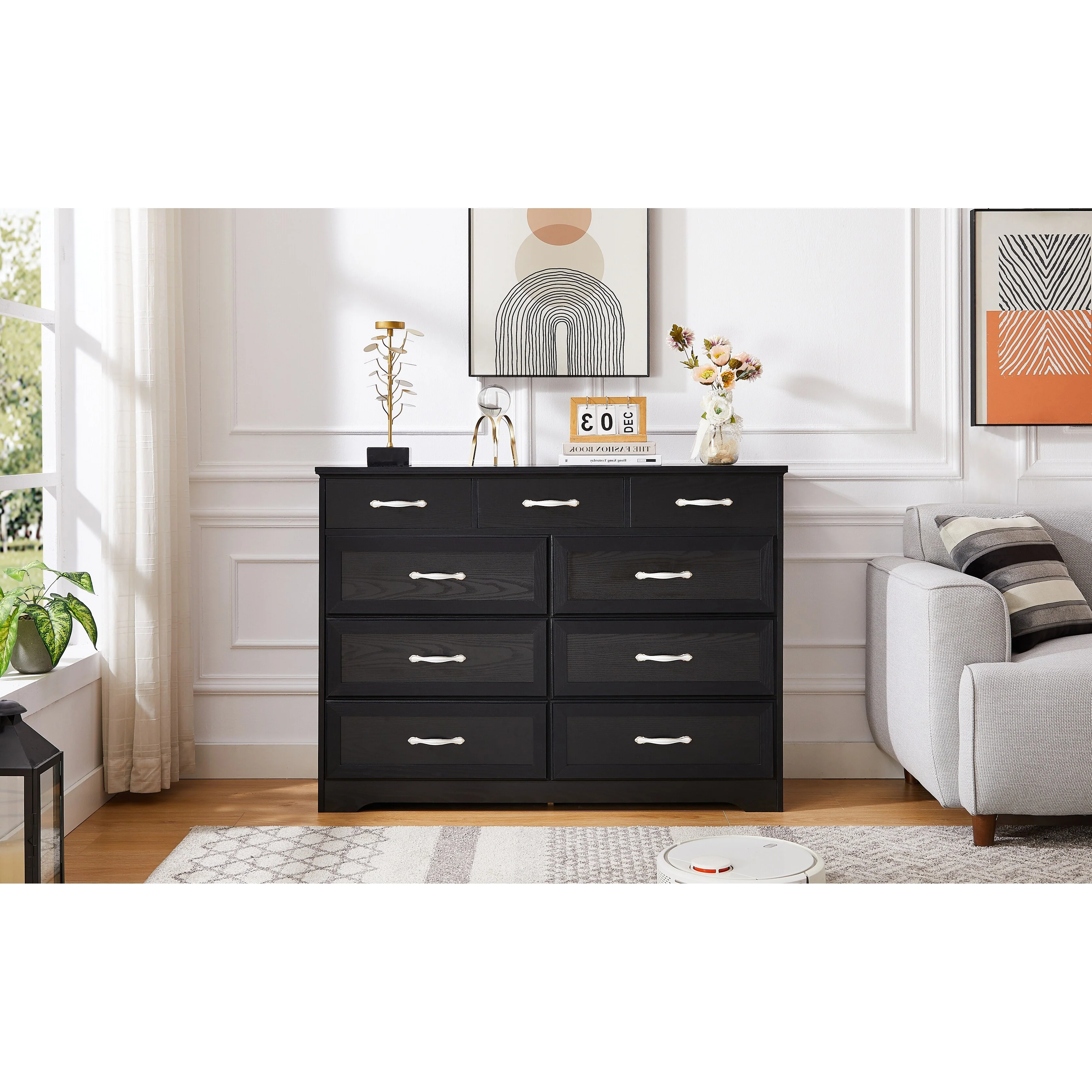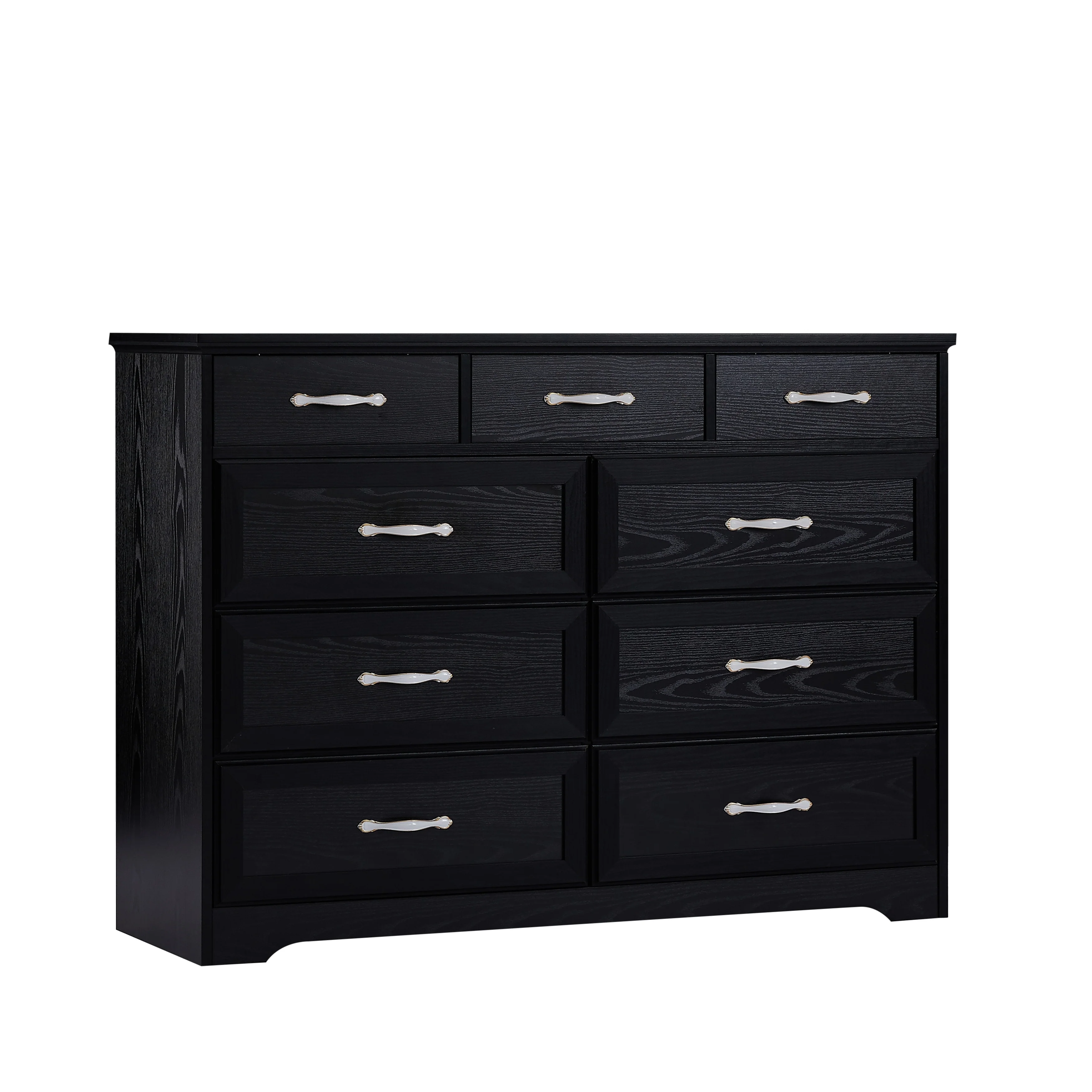Bedroom dresser, 9 drawer long dresser with antique handles, wood chest of drawers for kids room, living room
